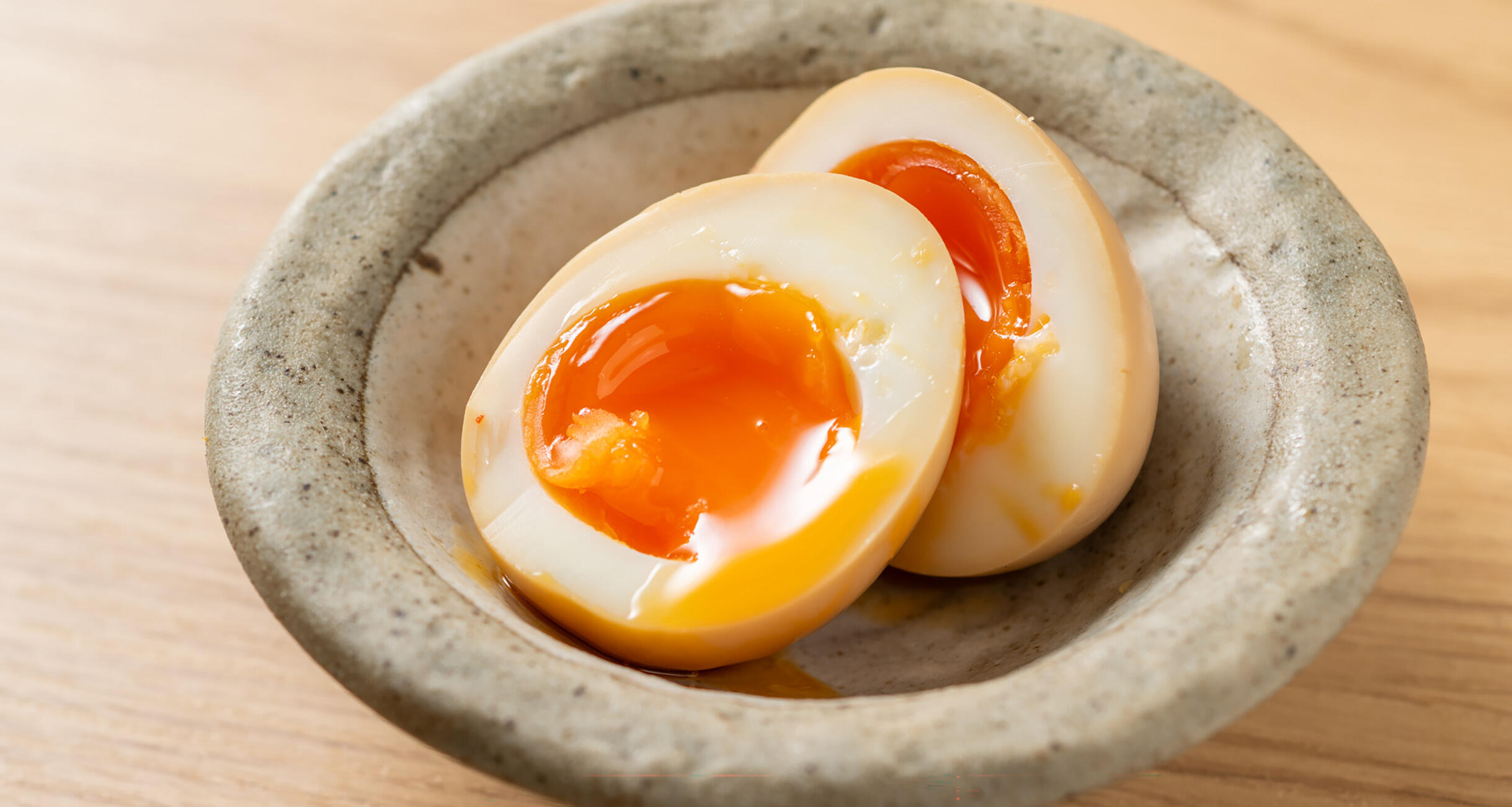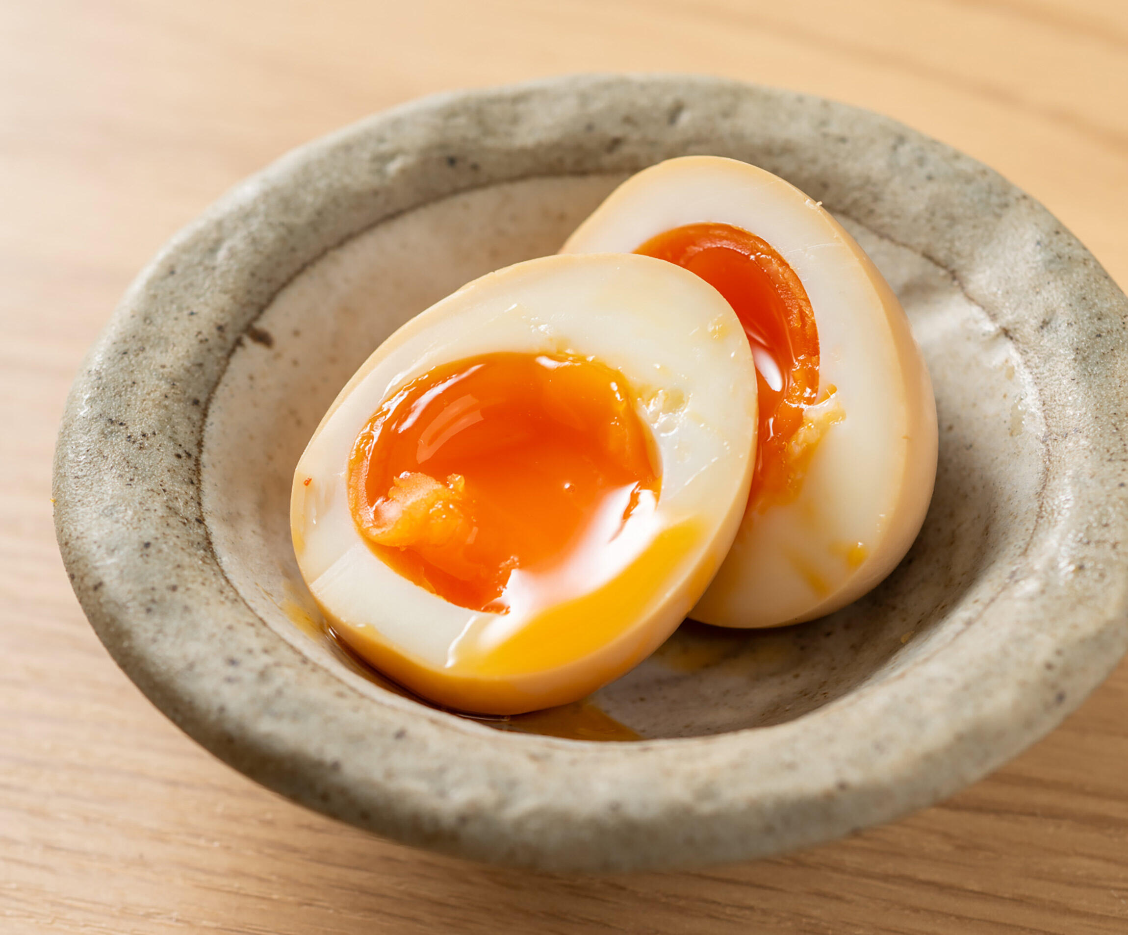 「たまごに雑味や臭みがまったくありません。ゆでると黄身にはねっちりした舌ざわりと濃厚な旨味がありますが、後味のキレがいい」と佐藤さん。半分にカットすると、黄金色に輝く黄身が表れ、その完璧な半熟具合に思わずため息がもれる。隠し味に酢を使った特製醤油ダレが味をキリリと引き締め、たまごの旨味がさらに引き立つ。白いご飯はもちろん、“呑めるたまご料理”の代表格といっても過言ではないだろう。