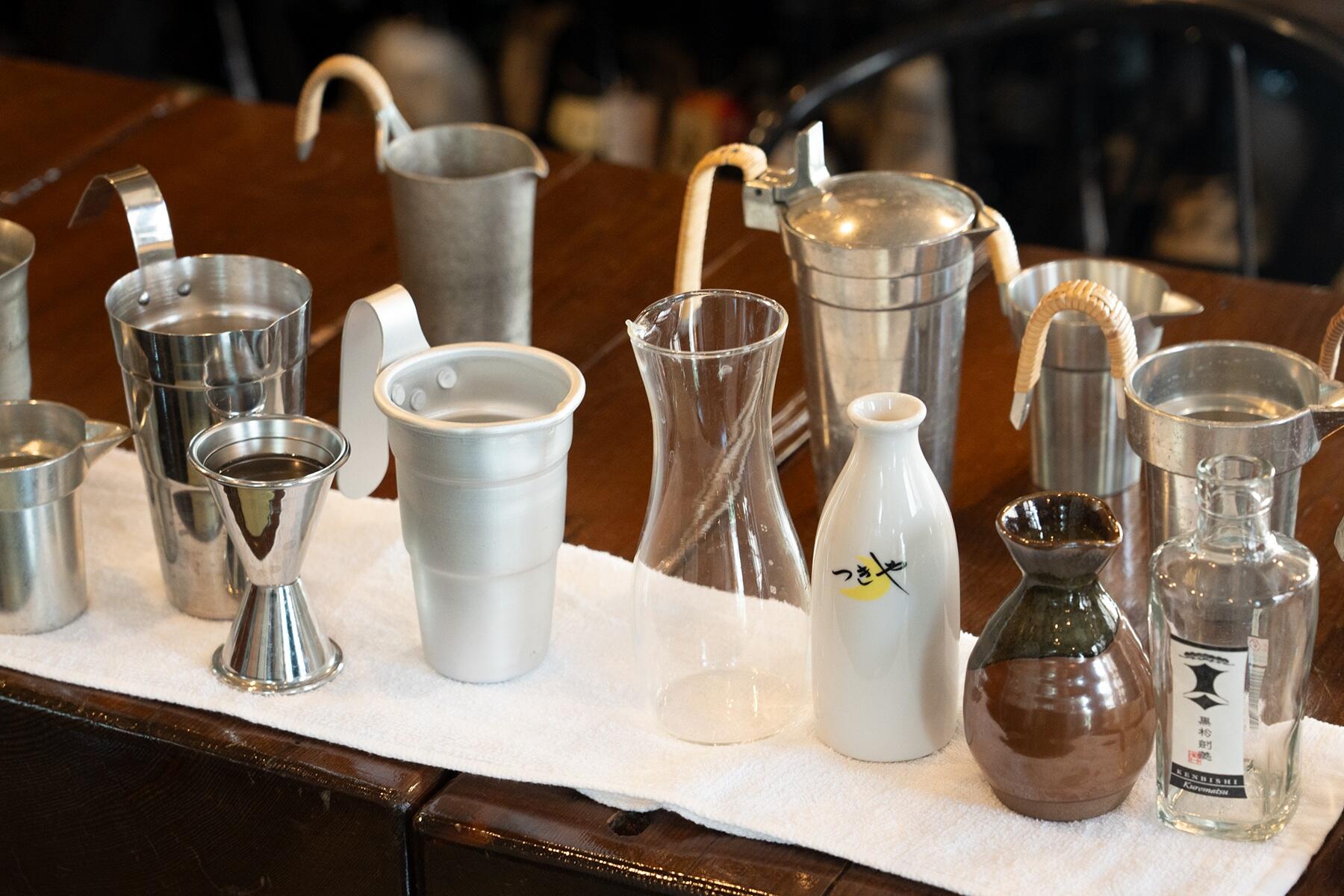 酒を食材に、道具を調理法にたとえるのは髙崎さん譲り。銅のちろりは“焼き料理”。熱伝導が早くキレのよい味に。熱伝導が遅いガラスは“蒸し料理”。味わいを変えずきれいに温まる。酒の味がまろやかになる錫は“煮込み”。
