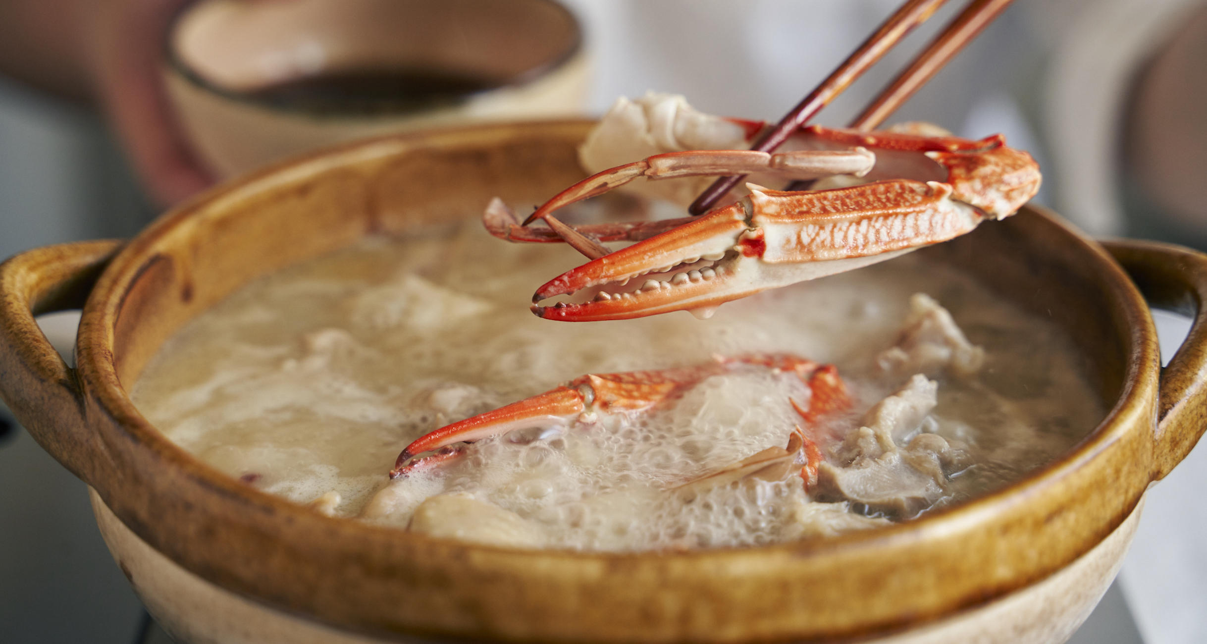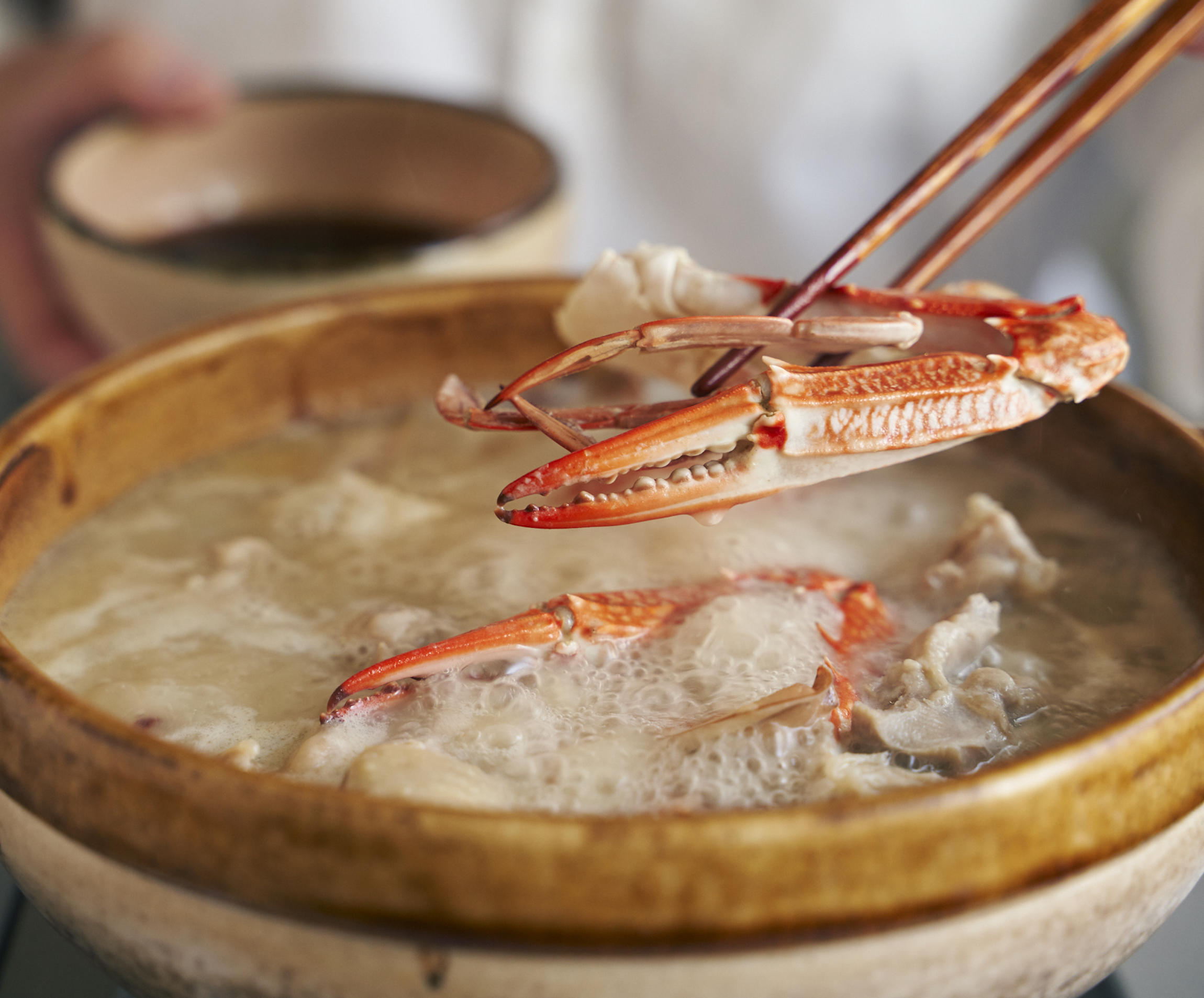 今回、山田さんがレモンぽん酢と合わせるのは、鶏と蟹がお互いの個性を引き上げる、力強い鍋。かつおだしに白味噌、かに味噌を加えた濃厚なスープと具を、まずそのまま味わったら、レモンぽん酢に合わせて楽しもう。異なる食材の味わいを、レモンの存在感が絶妙なバランスでまとめあげ、最後まで食べ飽きることがない。ちなみに山田さんの〆のオススメは、少しバターを落としてコクを増した雑炊だそう。こちらもぜひお試しを!