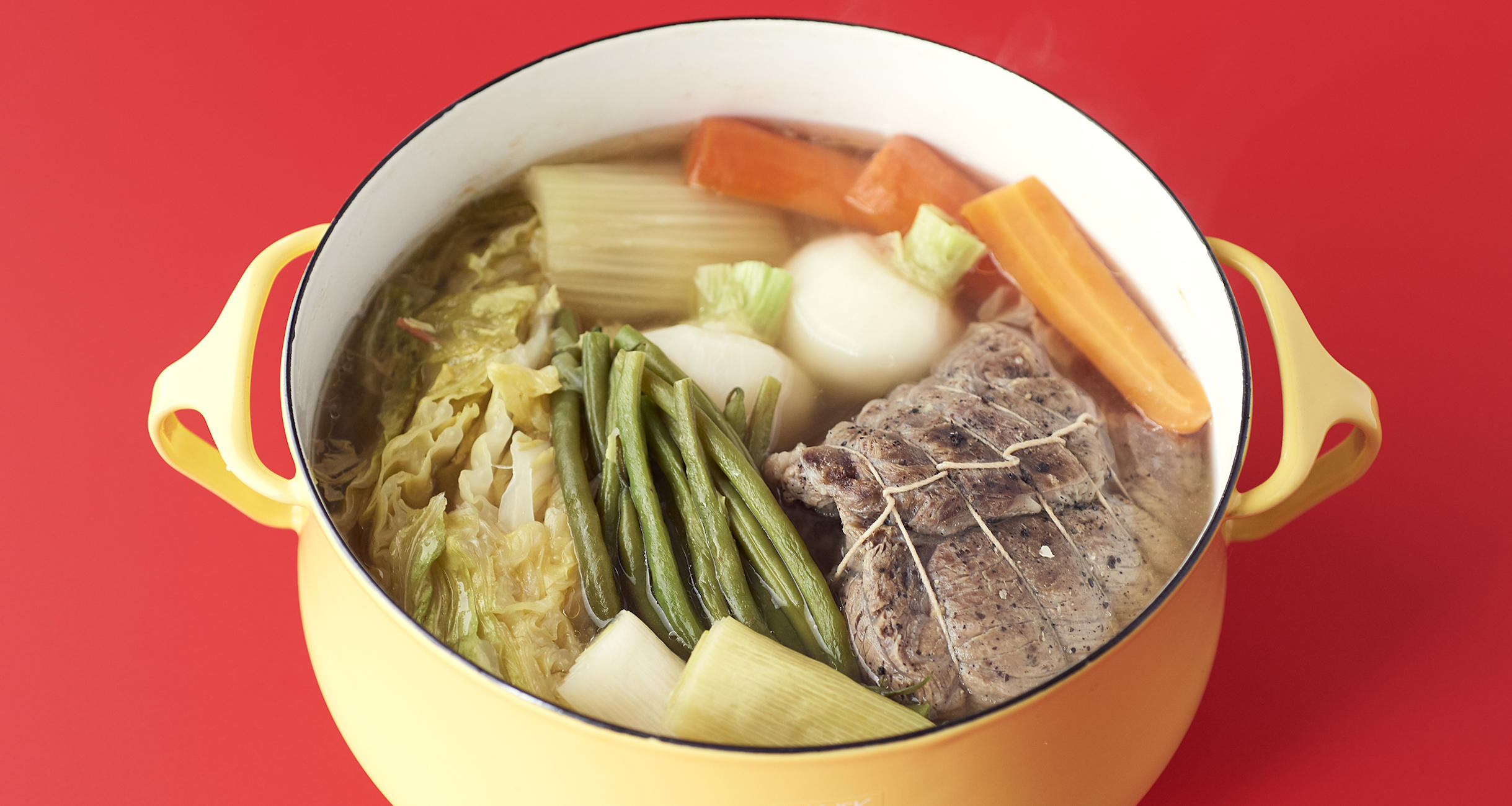 牛すね肉とたっぷりの野菜を煮込んだ「ポトフ」。食材を丁寧に煮込むレシピには、スープづくりの基本と、食材の旨味をおいしく食べる工夫が詰まっています。