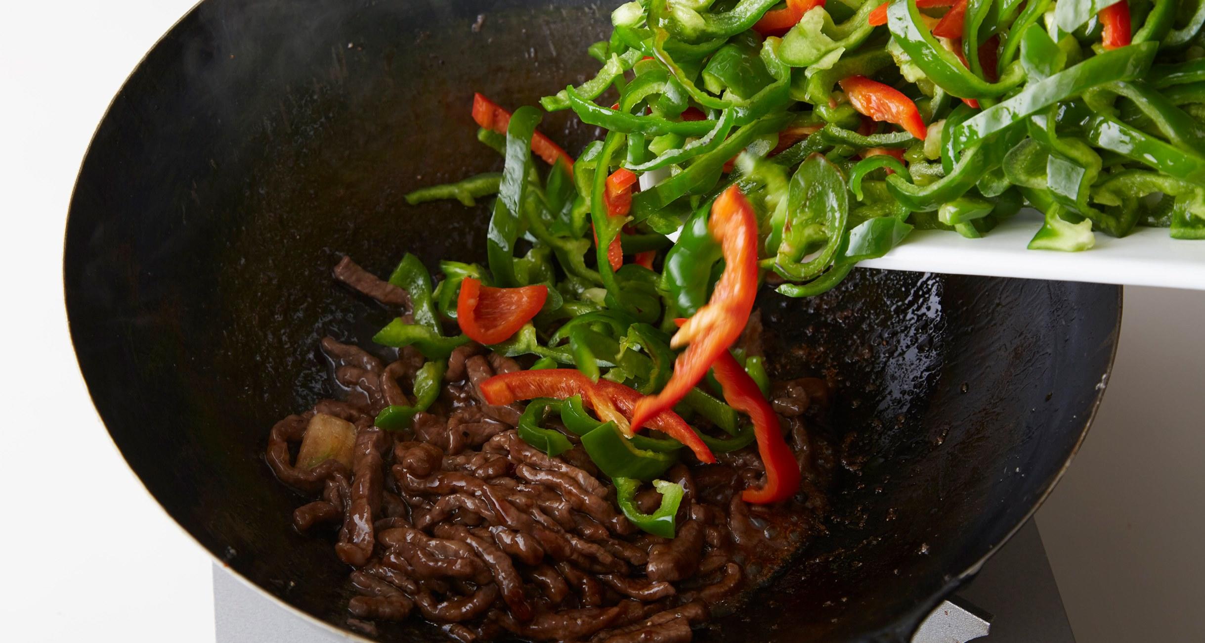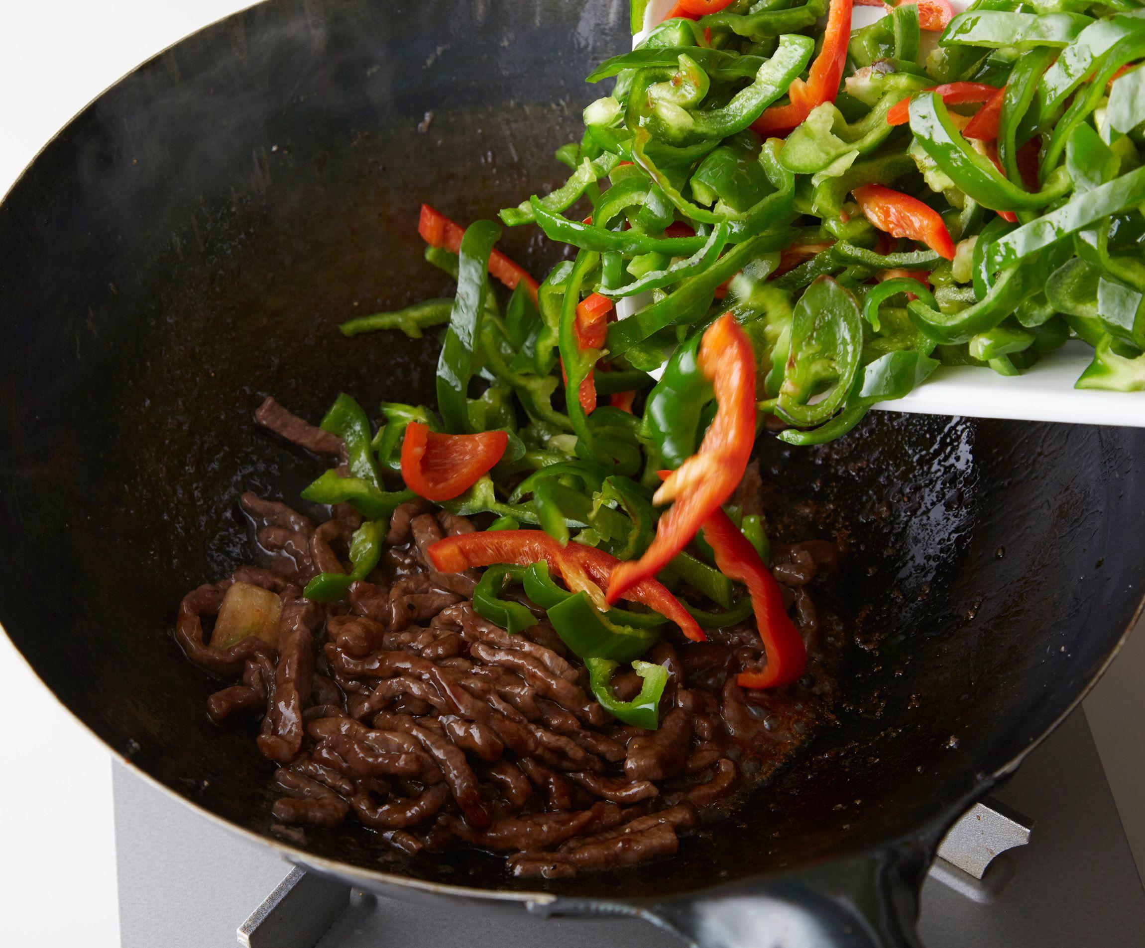 ピーマンを戻し入れて炒め合わせ、最後にねぎを加えてひと炒めして、器に盛る。