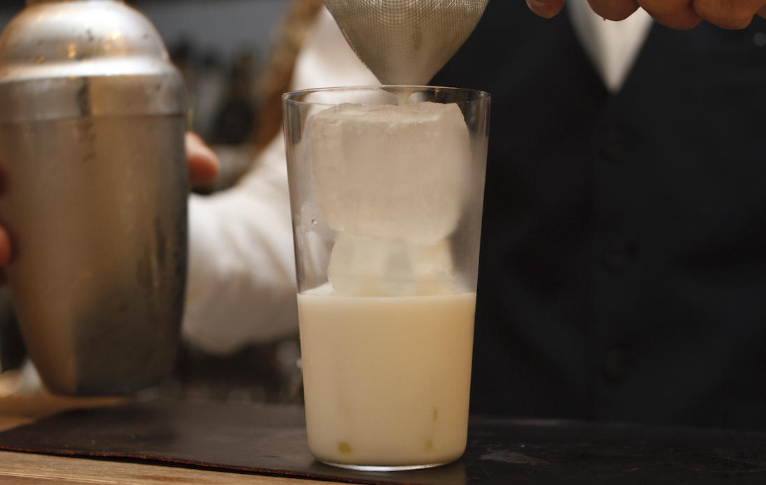 「レモンとジンと牛乳でつくるミルクジンフィズは、戦後から愛されている伝統的なカクテルです」