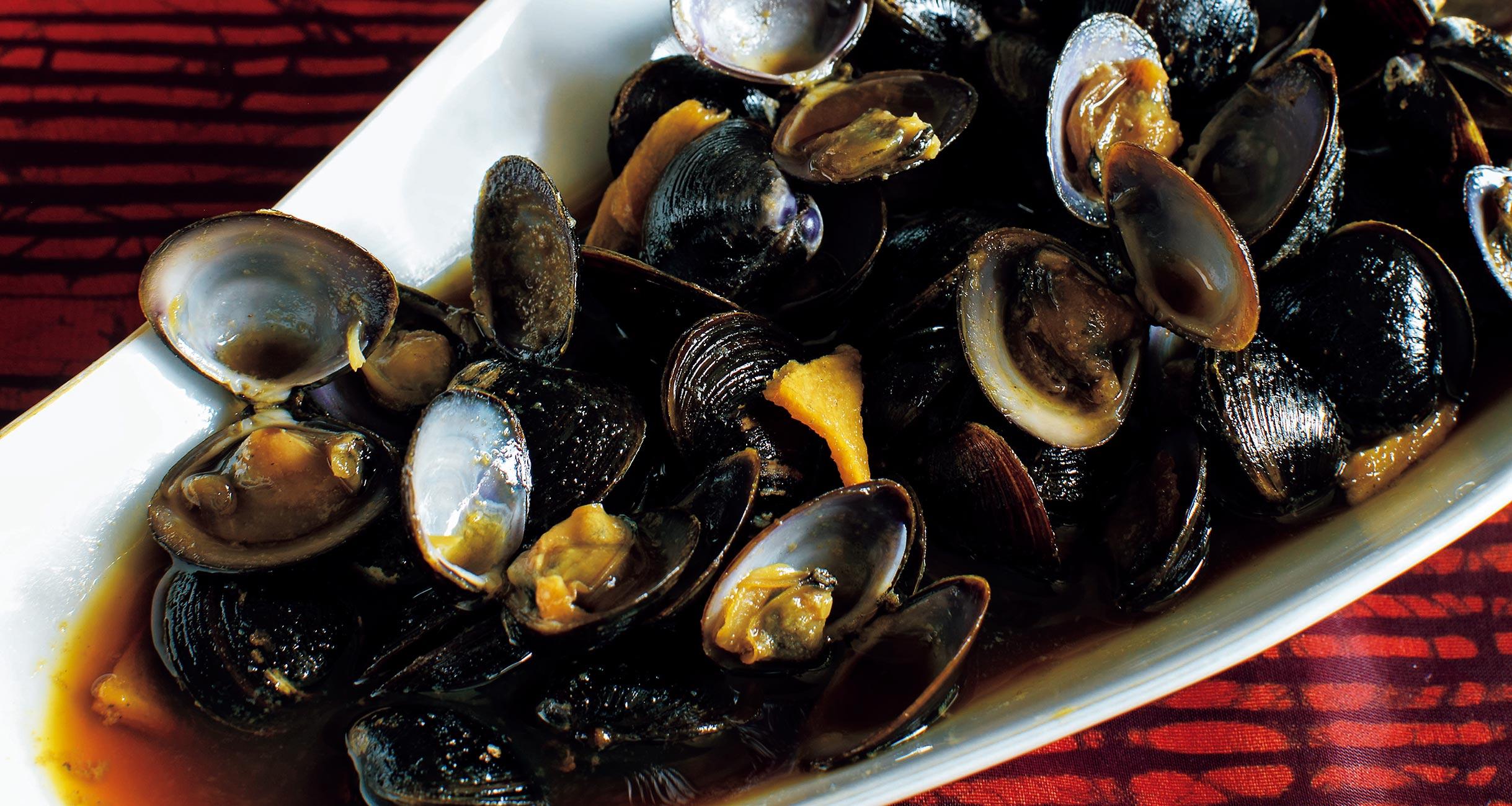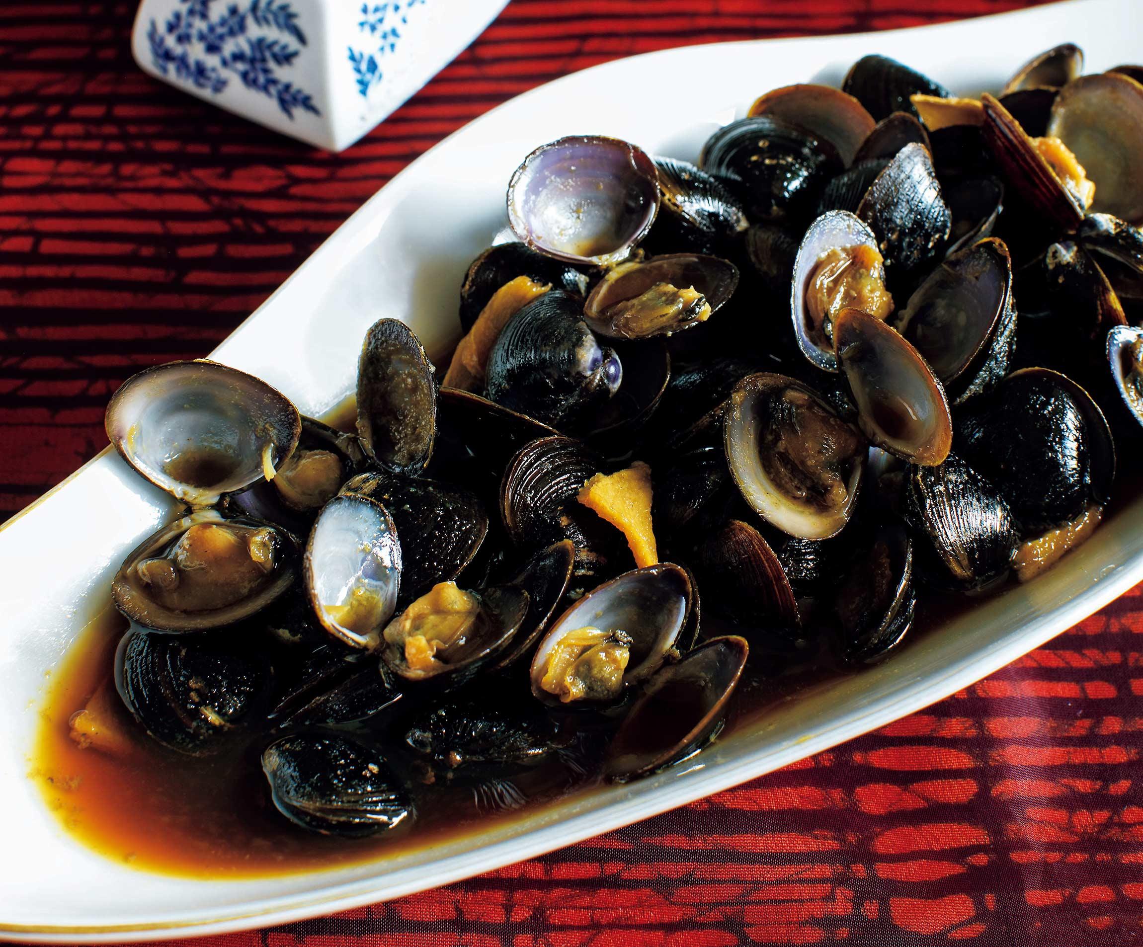 八角、シナモン、花椒(ホアジャオ)が香る醤油に、冷凍しじみを漬け込み、食べる直前にさっと火を通す。貝の旨味が凝縮した、ぴりっと辛味がきいたおいしさはまた格別だ。