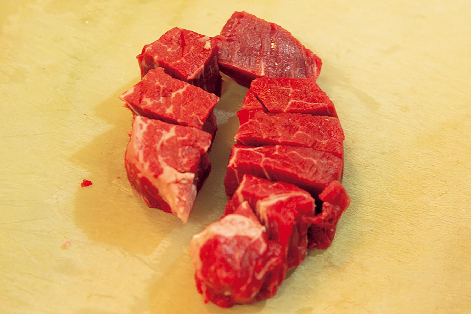 じゃがいもはよく洗い、芽があれば除く。鍋に入れてたっぷりの水を注ぎ、中火にかける。柔らかくなるまでゆで、ザルに取って冷まし、皮をむく。牛肉は大きめの一口大の角切りにする。