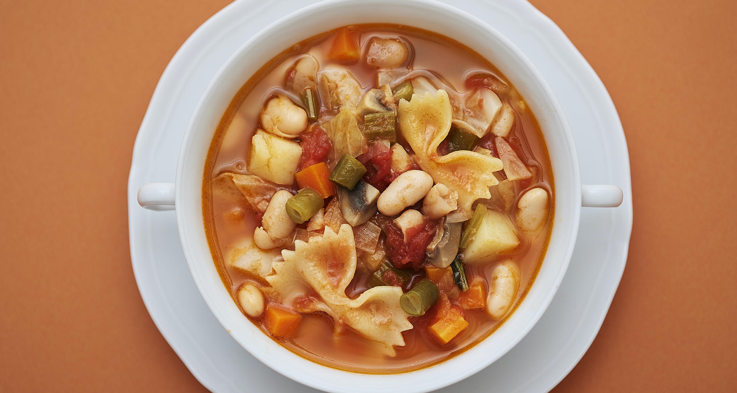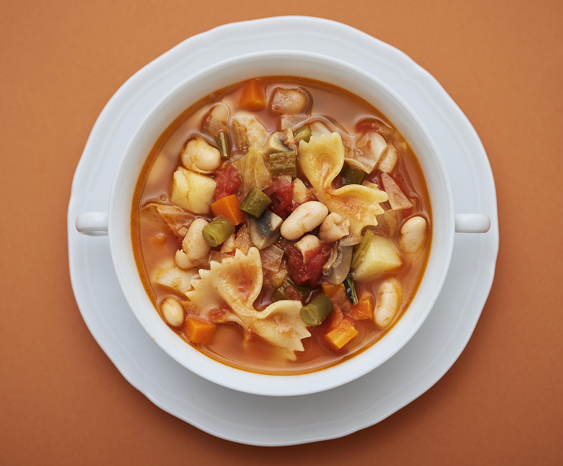 ミネストローネは、言わずと知れたイタリアのスープです。具がたっぷりで汁が少なめの「食べるスープ」は、イタリアスープの特徴。