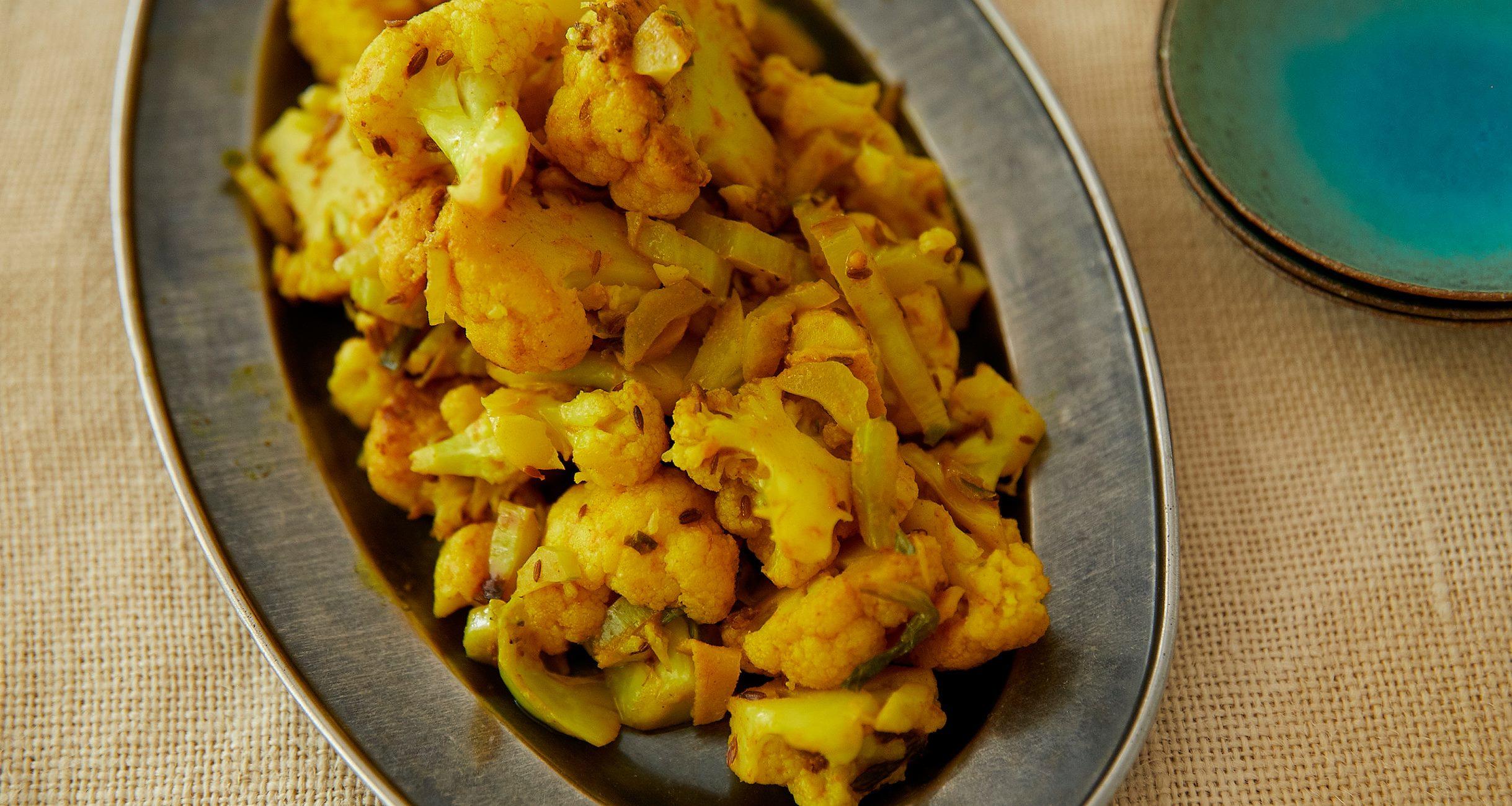 今回つくるレシピは「サブジ」。日本語で言うと「スパイス蒸し焼き」といった調理法になります。この料理にカリフラワーは本当にお似合いです。