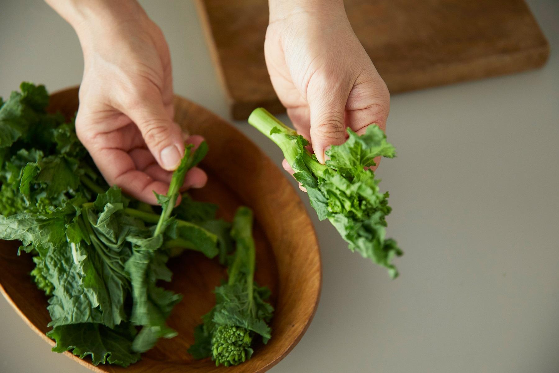 くたくたに煮てしまえば、繊維は柔らかくなり、えぐみが穏やかになるので、菜の花にぴったりな調理法。