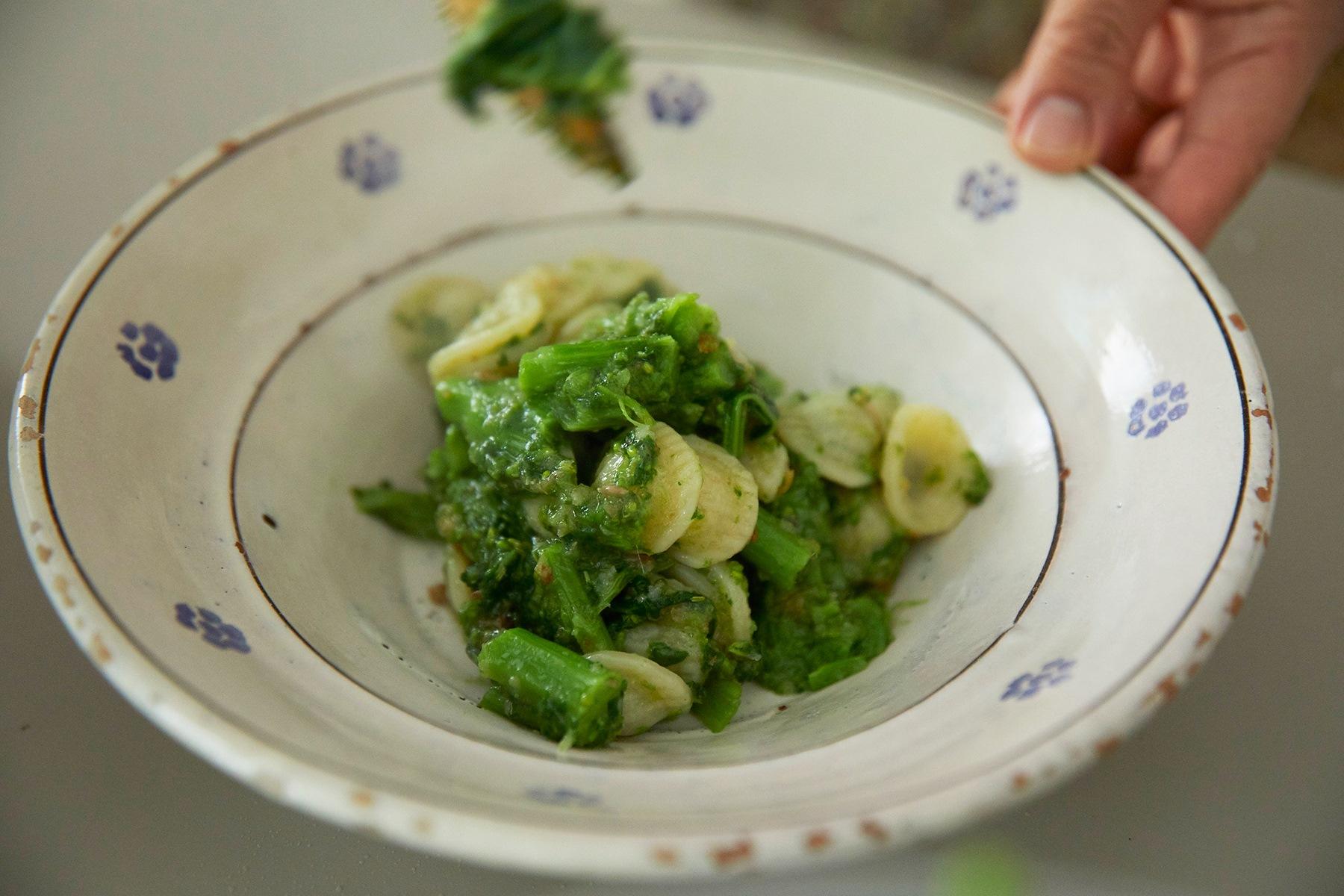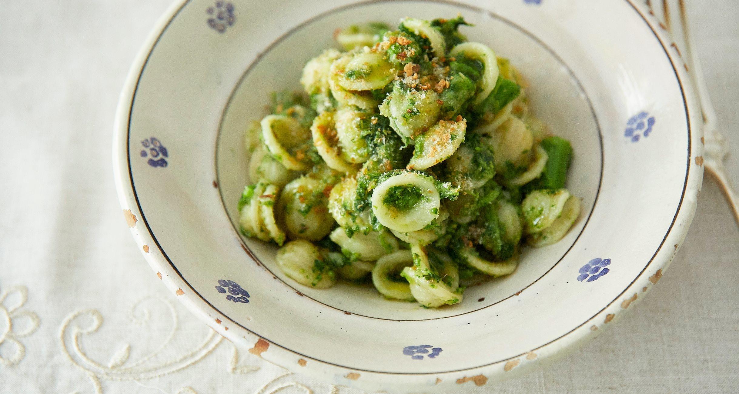 菜の花のような苦味のある野菜は、オイルとの相性が抜群。洋風料理に使ってみると、新しい発見があります。くたくたに煮た菜の花のソースでつくるオレキエッテをつくってみましょう。