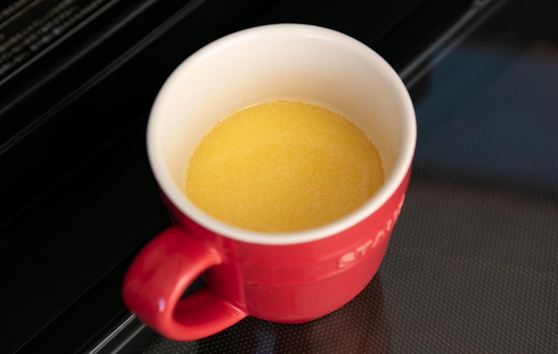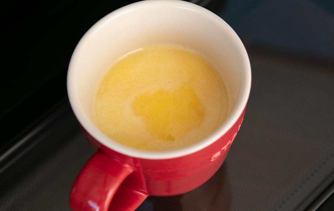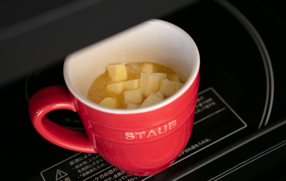森崎さんが用意した道具は、電子レンジとマグカップと大さじの3つだけ。