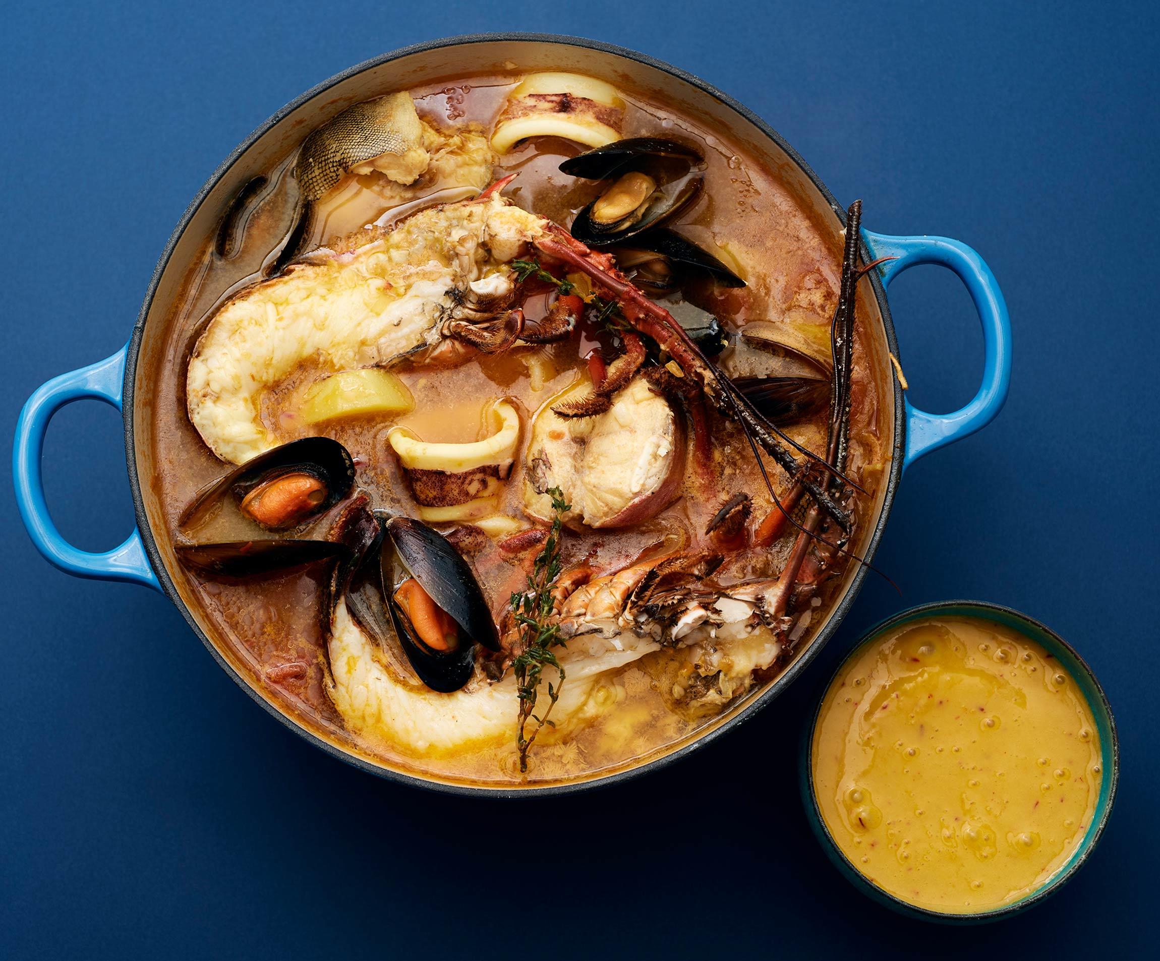 つくり方はいたって簡単。ねぎ類やにんにく、セロリなどの香味野菜を炒め、魚や海老、貝などの魚介を煮込みます。タイムやサフラン、フェンネルなどハーブを使ったり、卵とにんにくでつくるルイユというソースを添えるのが特殊といえば特殊ですが、食材探しには苦労しないはずです。