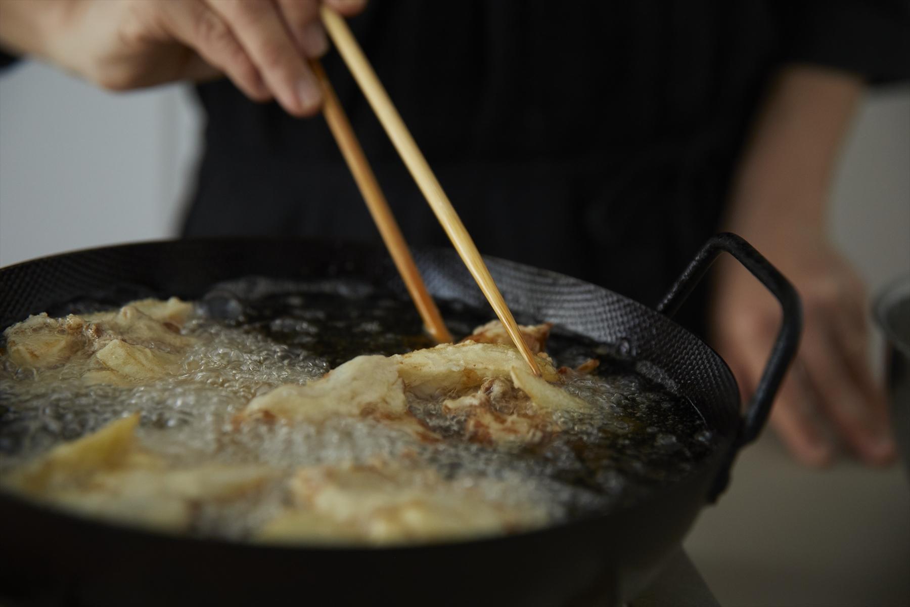 揚げたウドはシコッとした食感と爽やかな香りがします。濃い味付けの中から、時折、顔を出すウドの風味を味わってみてください。