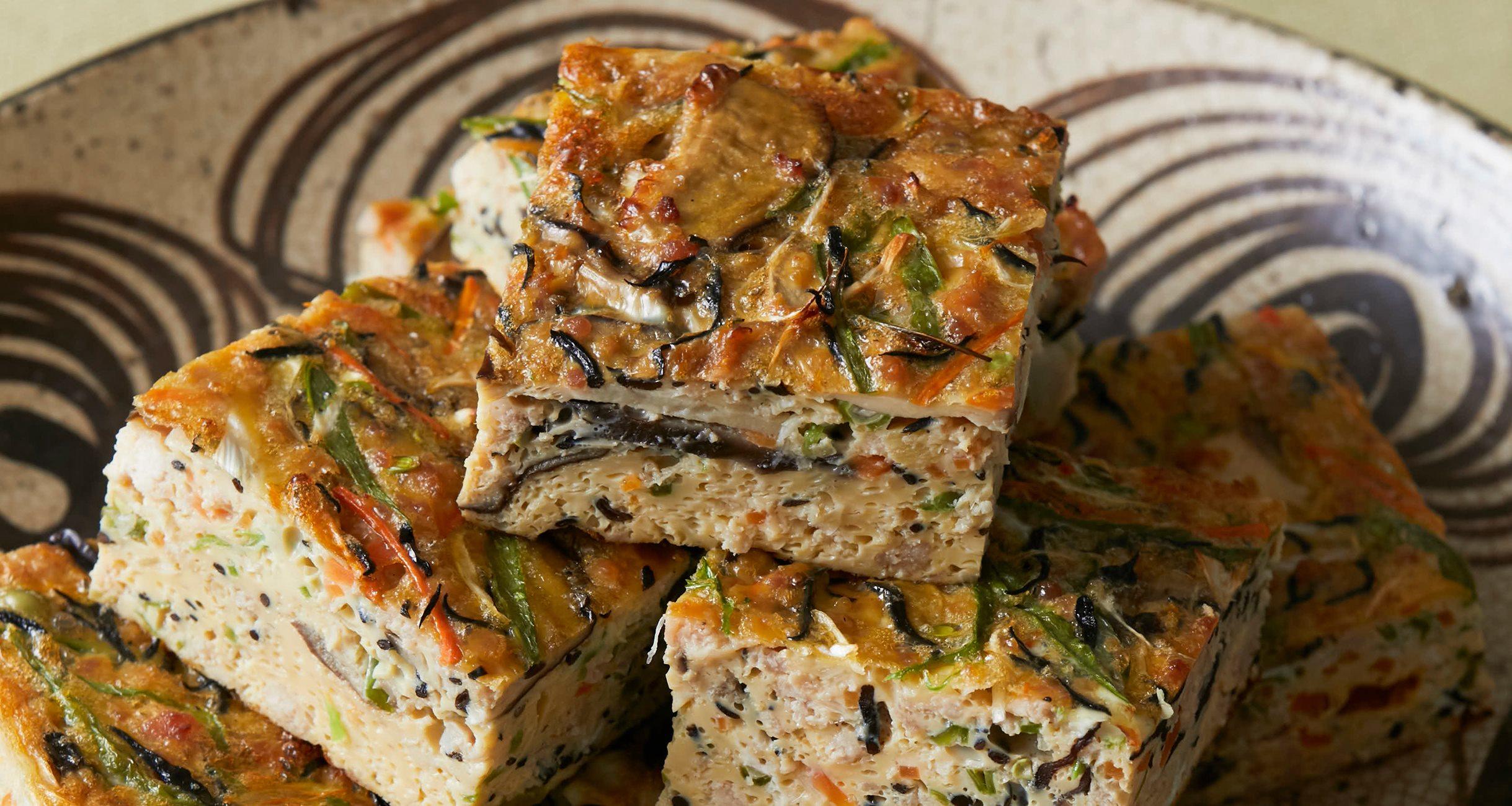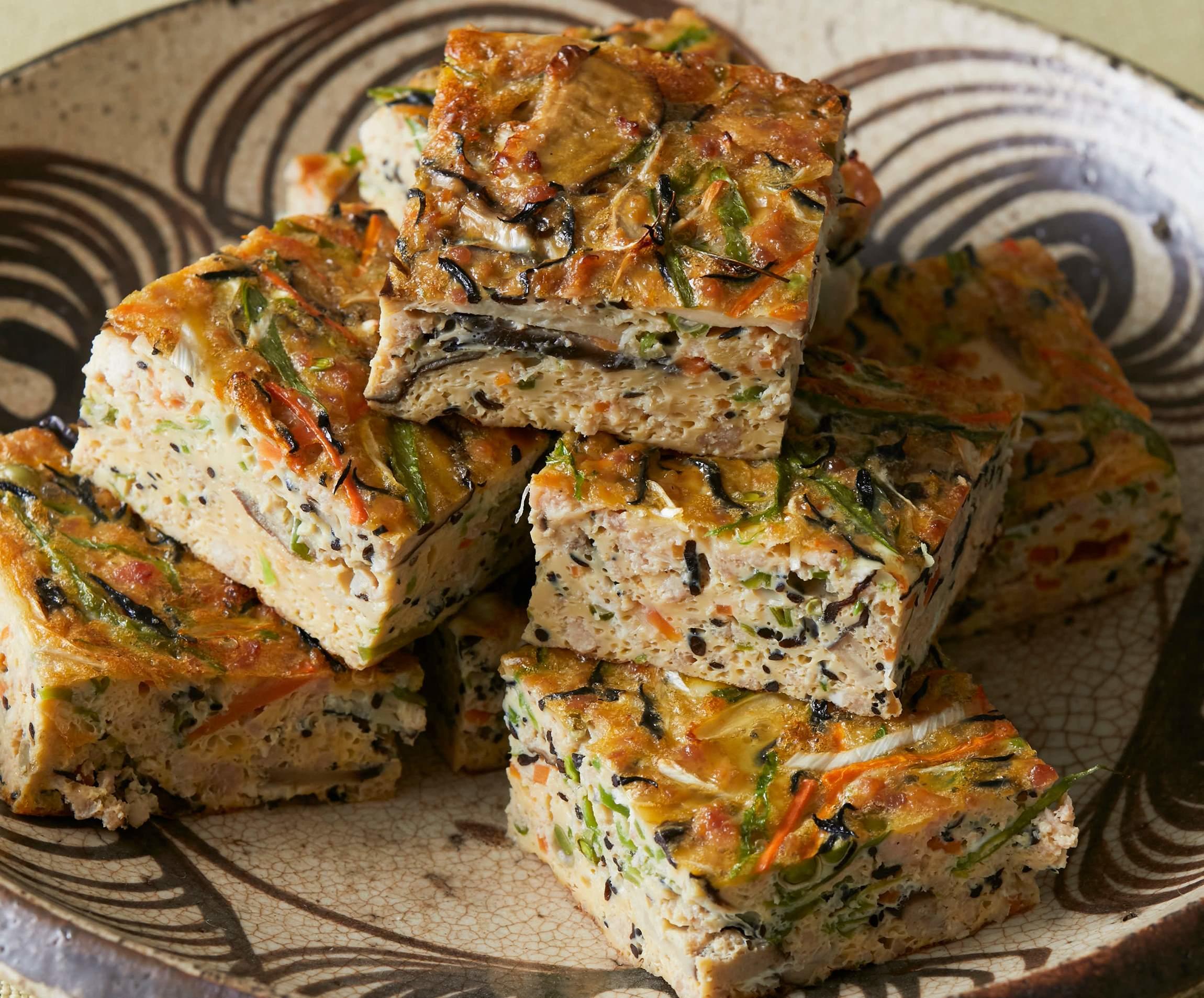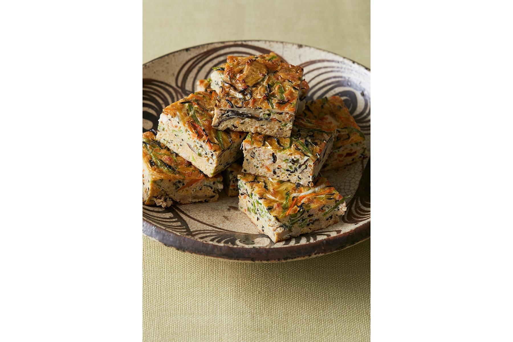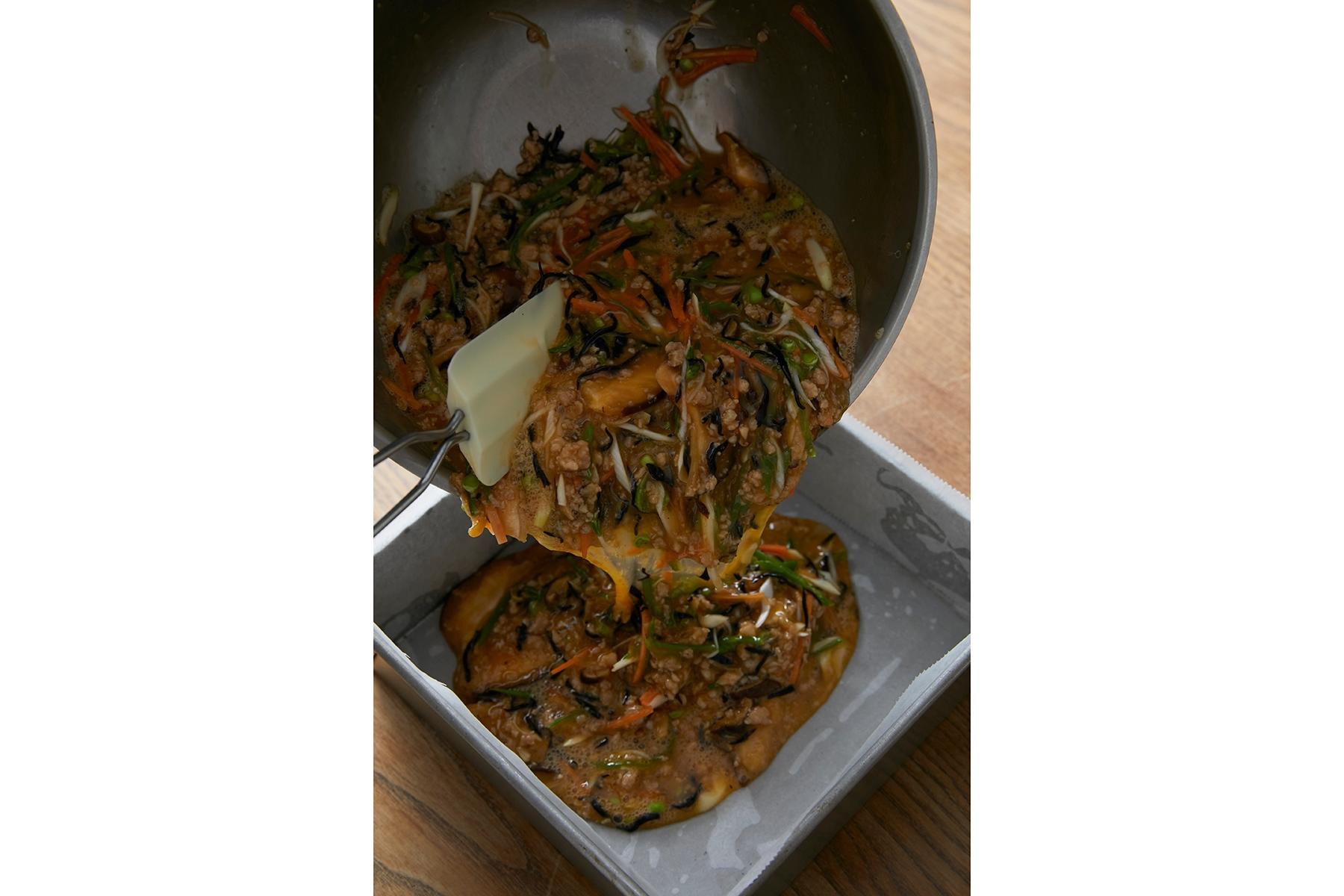 鶏ひき肉を甘辛く煮た鶏そぼろは、たくさんつくっておくと他の料理に応用できます。今回は、つくっておいた鶏そぼろと卵、細かく切った野菜、ひじきを一緒にオーブンで焼き上げた「千草焼き」をご紹介しましょう。