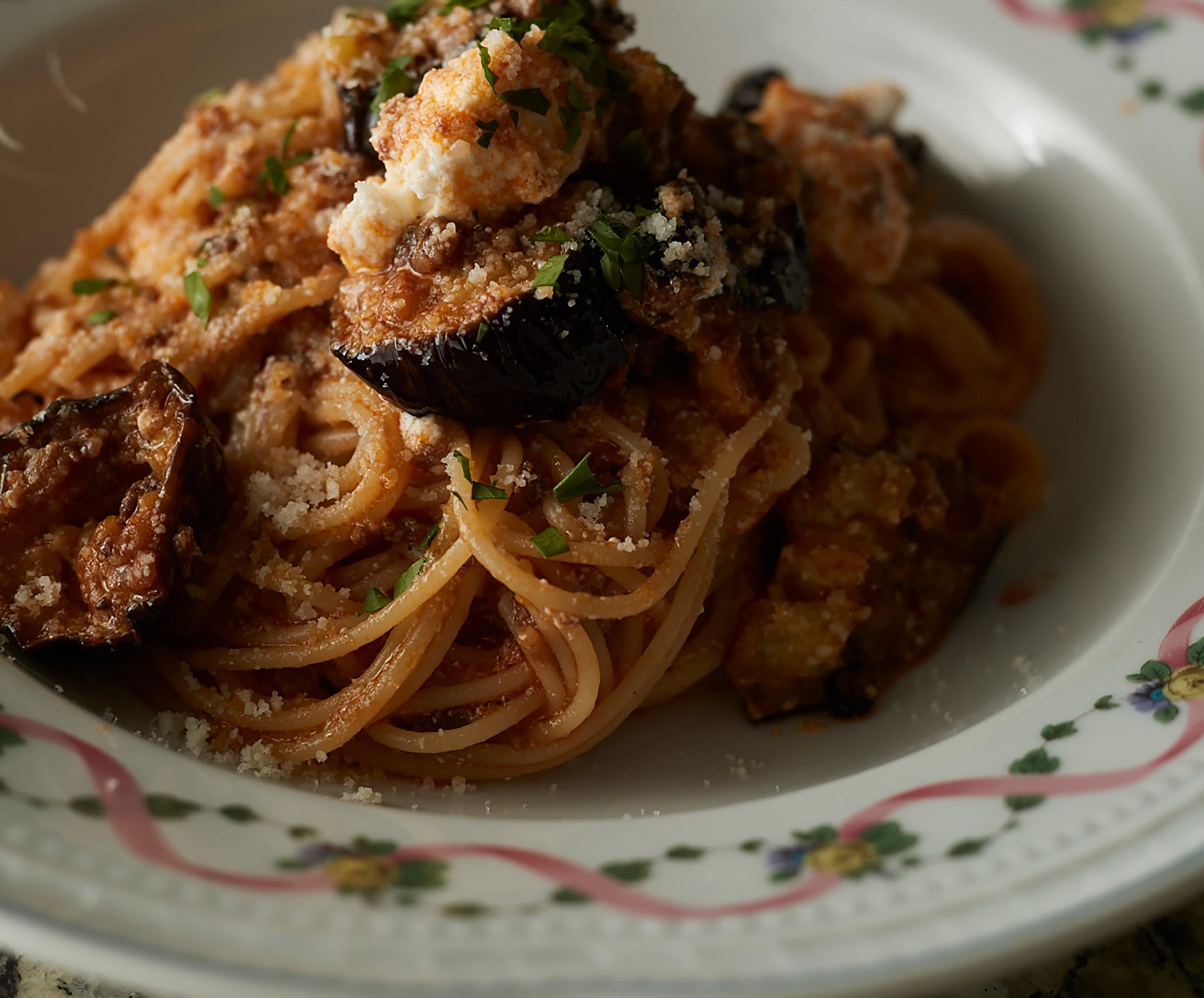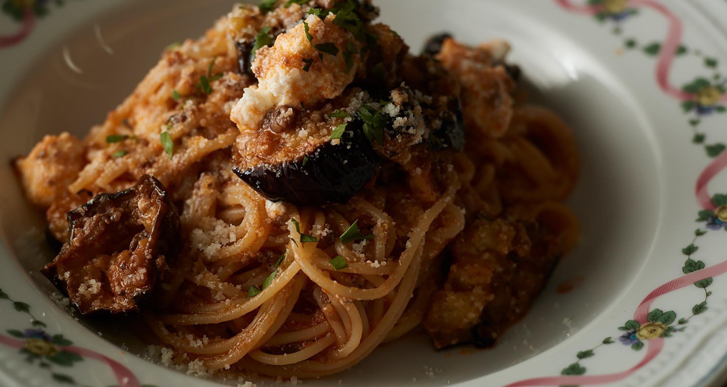 肉の旨味が際立つミートソースは北イタリア・ボローニャの家庭料理。煮込むのに時間がかかるので、一度にたっぷりつくっておき、アレンジを楽しむのがお薦めです。揚げなすと酸味の少ないリコッタチーズを加えればシチリア風。パスタとソースはおおらかに混ぜていただきましょう。
