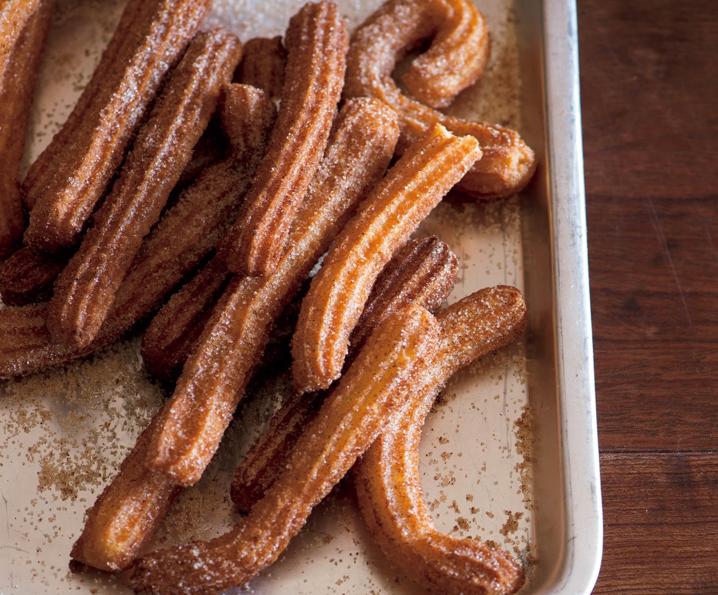 本場スペインでは朝からホットチョコレートに浸して食べるほどの定番菓子。外はカリッ、中はフカフカの軽い食感で、ついつい手が伸びる。溝にからんだシナモンシュガーの甘さと香りで上品な味にまとめている。
