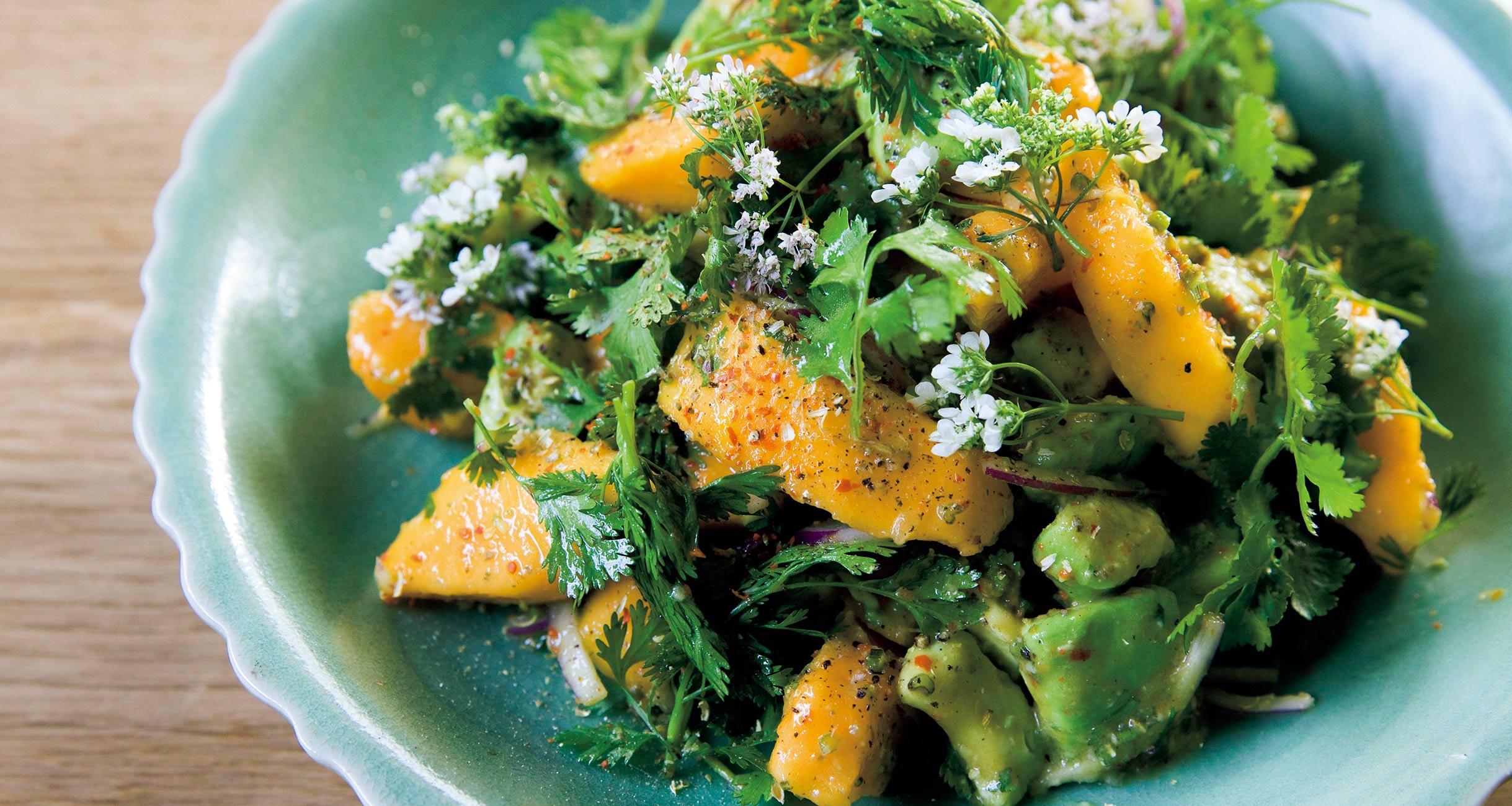 愛すべきパクチー、香味野菜(ハーブ)としてはアジア各国をはじめ、南米や、意外なところではポルトガルでも頻繁に使われています。わが家でよくつくる、パクチーのサラダの一つに、アボカドと合わせてレモンをキリリと効かせるパパイアのサラダがあります。実はこれ、「セビチェ」というペルー料理から発想を得たもの。