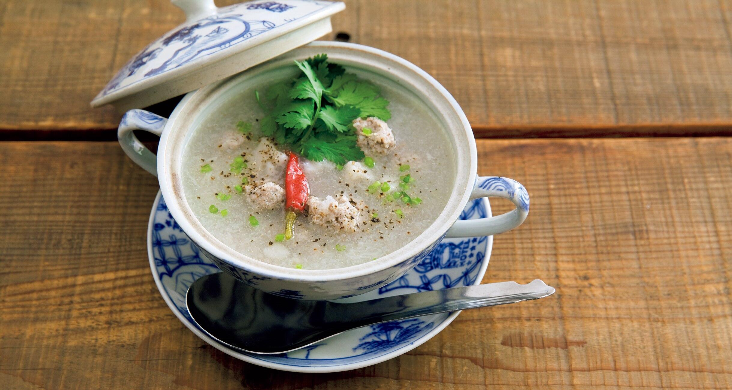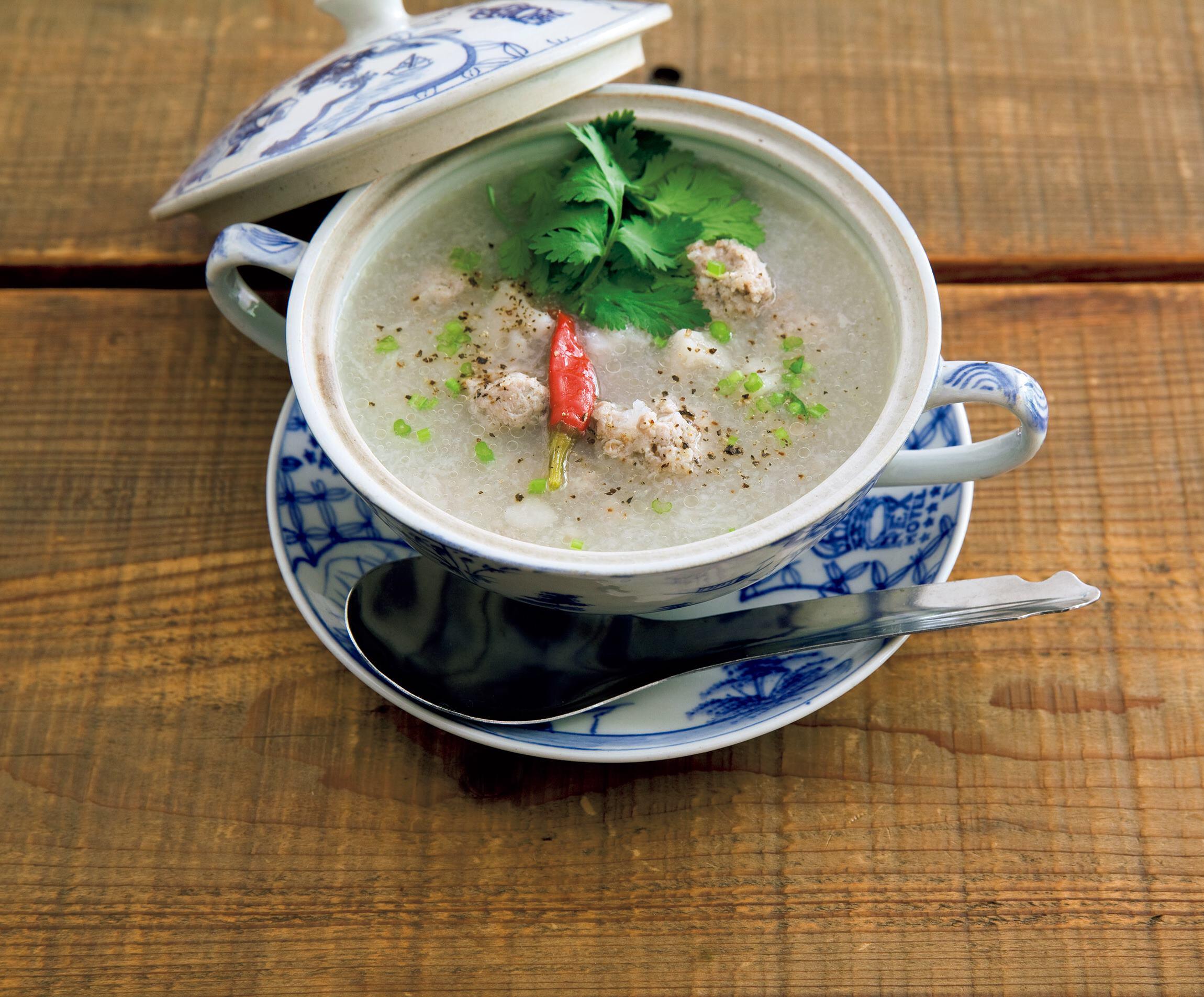 胡椒と塩をしっかり効かせた鶏肉の団子と、パクチーの根が、だしを使わずとも旨味たっぷりに仕上がるスープの味わいに一役買っています。