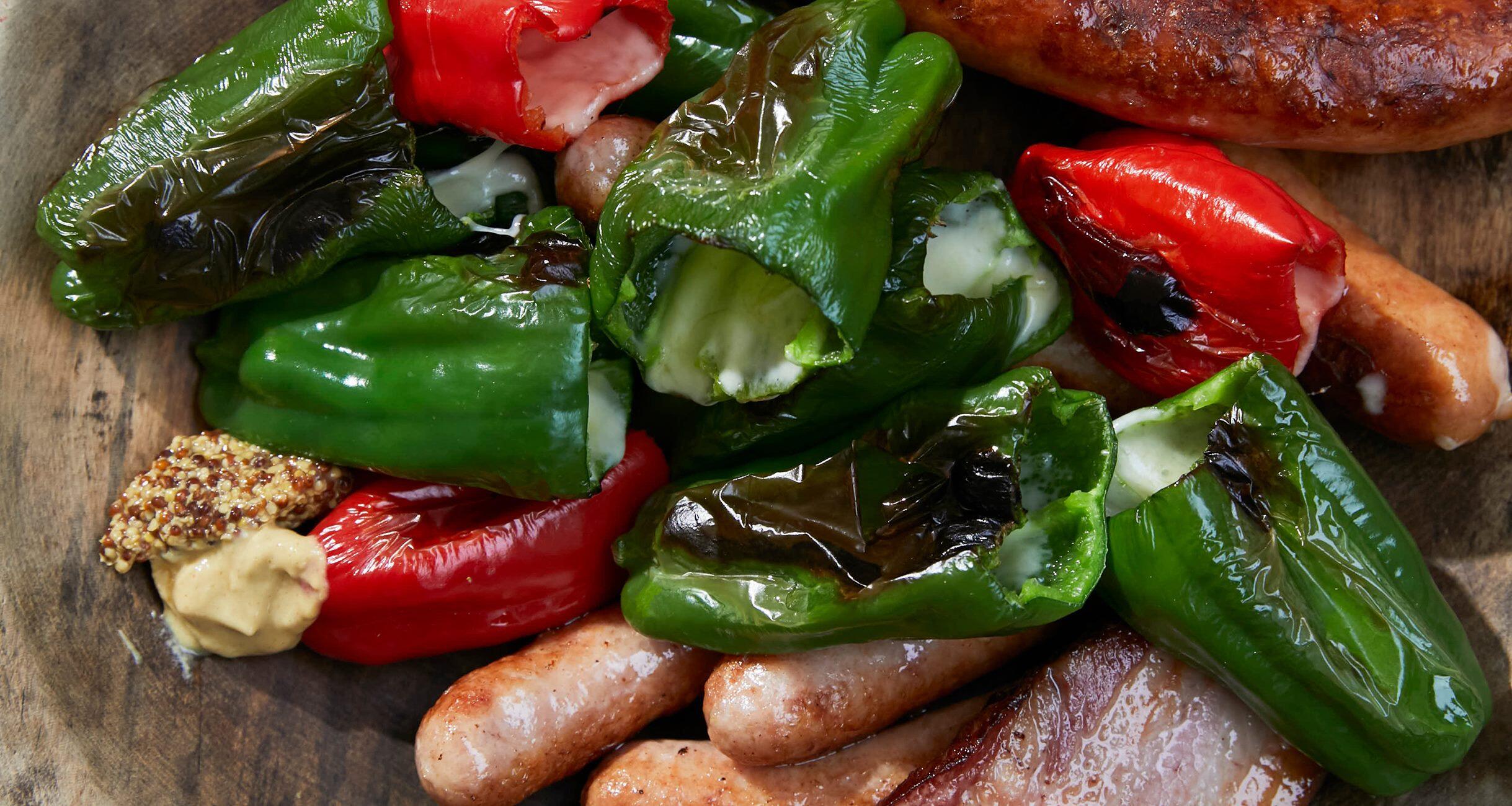 6月11日発売のプレジデントムック『四季dancyu夏のキッチン』には、夏食材をおいしく食べるレシピが満載。なす、ピーマン、トマト、きゅうり、ゴーヤーといった夏野菜はシンプルに食べても旨味が濃いので調理法がシンプルになりがちですが、だからこそちょっとのアレンジで食卓が華やぎます。今回は、料理家・植松良枝さんの夏野菜を中心にした旬の食材料理のページから、「ピーマンの丸焼きとベーコン、ソーセージの盛り合わせ」を。ピーマン嫌いもピーマンが好きになるおいしさです!