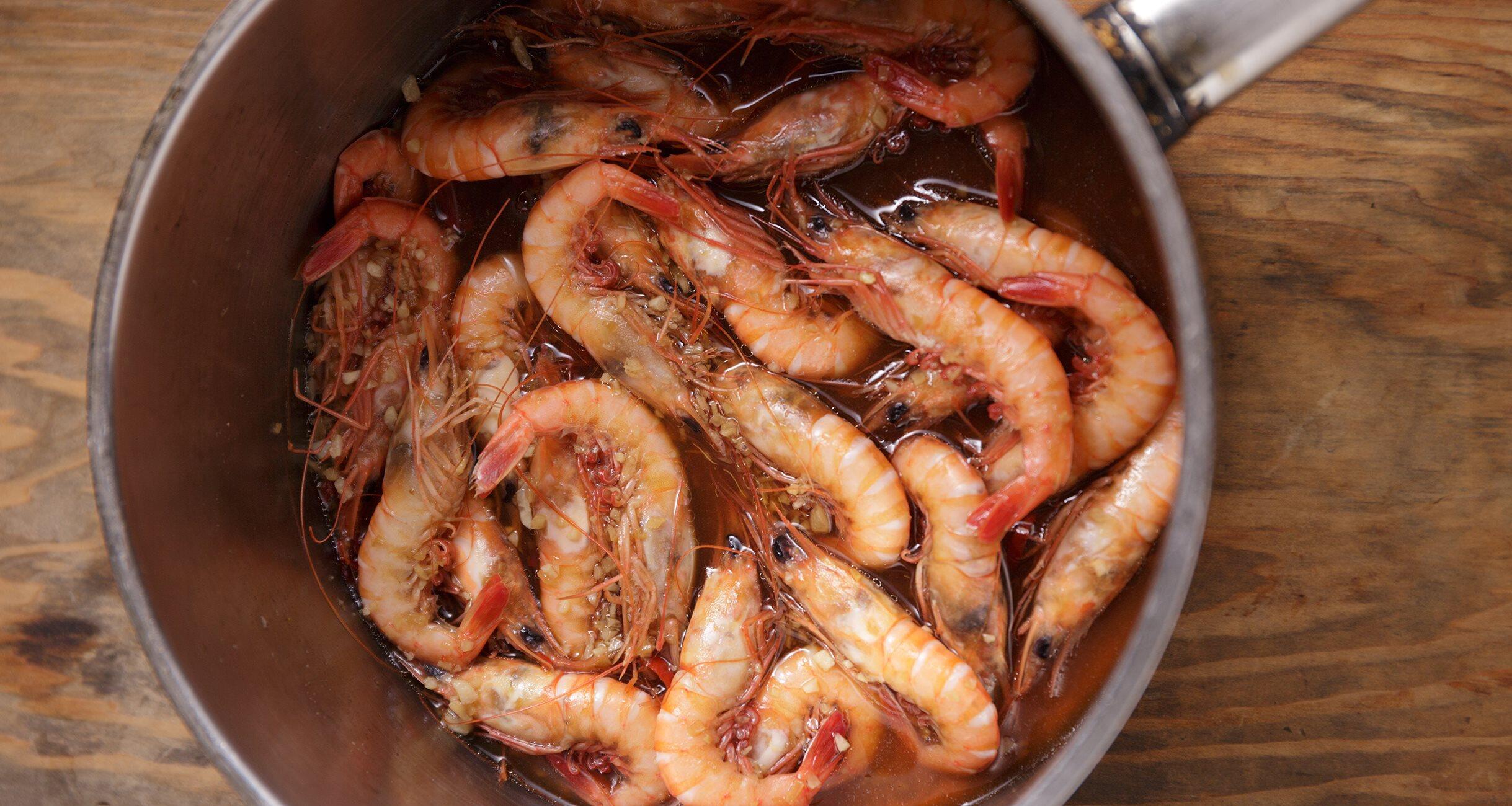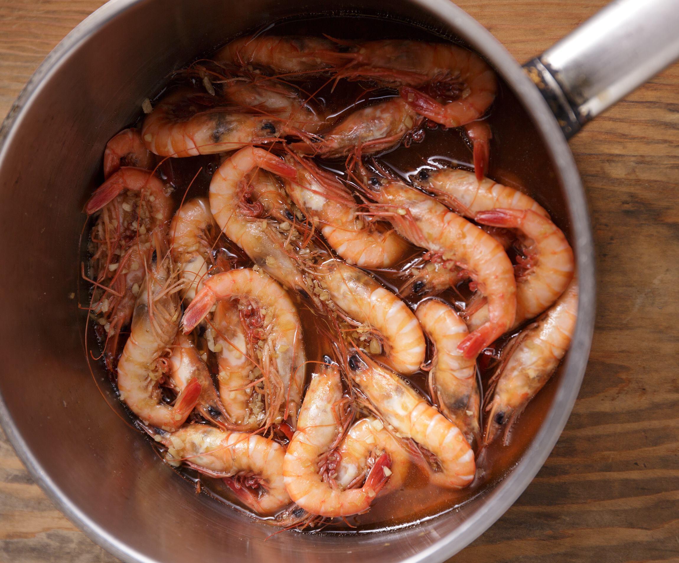海老の頭と殻から出るだしの、おいしいおまけ付きな一皿。たった2ステップの簡単レシピだ。紹興酒を加えただしで煮ることで、香りよく上品に仕上がる。川津海老は、殻が口に残らないのが特徴。芝海老やブラックタイガーなどでも代用できるが、必ず有頭のものを使おう。