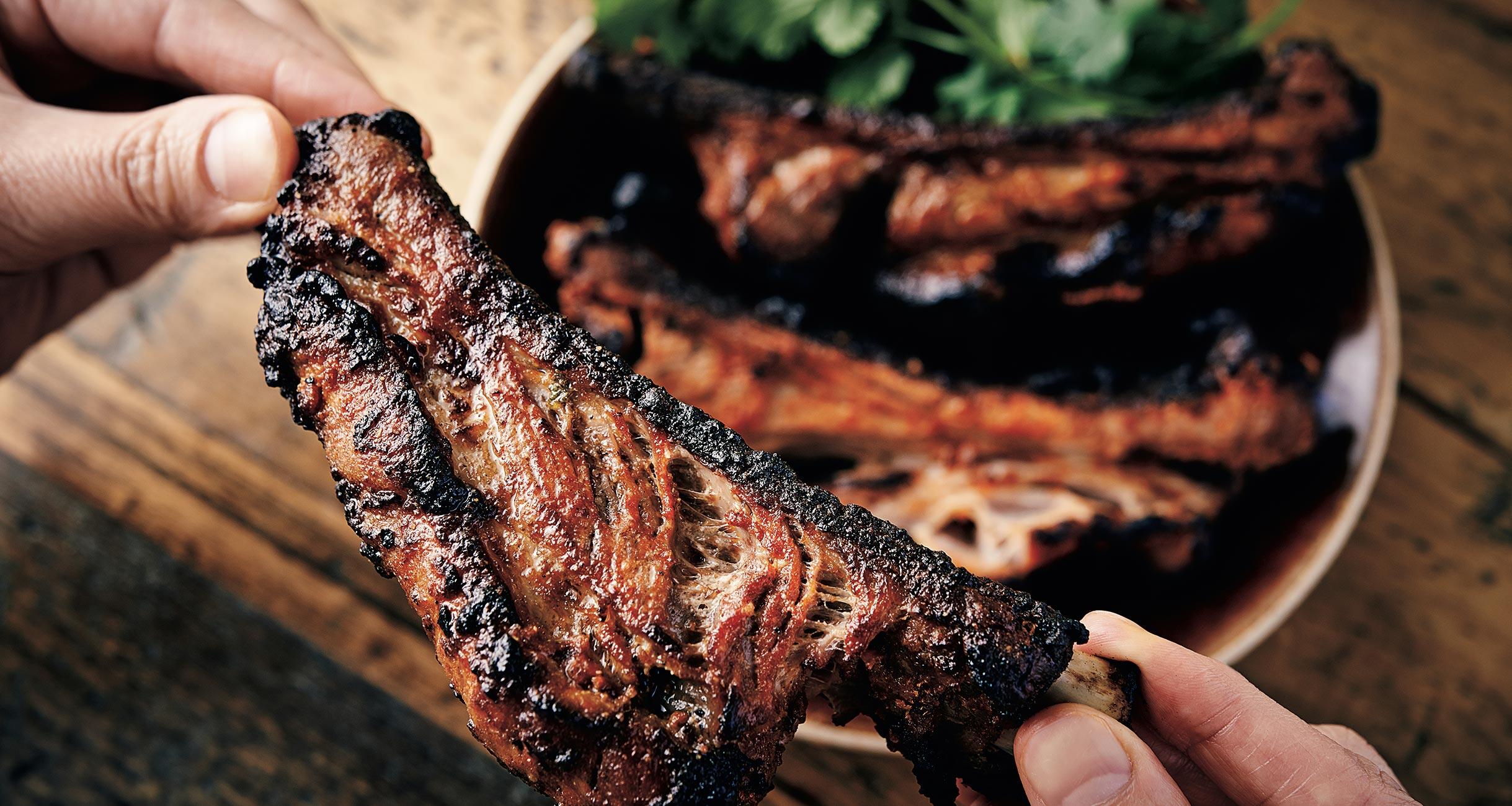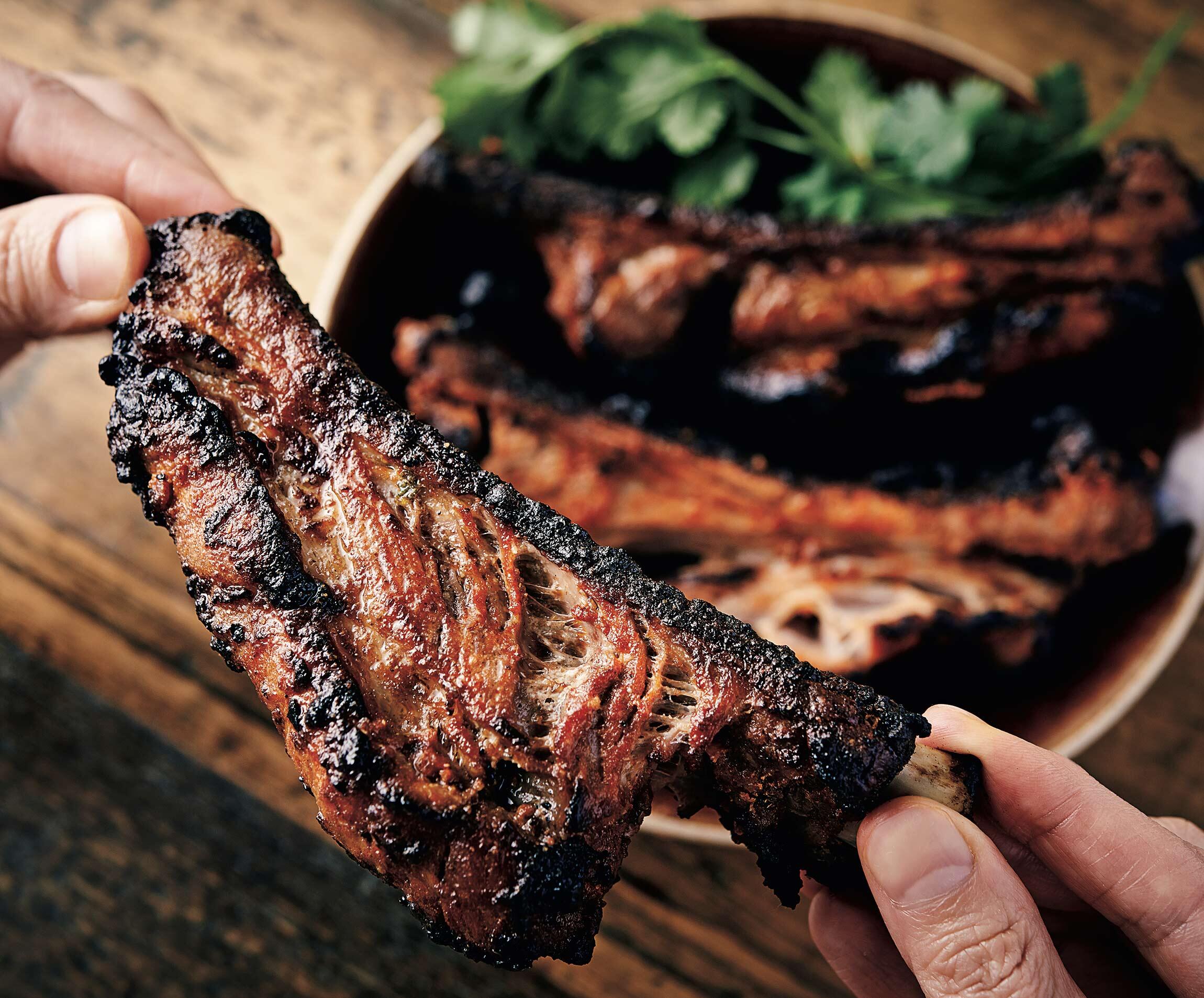 両手でしっかり持ち、前歯でガシッとかぶりつく。すると、思ったよりも簡単に骨からするりと身が外れるのは、マサラに混ぜたパイナップルの酵素のおかげ。肉質が柔らかくなり、旨味も引き出される、一石二鳥の隠し技。