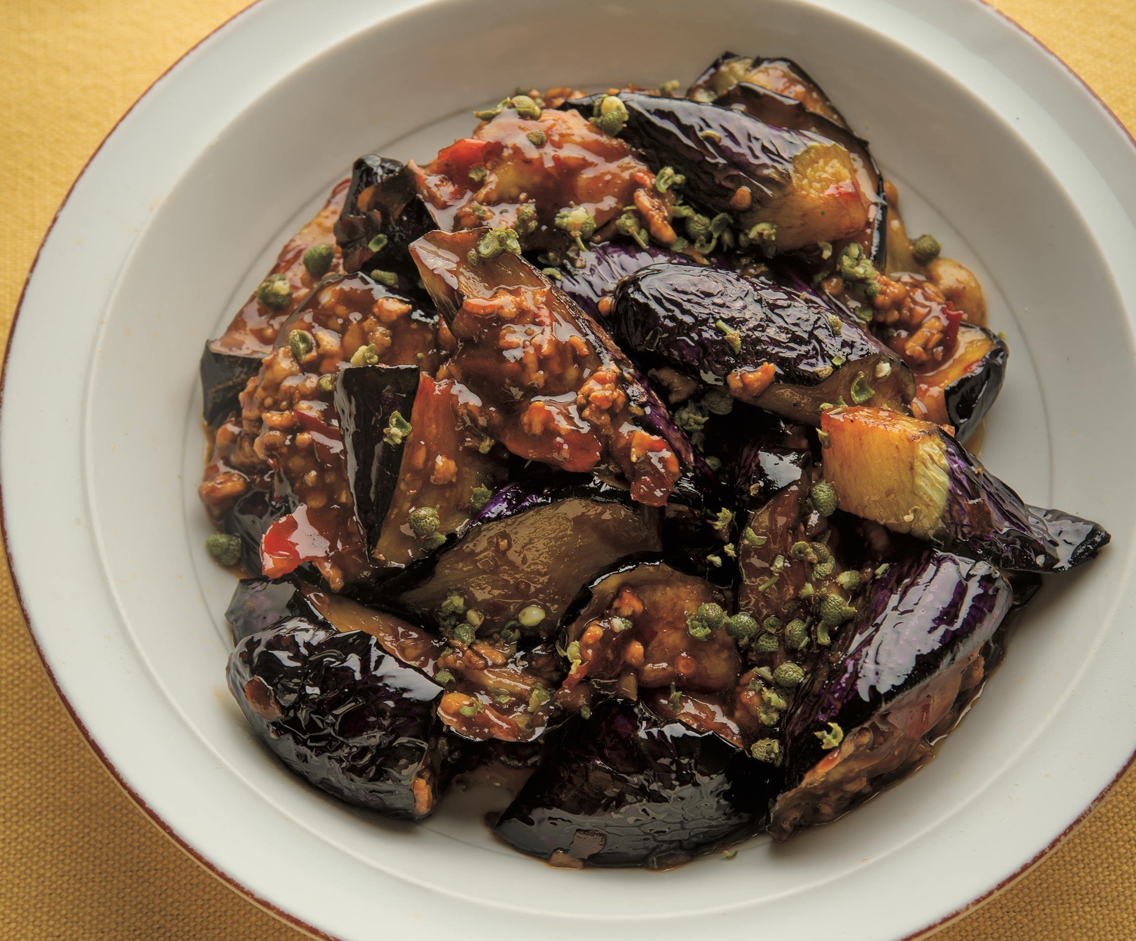 みんなが大好きな麻婆茄子は、山椒の実を加えてピリッと爽やかに。茄子は180℃以上の高温の油で色よく素揚げにすることで、油っこくならずに、中までとろんと火が入る。あとは一気呵成に、甘辛くしっかり味をつけた挽き肉と一緒に炒め合わせる。最後に水溶き片栗粉でとろみをつければ、あっという間にパンチ力ある香り高い一品が完成。