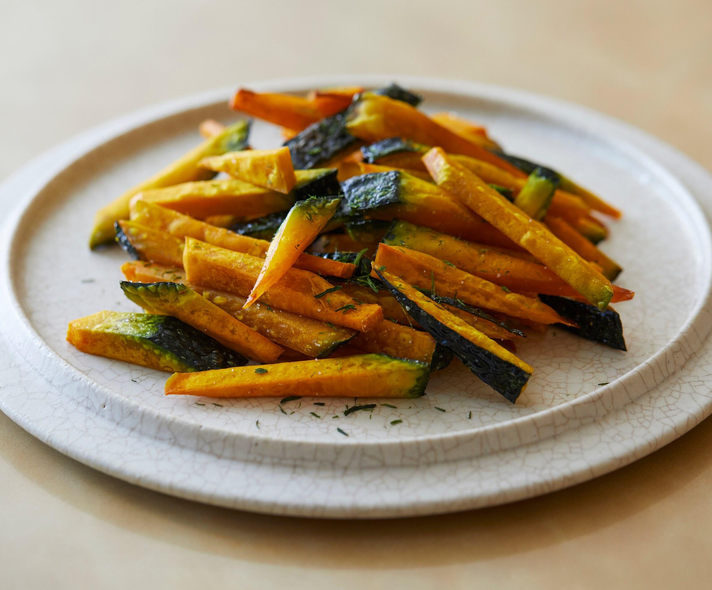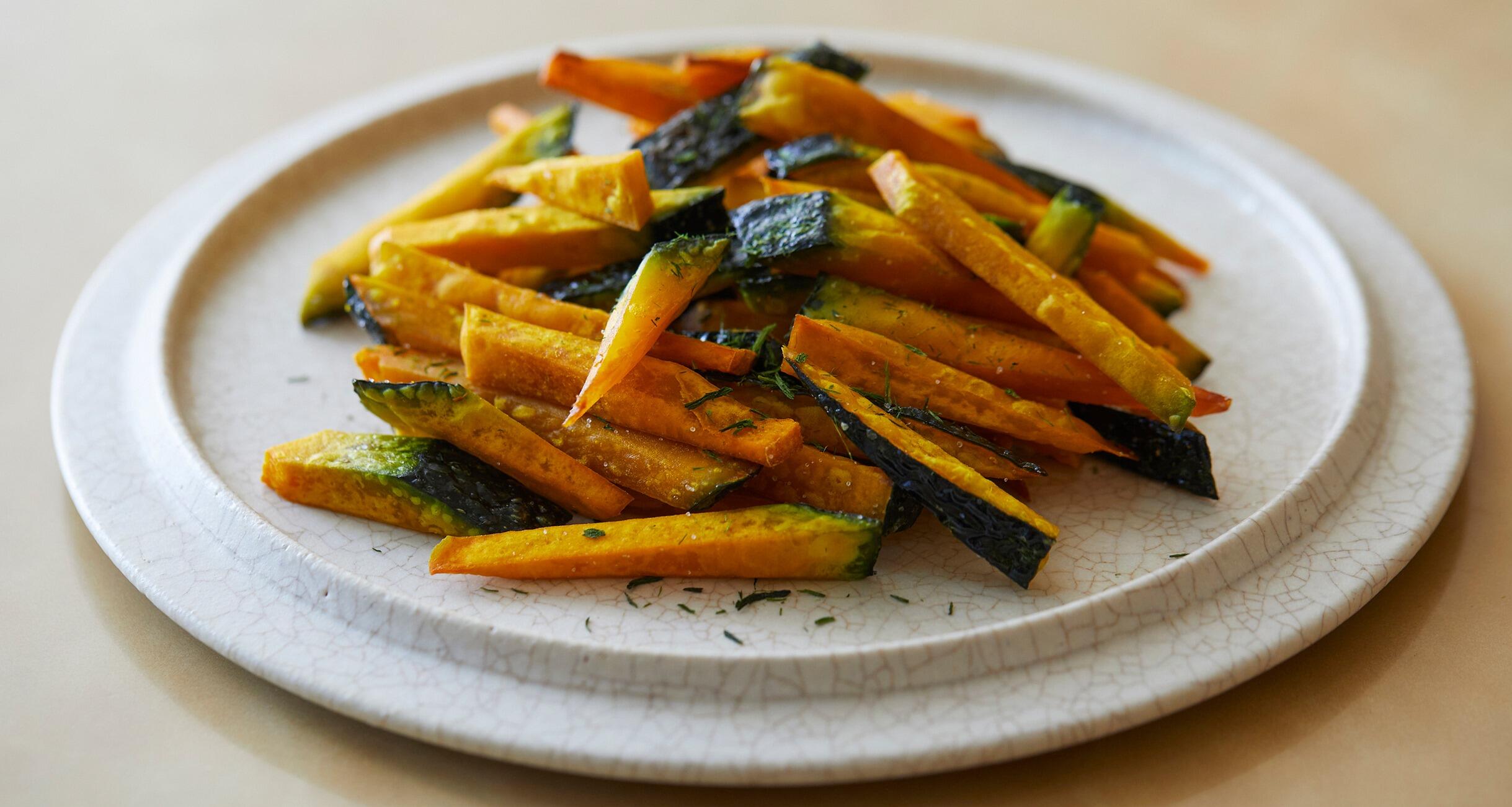 フードコンサルタントの村上智華さんに教わるかぼちゃレシピ。今回は、ホクホクした野菜と相性のいい油を使ってからっと揚げる、フライドポテトのかぼちゃバージョン!