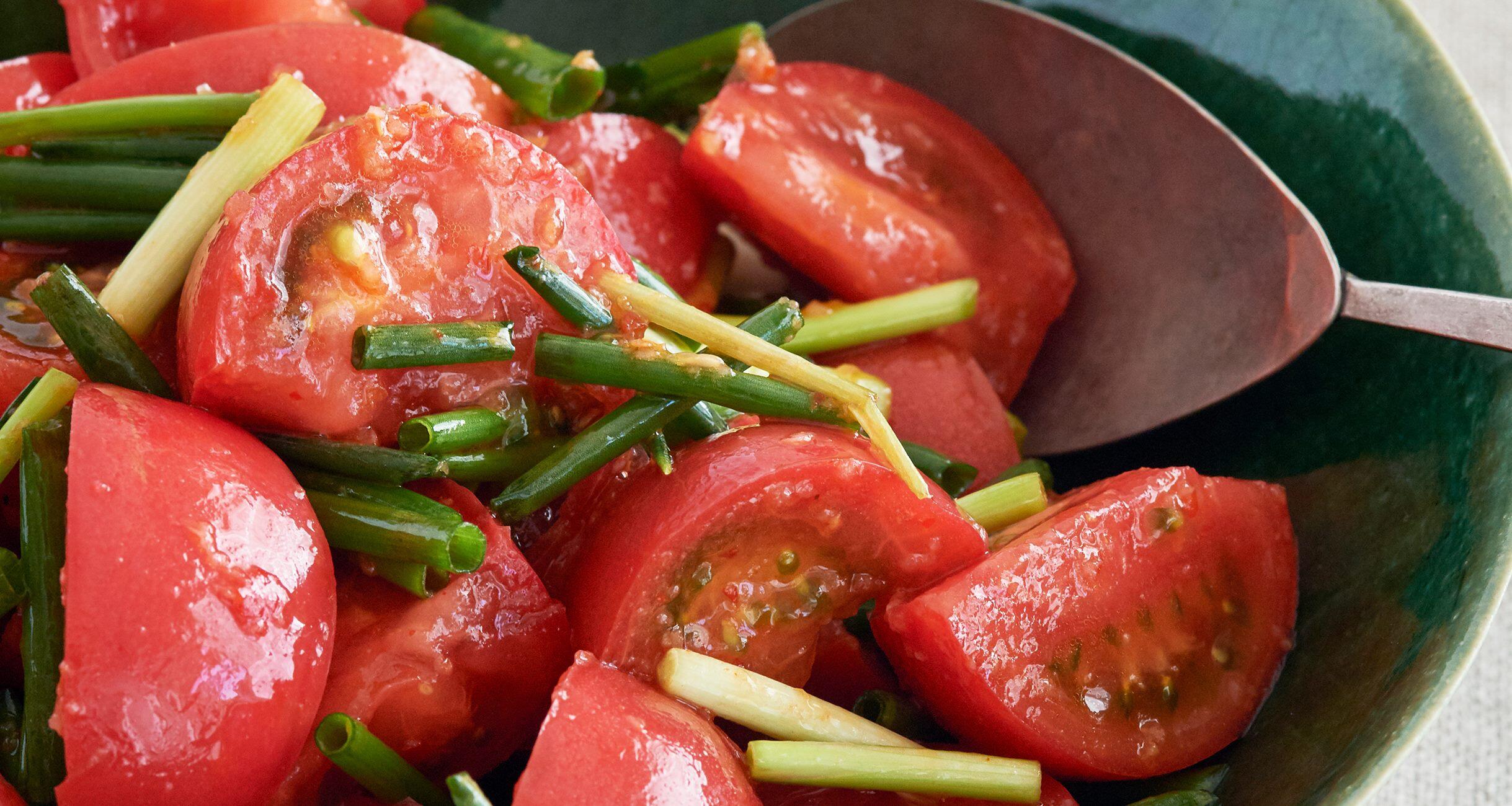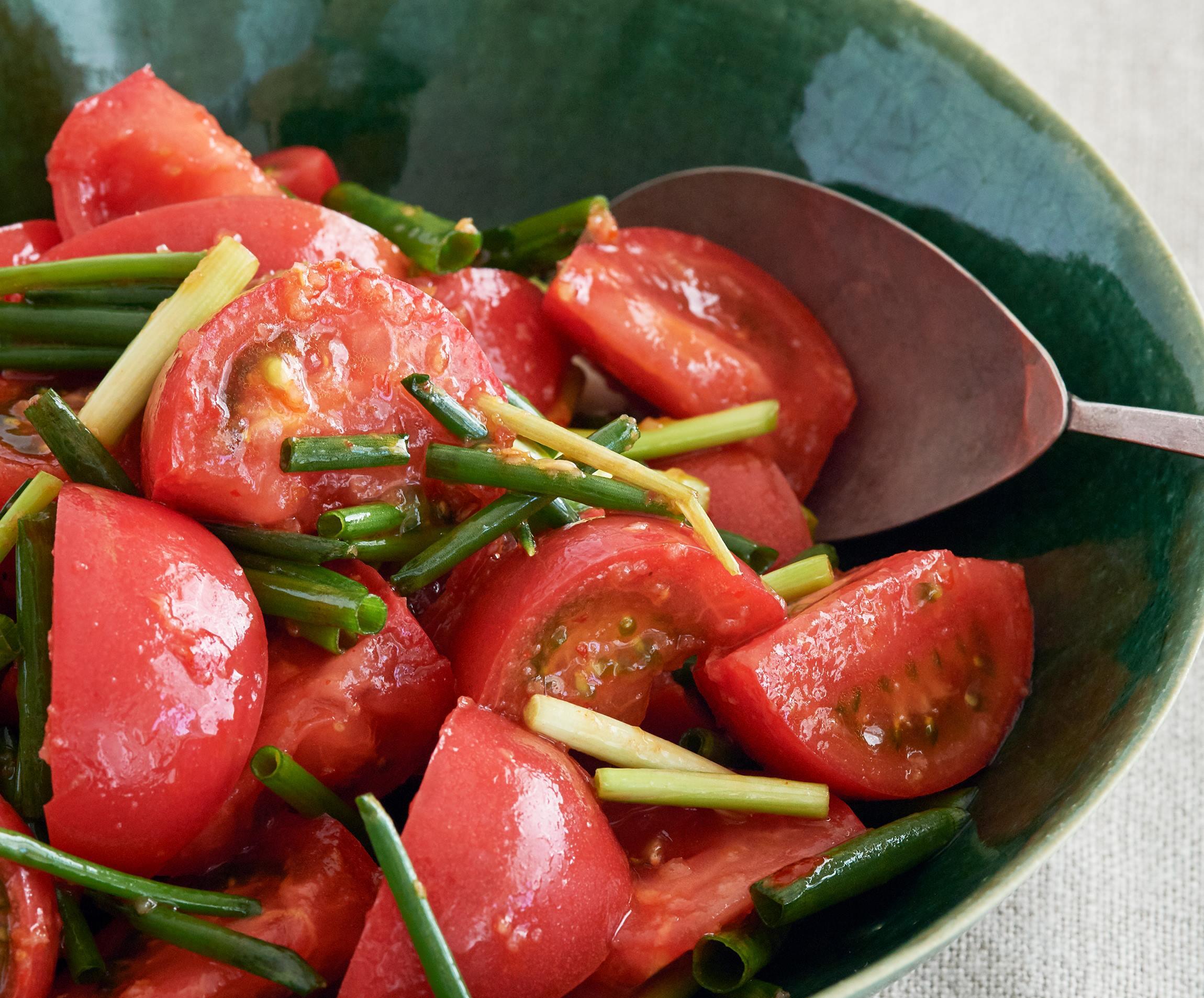 豆板醤の辛味がトマトの甘味を引き立てて、自然な甘さを楽しめる一皿です。切って和えるだけで絶品箸休めの完成!人気料理研究家の重信初江さんに、中華をベースにエスニックの香りも加えた、食欲の秋にぴったりのレシピを習いました。