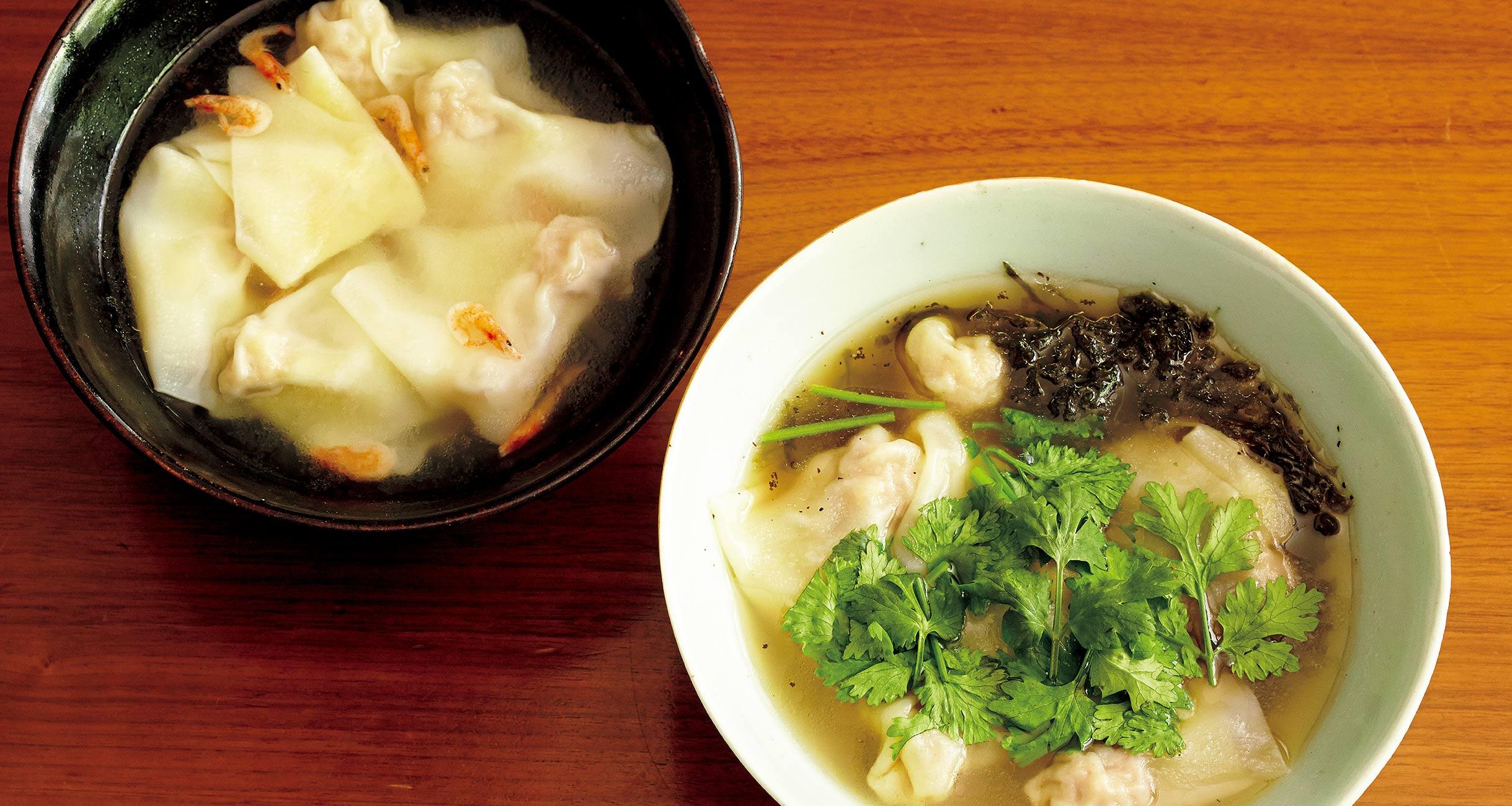 コクのある鶏ガラスープベースのワンタンの味はもちろん格別ですが、時間がないときは、旨味のある食材に頼ってみるのも一手。今回は水にだしの出る食材を入れて煮立たせる、簡単スープを二品ご紹介します。ここに基本のワンタンを浮かべて、つるんと楽しんでください!