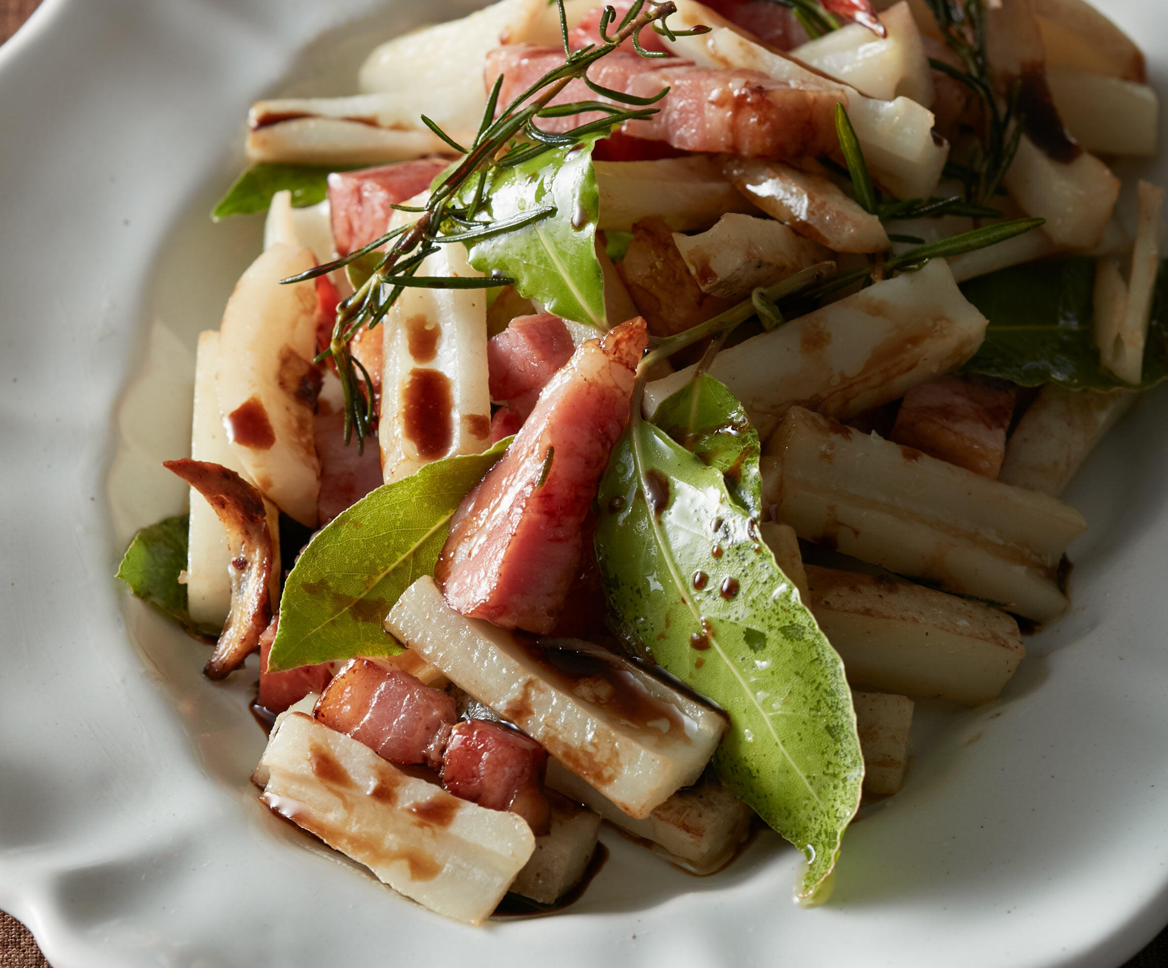 好評発売中の「四季dancyu秋のキッチン」から、旬の食材を使った料理をご紹介。和風に味つけすることが多いれんこんを、ローズマリーとローリエで洋風に仕上げます。