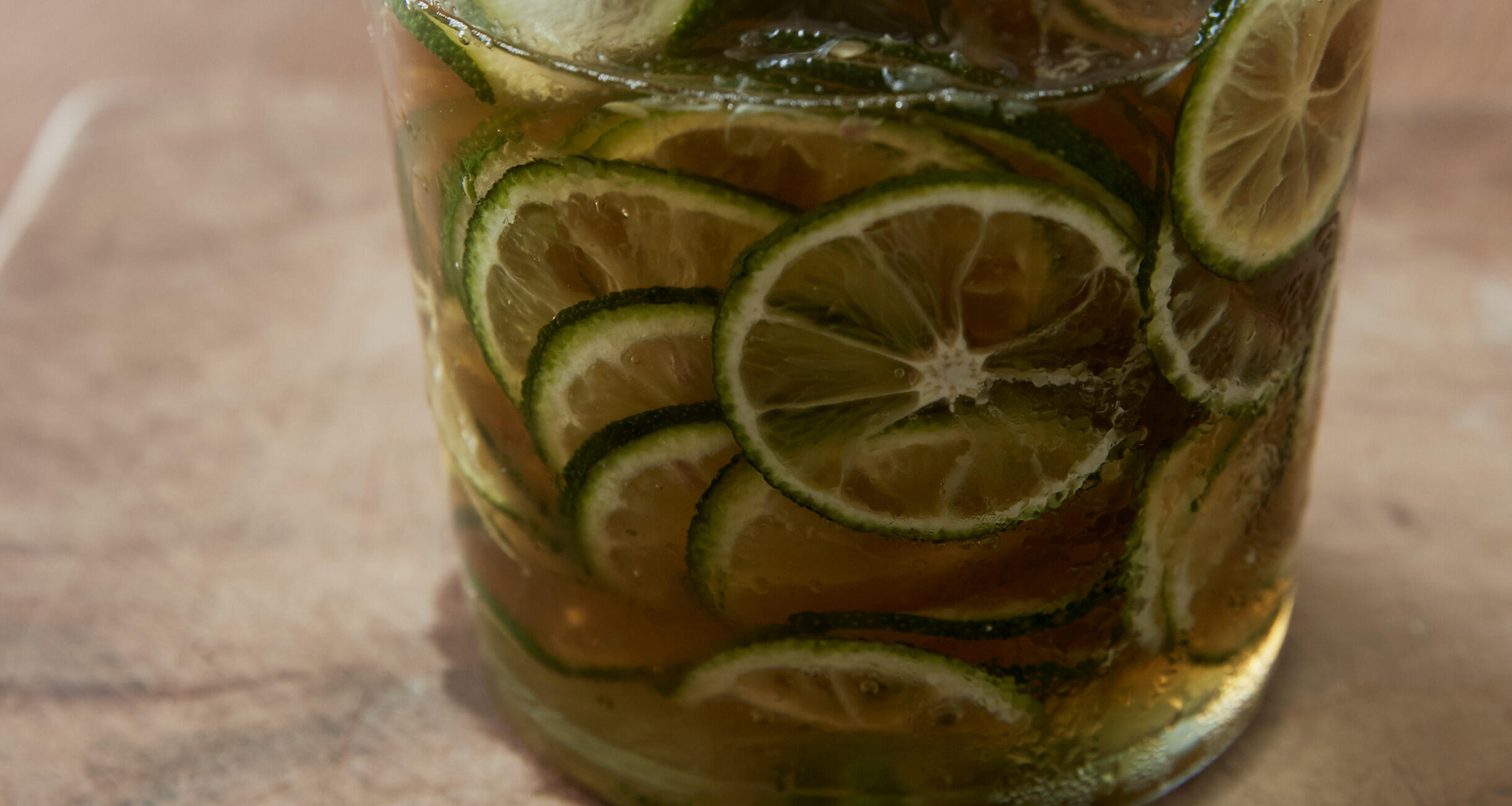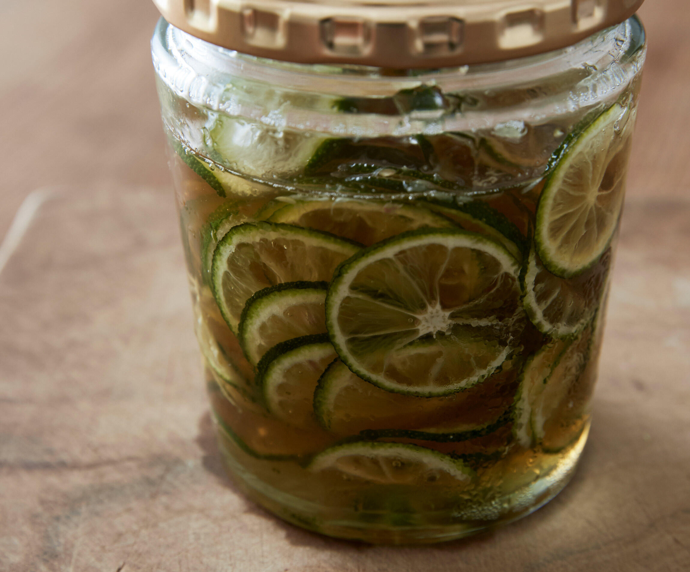広口の瓶などにすだちのスライスを入れてシロップを加え、めん棒などで数回突き、蓋をして保存する。冷蔵庫で半日以上おいてから使うと香りやエキスが出てくる。