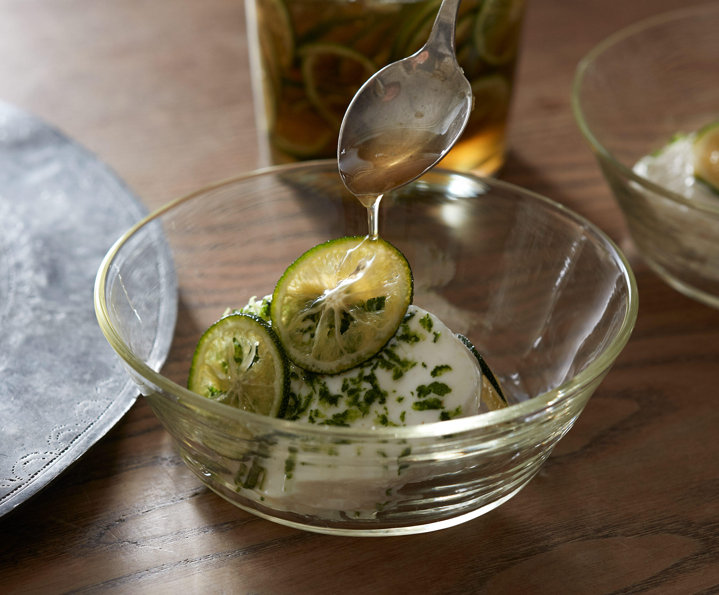 食べるときに上からすだちの皮をたっぷりすりおろし、スプーンなどですくって器に盛り分け、すだちシロップを適量かける。