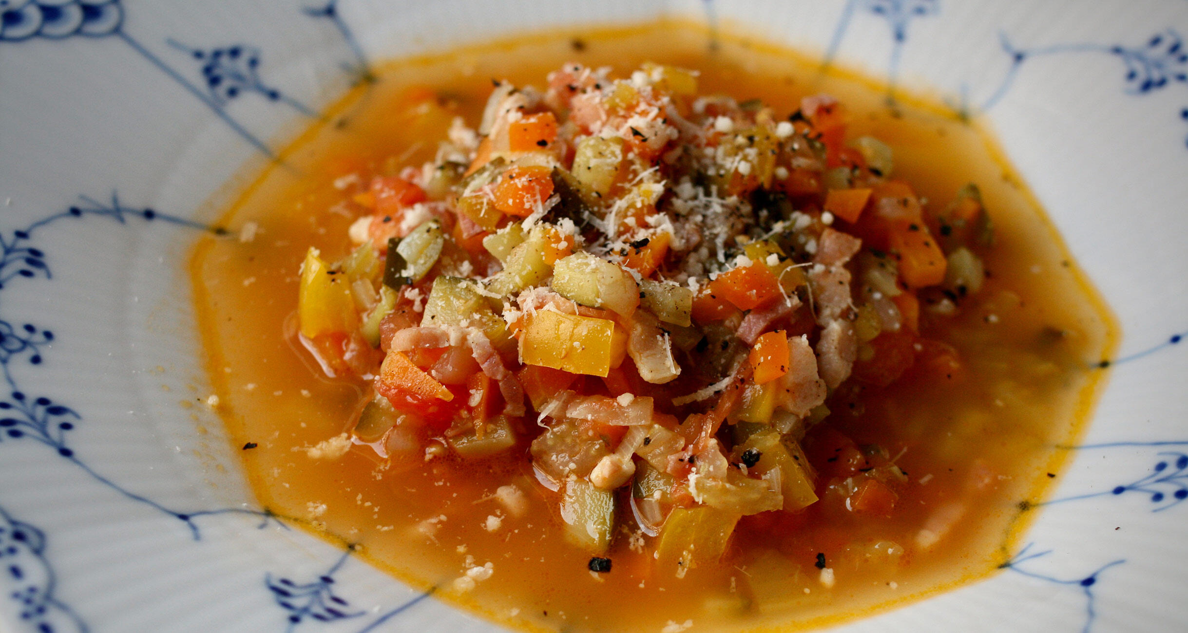 作家であり、ミュージシャンであり、映画監督、そして父である辻仁成さんが、毎月2回dancyu webでご紹介くださる“パリ・スープ”。その中でもぜひつくってみていただきたのが、食べるスープの代表であるという“ミネストローネ”。ダイス状に切りそろえられた野菜と、ベーコンの旨味が相まって、お腹がいっぱいになるレシピです。