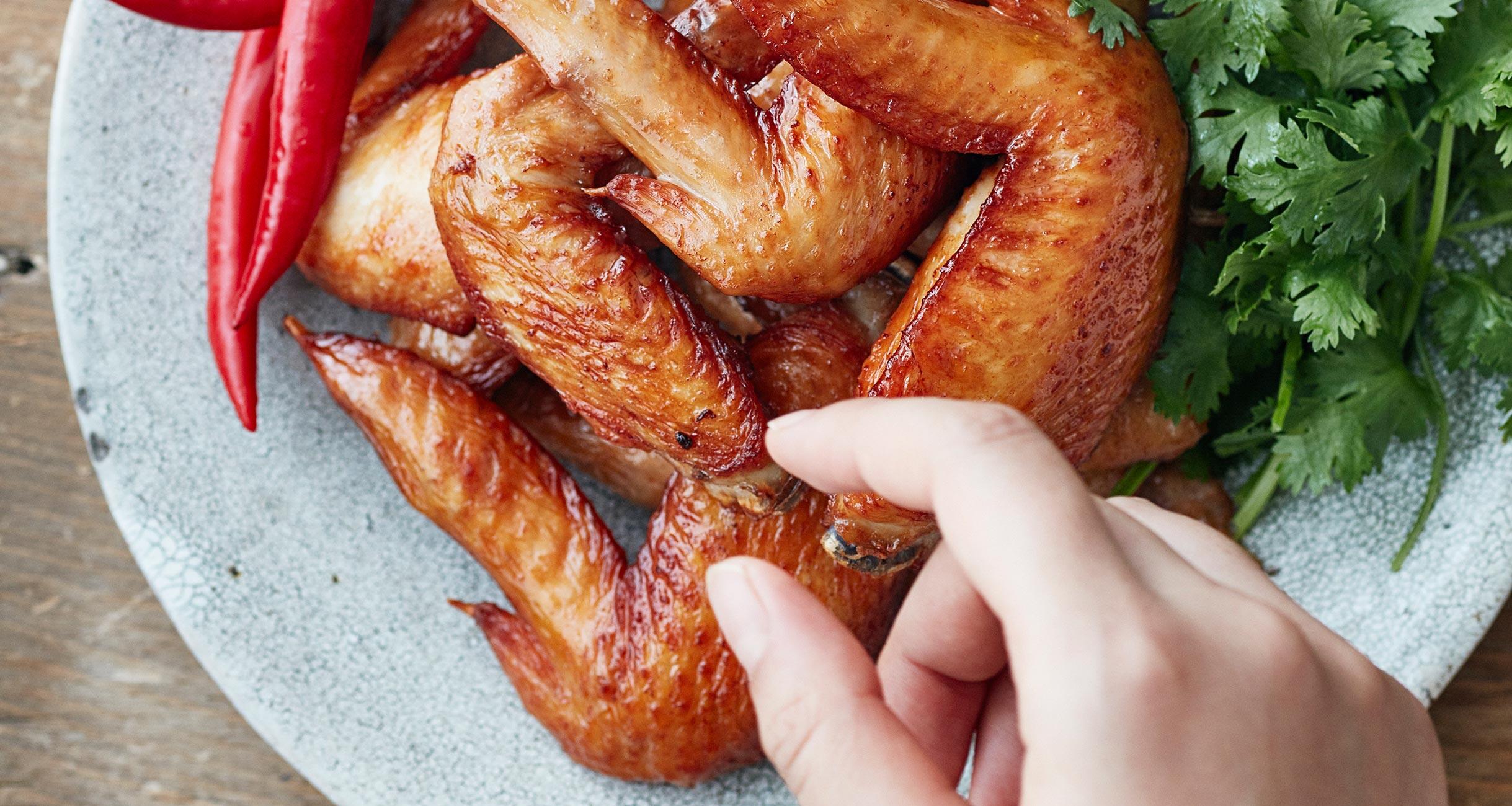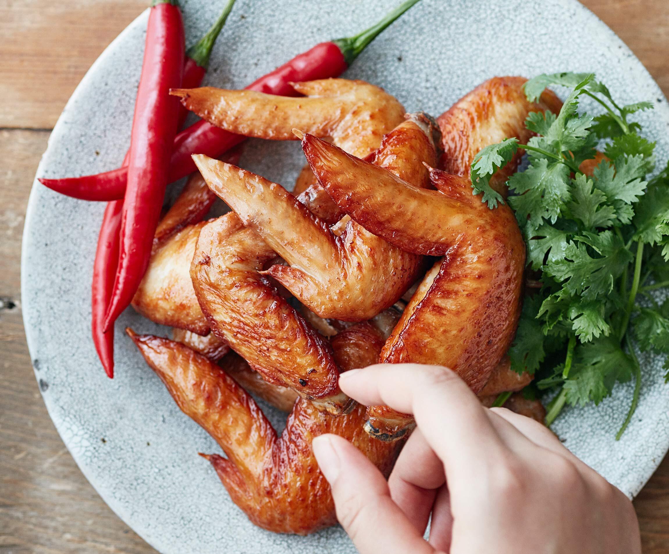 揚げ油を中温に熱し、手羽先を入れ、5分ほどこんがりと揚げて油をきる。器に盛り、香菜、唐辛子を添える。