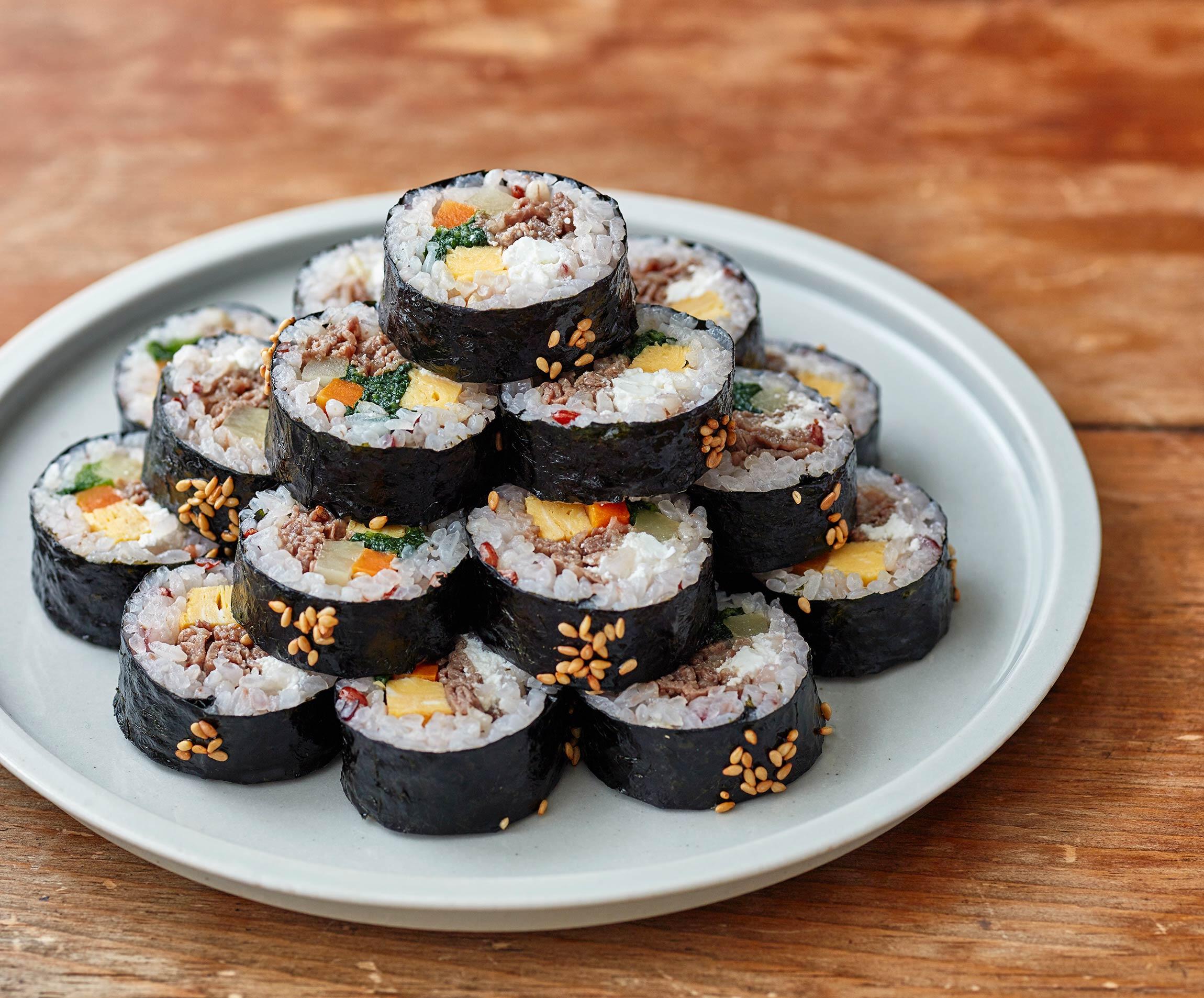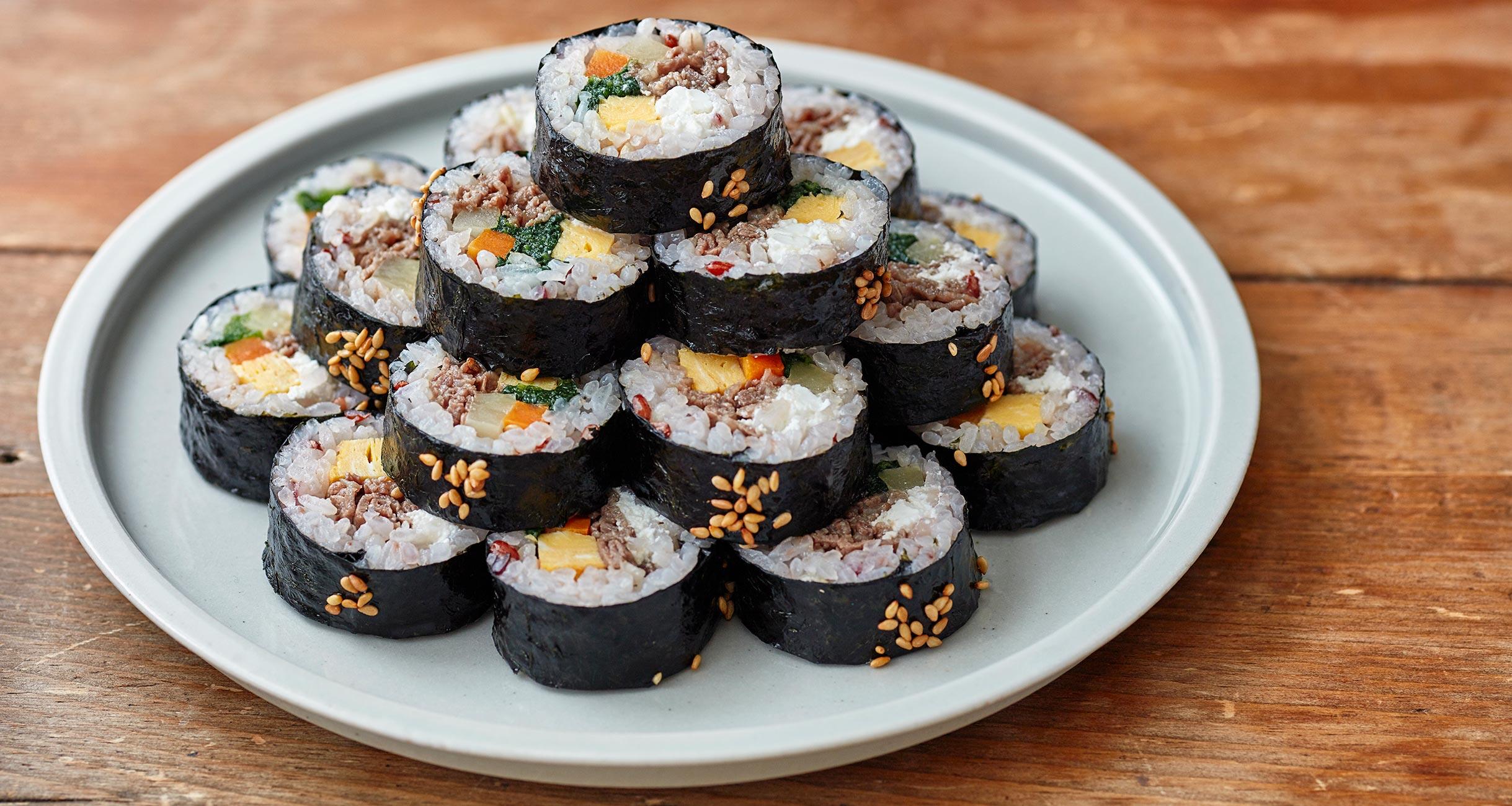 韓国風海苔巻のキンパは、具だくさんで栄養満点!彩りも豊かで、一口で食べられるサイズなので、お弁当にも最適です。意外な食材ですが、カッテージチーズの旨味が全体をまとめます。取材で各地を旅しているコウケンテツさんに、ロケ先で出会った思い入れのあるお料理の中から、家庭で美味しく簡単につくれるレシピを習いました。