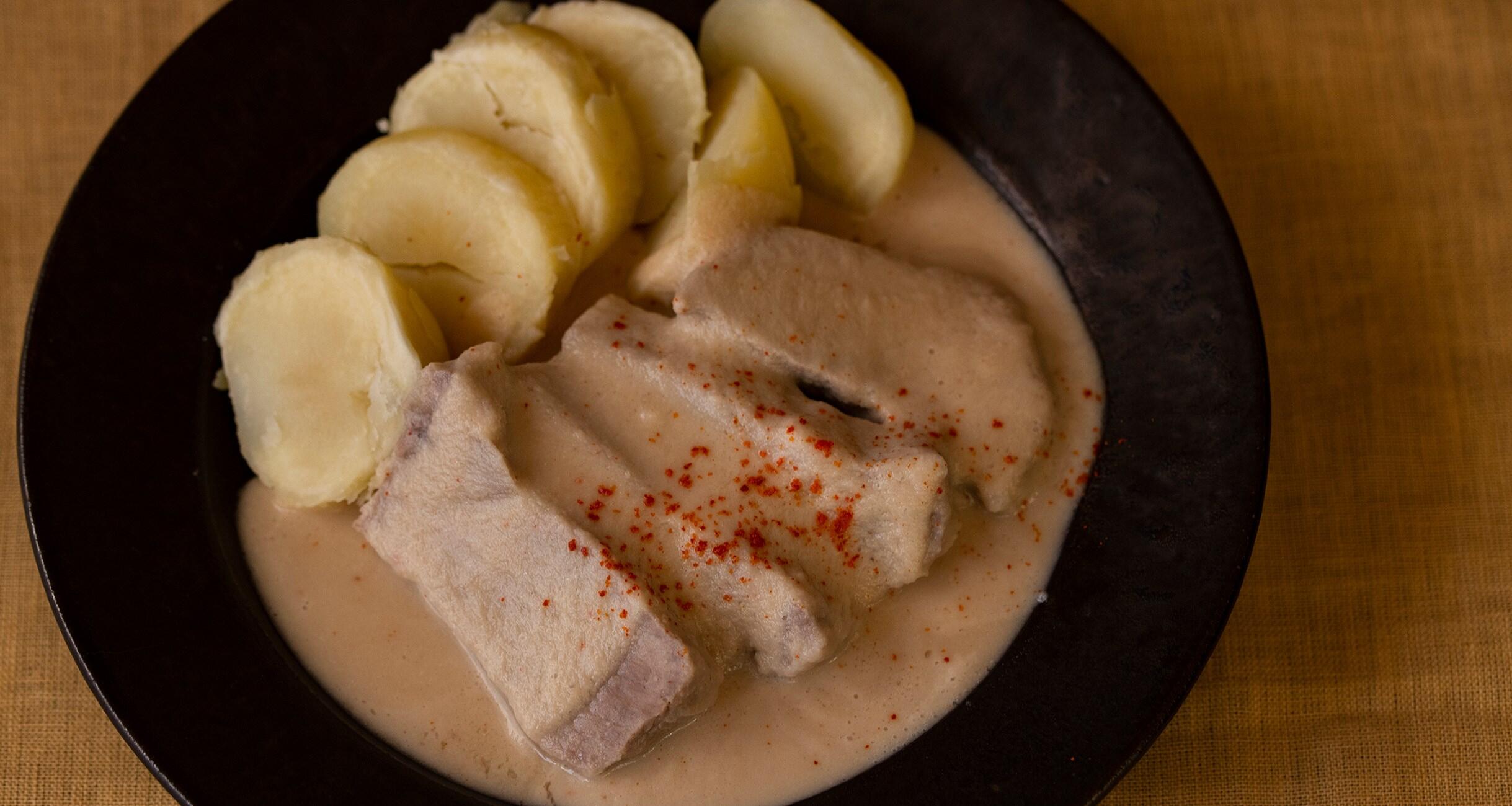 ペルーでポピュラーな「インチカピ」という料理がもとになっていて、ふかしたじゃがいもを主食にして豚肉とソースを合わせて食します。これで一食として完結する料理です。