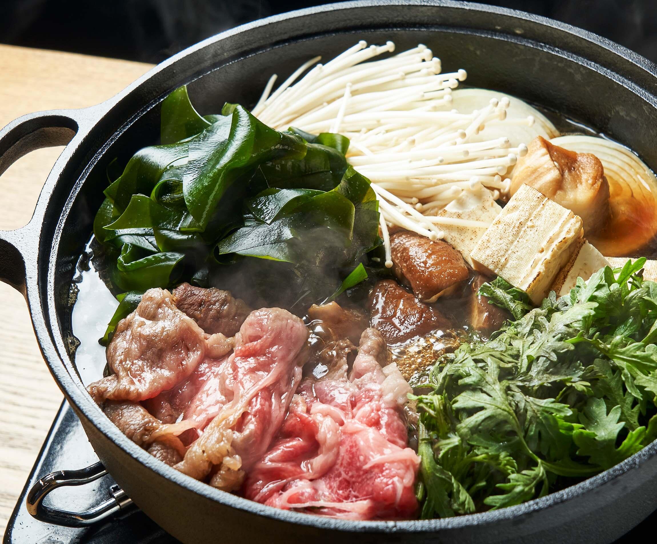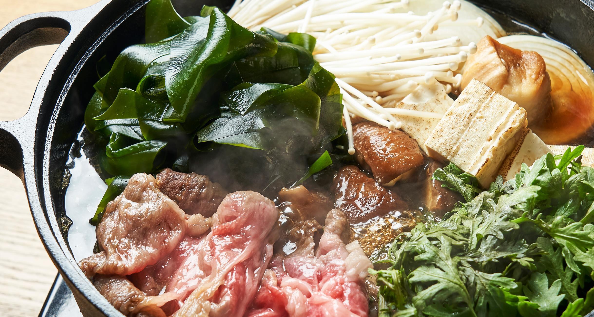 「わかめってこんなに味が濃かった?」と驚かされる「わかめと和牛のすき焼き」は、村田さん直伝の割り下が肉とわかめを見事に調和させた。