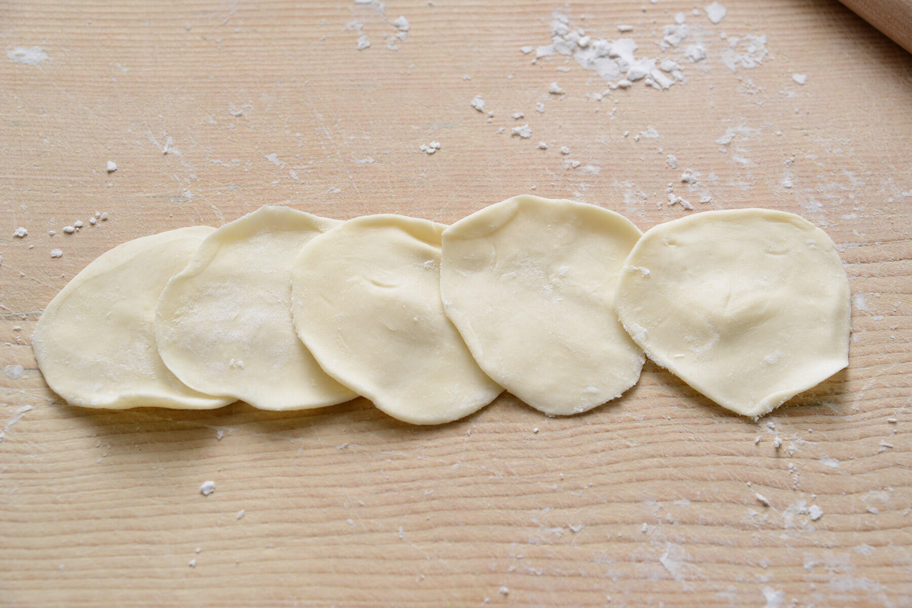 皮の両端を合わせたら、中心を軽く上にのばし、端を指の腹で押し合わせる。