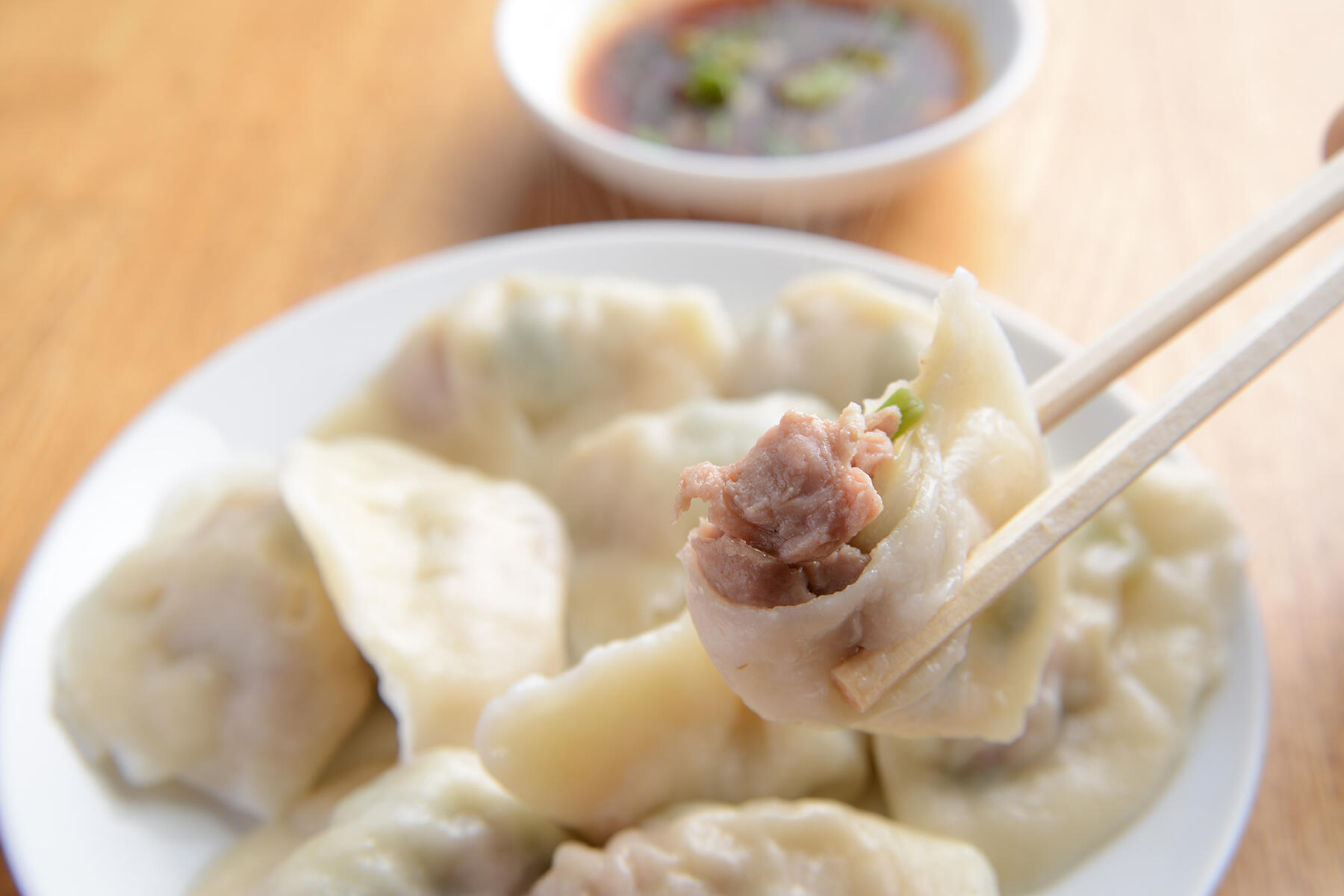 多めの湯を鍋に沸かし、沸騰したら餃子を入れる。餃子が浮いてきたら取り出して、ボウルに張った水で締める。