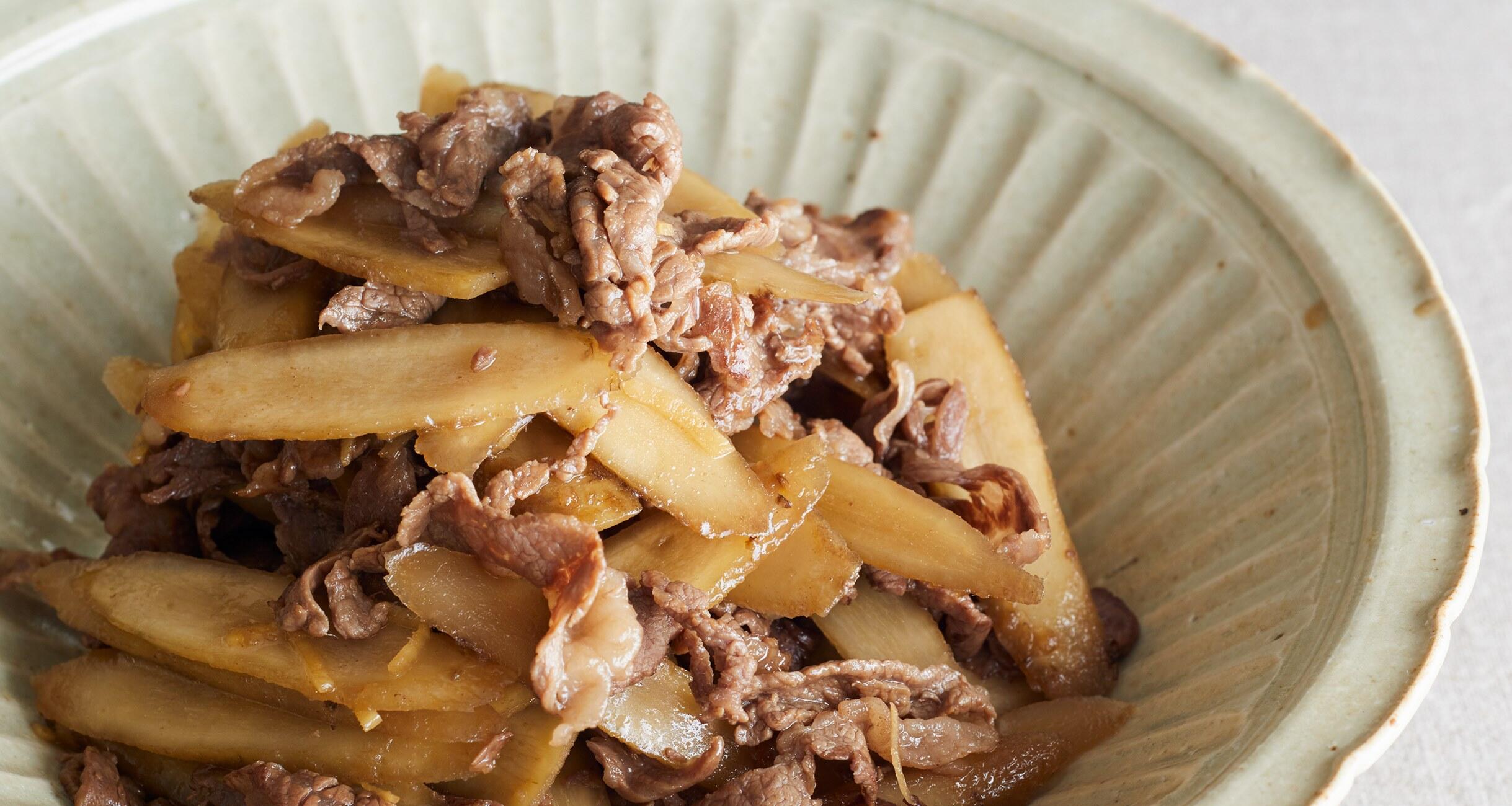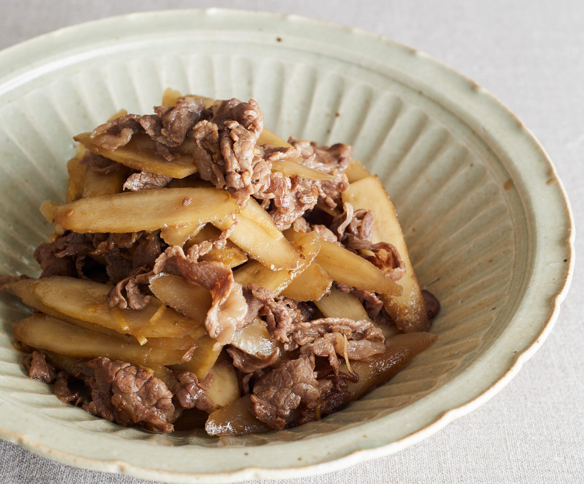 名コンビ、ごぼうと牛肉の甘辛味。火が通りやすいようにごぼうは薄く切るのがポイント。常備菜として常にストックしておきたい便利おかずです。炒め煮とは、その字のごとく、炒めてから煮ること。油で炒めて、素材のもつ旨味をぎゅっと閉じ込め、さっと煮てじわじわ味をしみ込ませます。