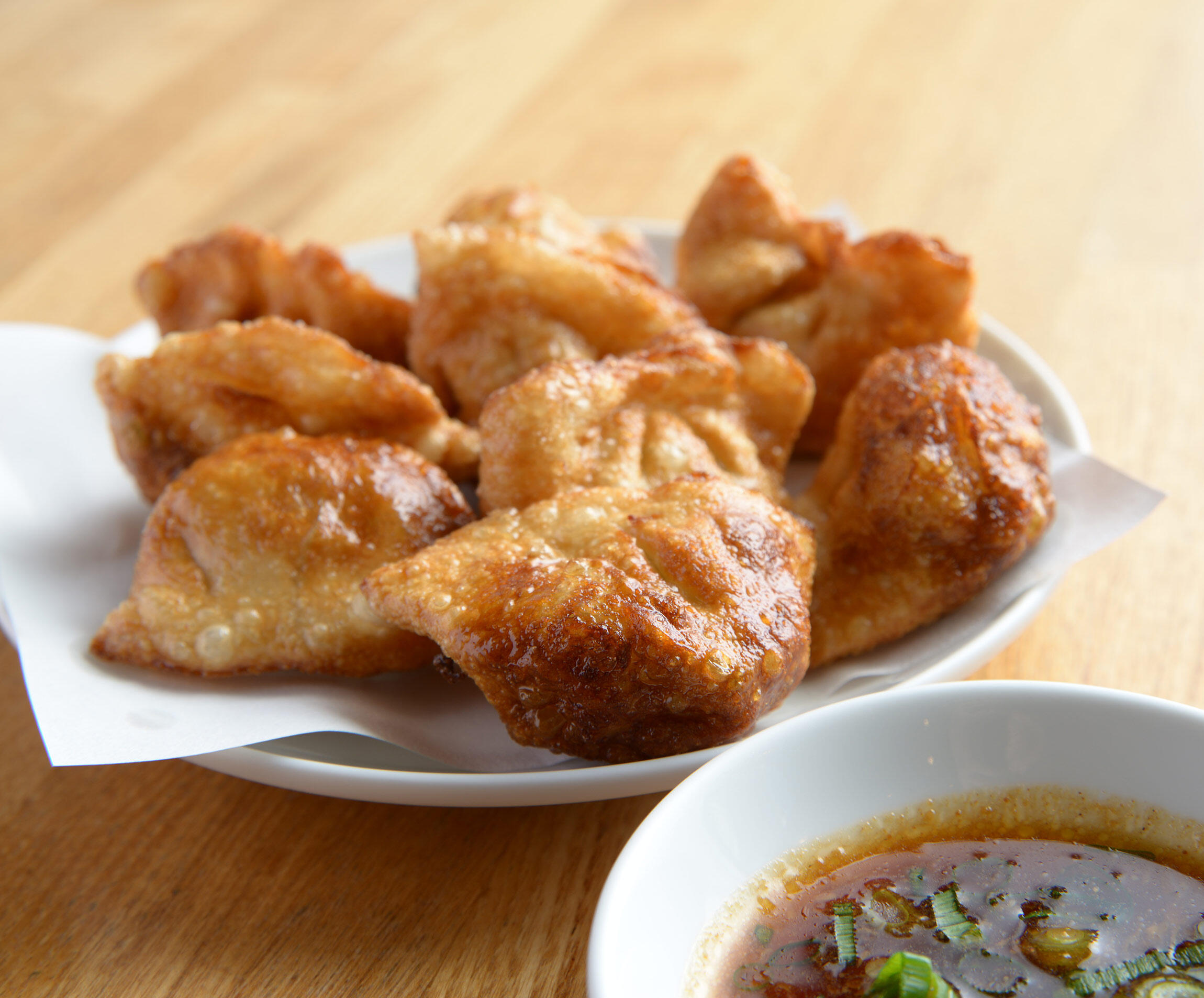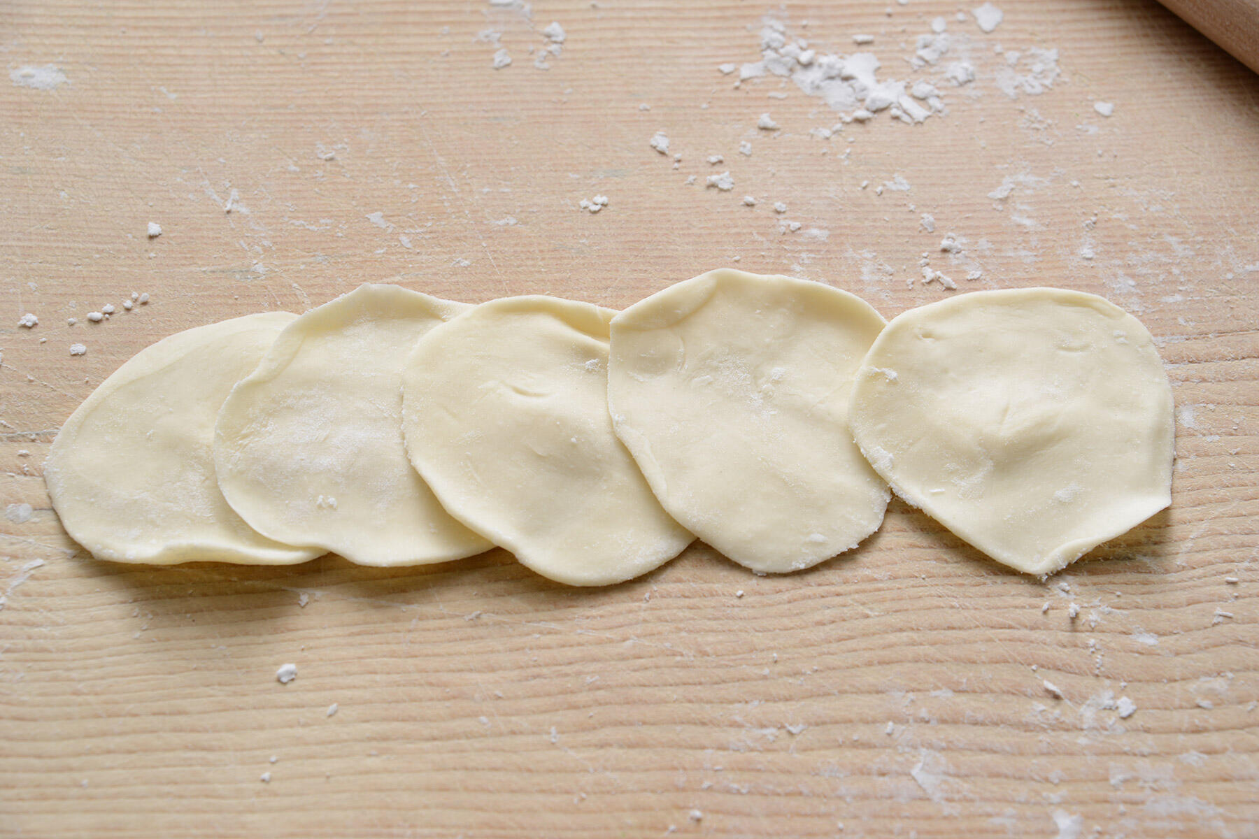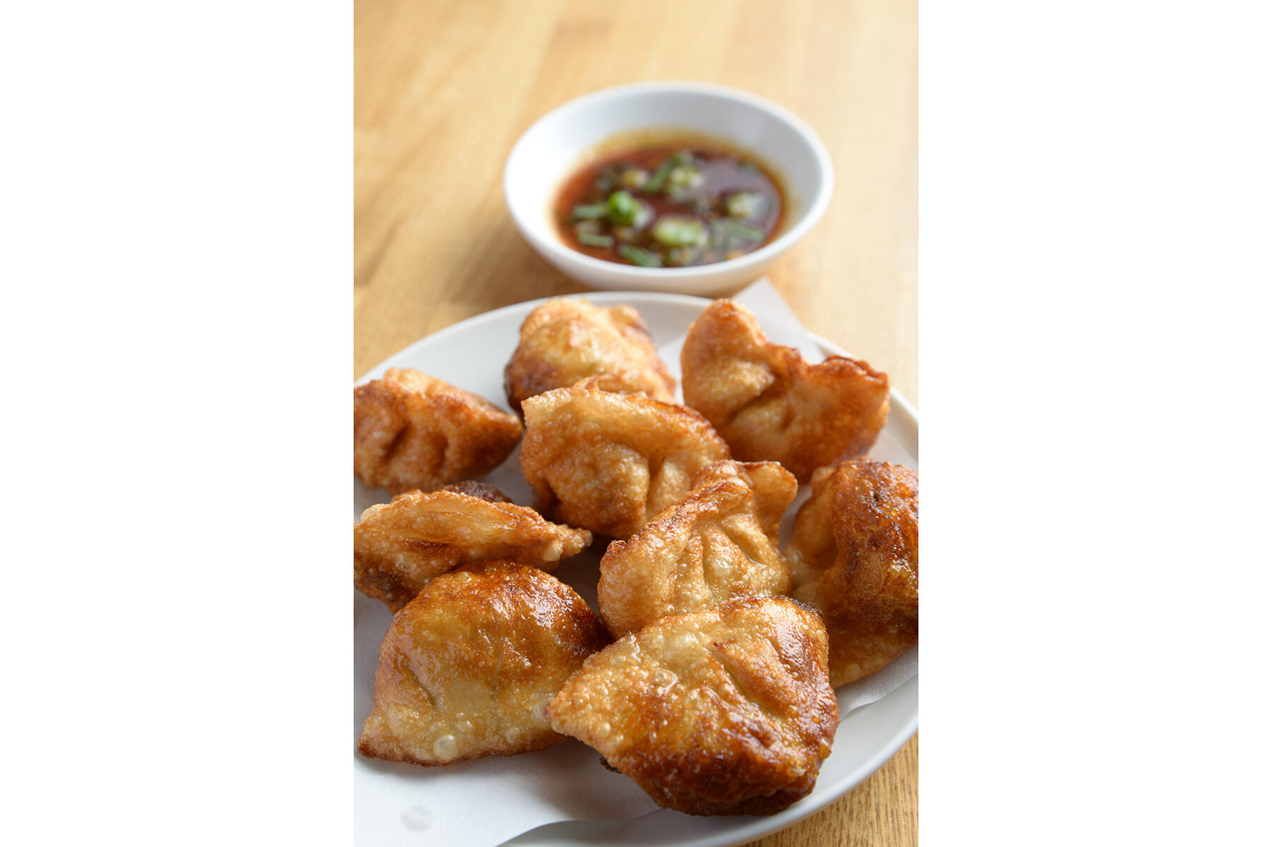 基本的なつくり方は水餃子と同じだが、店では包み方だけ変える。水餃子はひだの部分同士がくっつかないようにするのに対し、揚餃子、焼餃子は最後にぎゅっとひだをつぶしてくっつける。こうすることでひだ部分がカリッと焼けてより旨さが増すのだ。