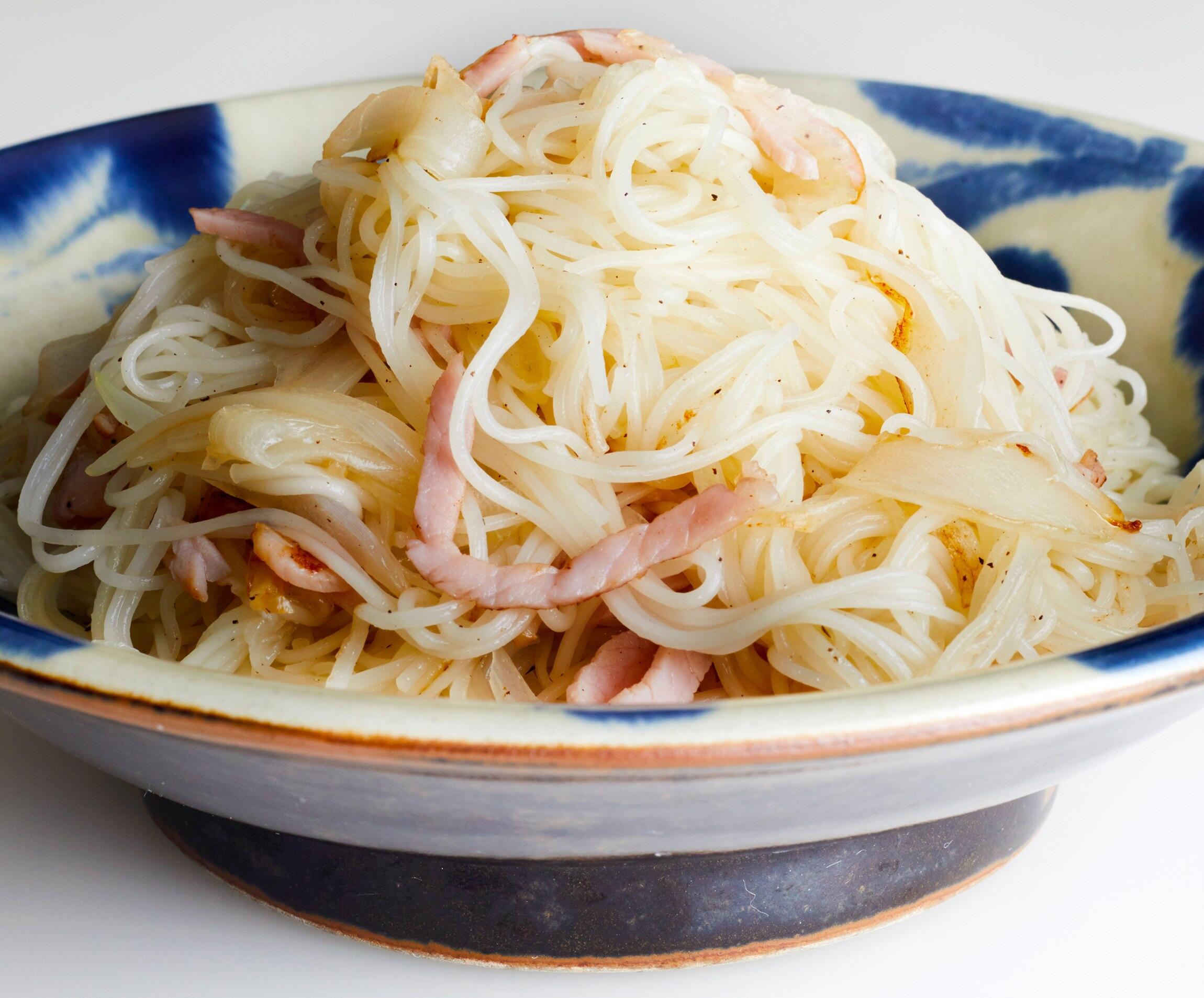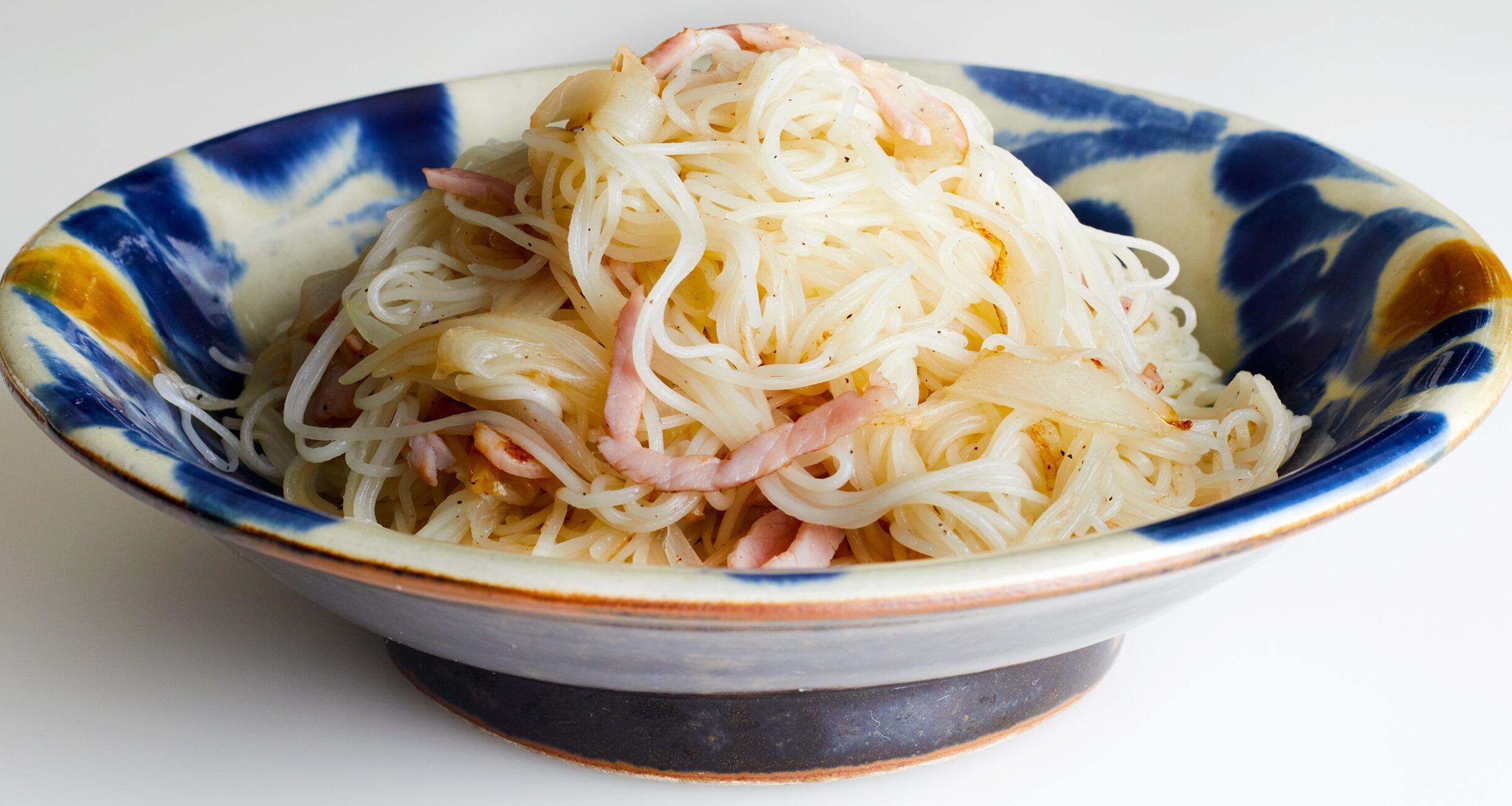 暑く、そして台風の多い沖縄では、保存しやすい乾物のそうめんを買い置きしておくのが常。同様に常備しているツナ缶や庭で育てている島ねぎなどを使ってつくるソーミンチャンプルーは家庭料理の筆頭に挙げられます。ここではハムと玉ねぎを加えたレシピをご紹介。そうめんはかためにゆでるのがポイントです。