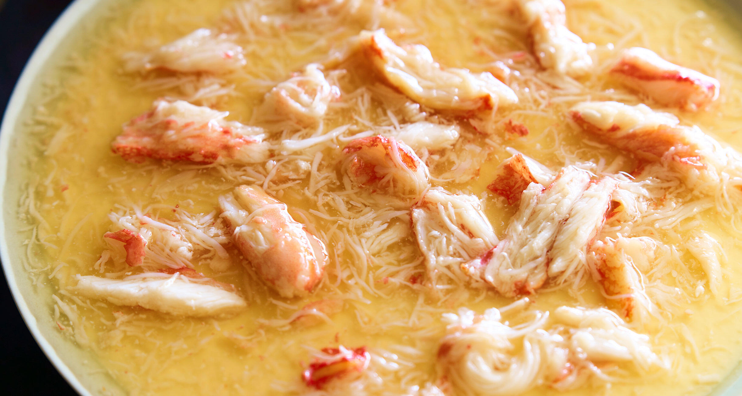 小鍋にAと残りの蟹を入れ、弱めの中火にかける。煮立たせながらとろみをつけ、蒸し上がった茶碗蒸しの上にかける。