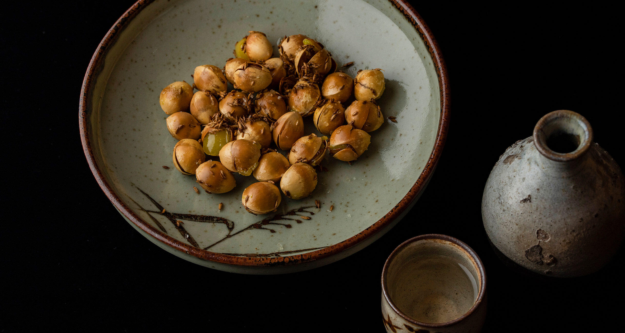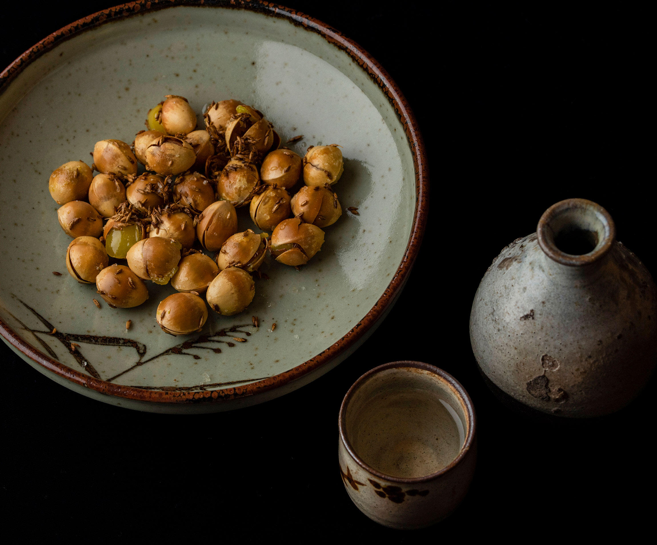 ドライな口あたりでやわらかい旨味、酸味のある酒に合わせると、銀杏とクミンの複雑な風味が良いアクセントになる。米の優しい風味が際立ち、次から次へと酒を呼ぶペアリングだ。