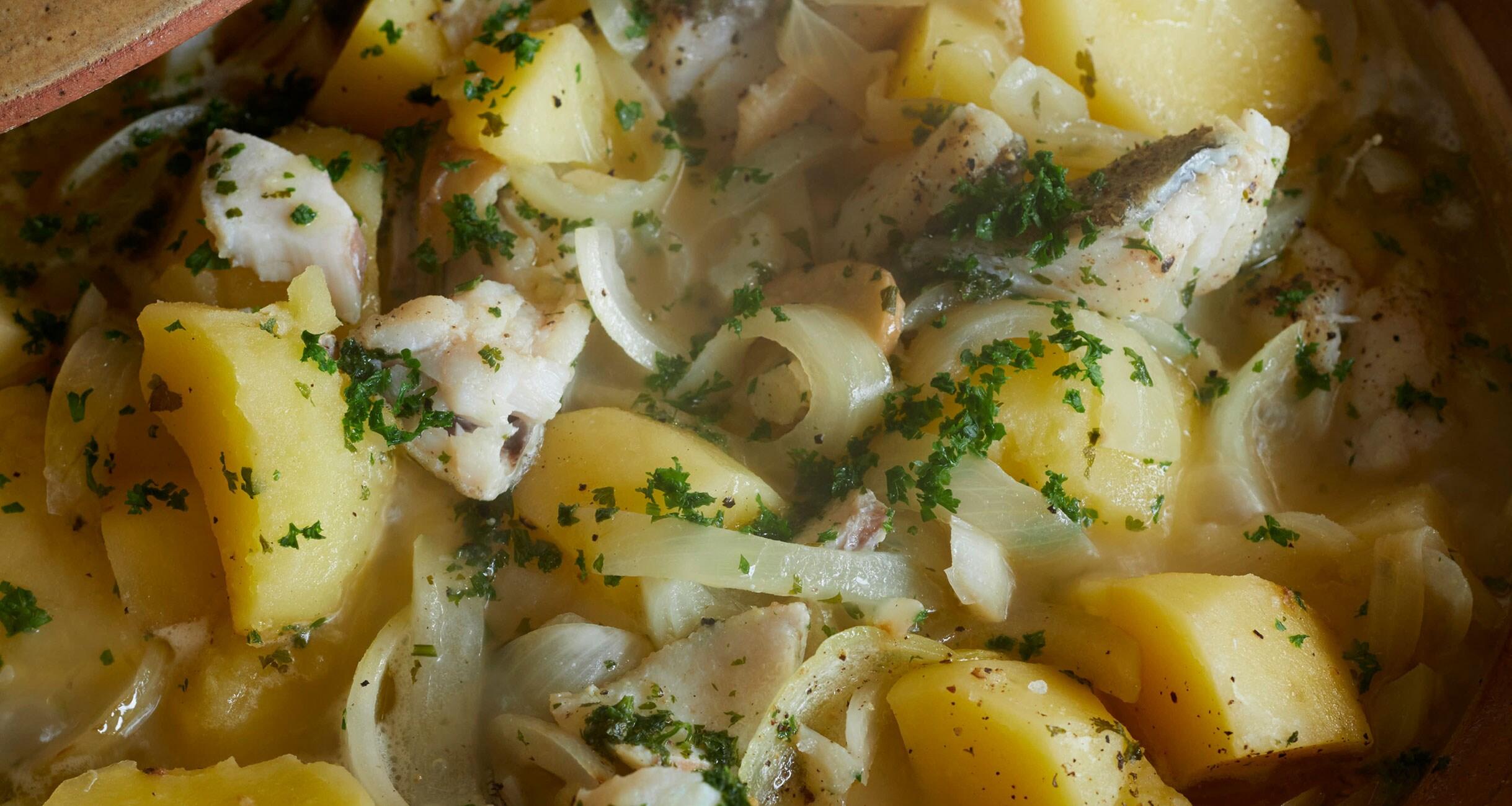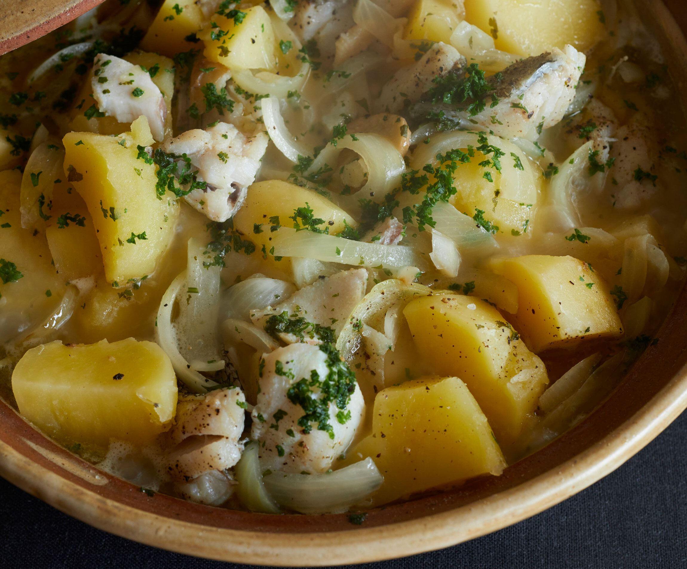 ポルトガルの家庭料理を土鍋で再現。にんにくとオリーブオイルのコンビがいい味をつくリます。白ワインがすすみます。