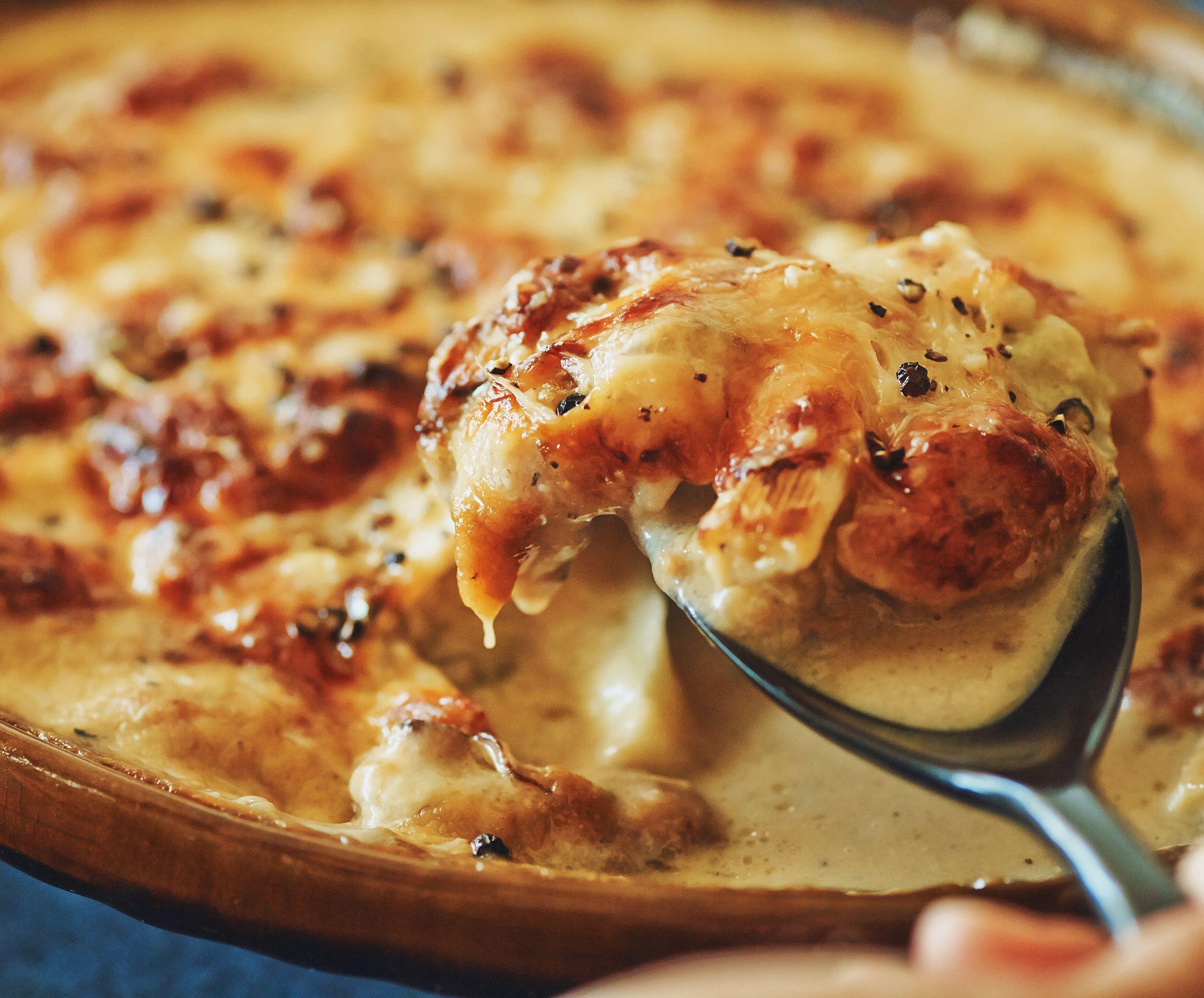 人気料理研究家・ワタナベマキさんに冬につくりたいグラタンを習いました。長ねぎと牡蠣がメインのグラタンに白味噌を加え、こっくりとボリューミーな味わいに。白ワインや、熟成酒のお燗に合いますよ。