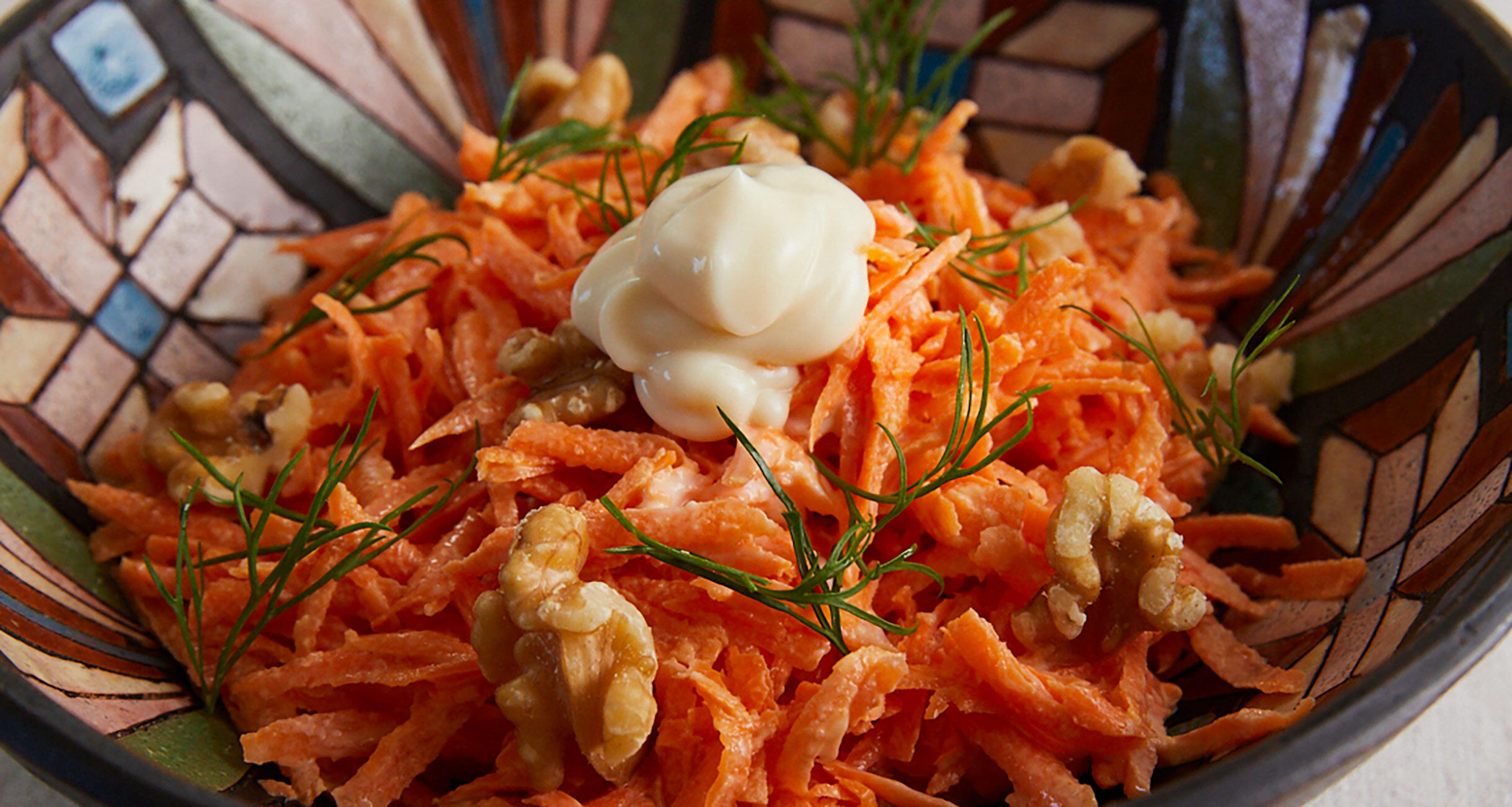 1を器に盛り、マヨネーズ(分量外)をのせ、クルミとディルを散らす。