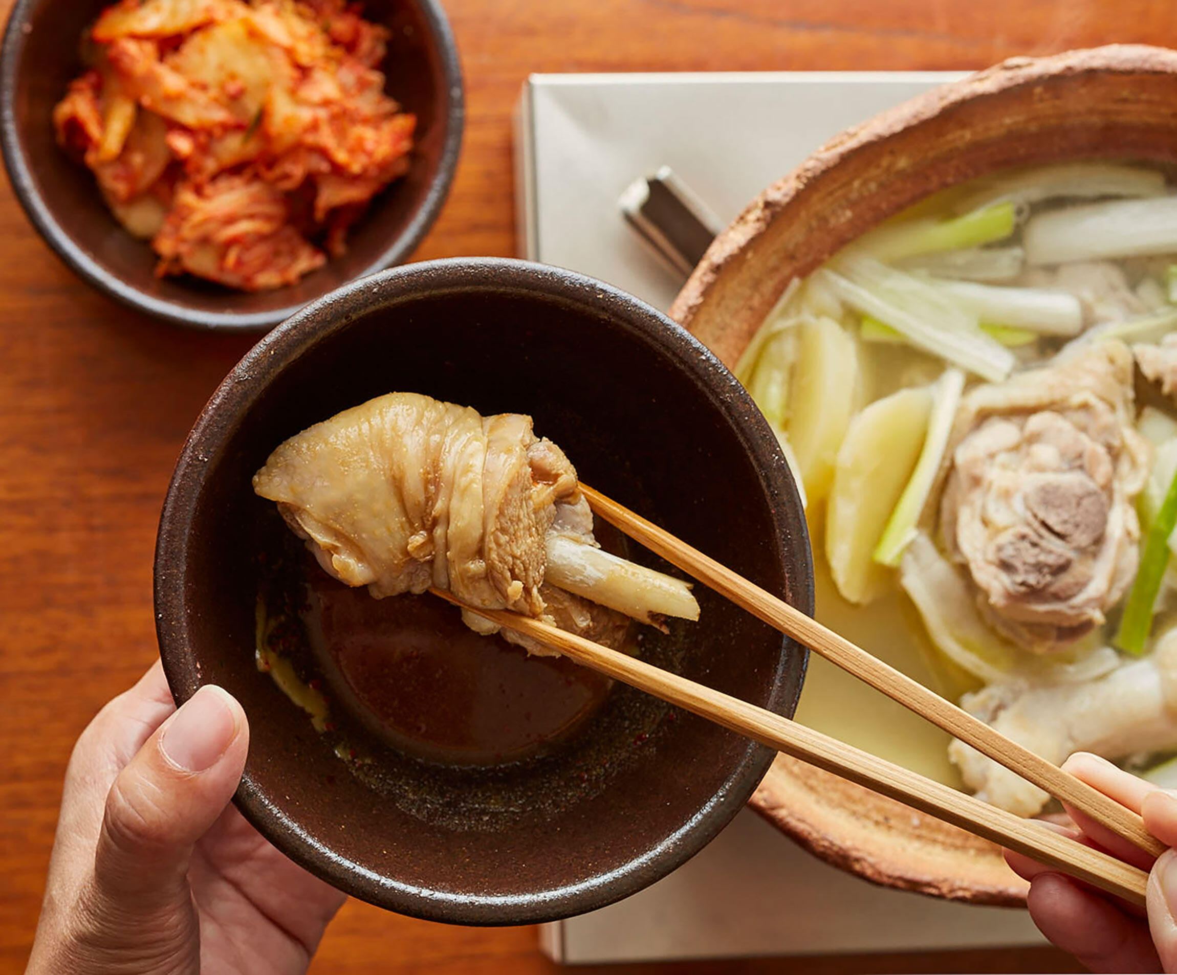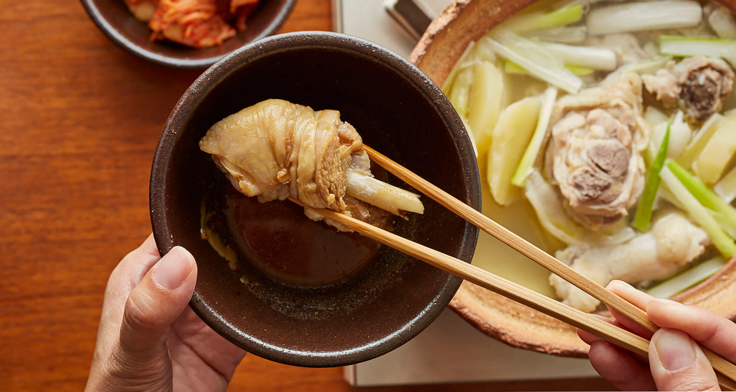 途中でキムチを鍋に入れると、鶏のだしに旨味が加わり食欲が復活。少し煮てキムチ自体も具材として楽しめます。