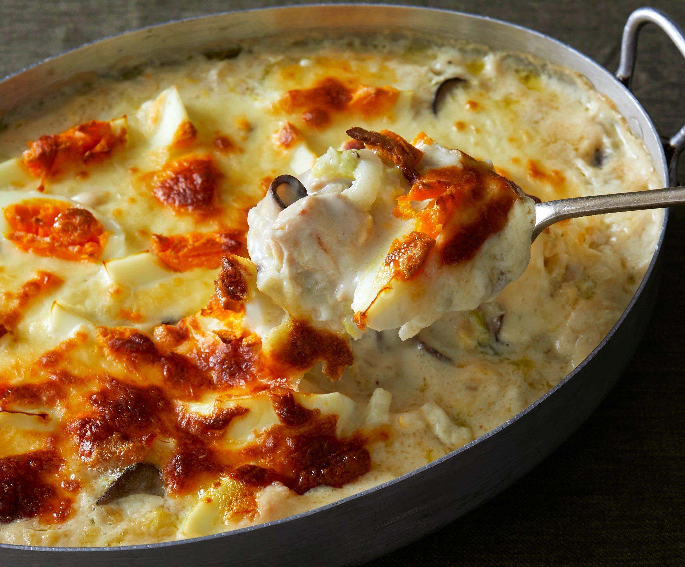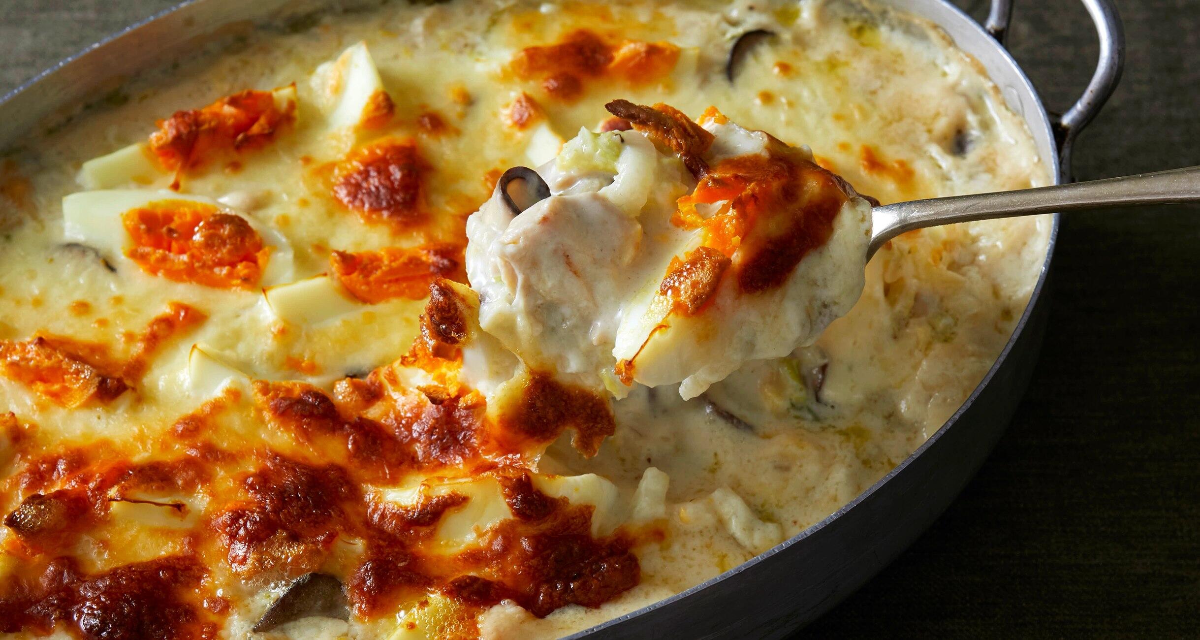 濃厚なグラタンも、白菜をメインにすると軽い仕上がりになります。一度加熱して水分を搾った白菜は、旨味が凝縮!一冬に1度はつくりたいグラタン料理、今回は白菜で試してみては?