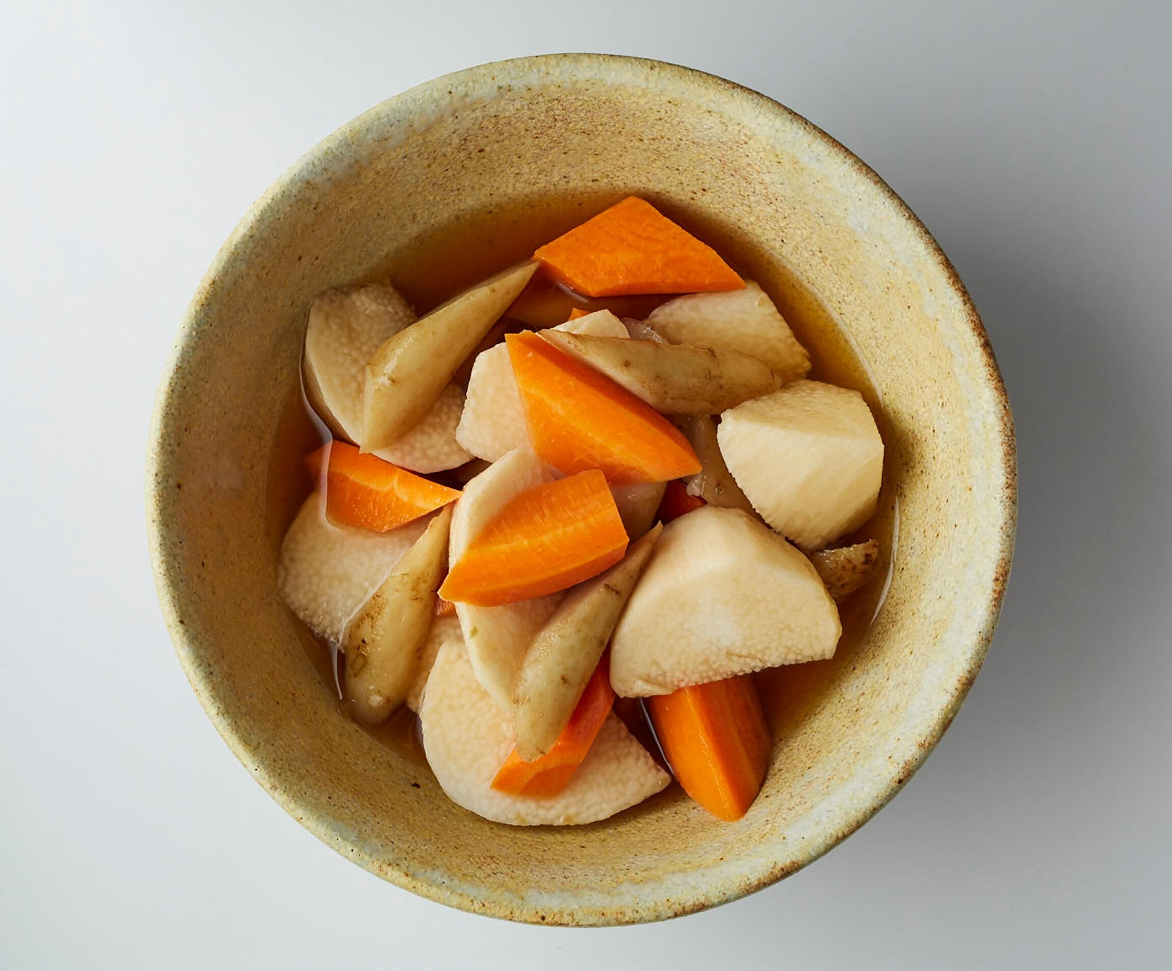 柚子胡椒の風味が効いた"根菜の醤油ピクルス"