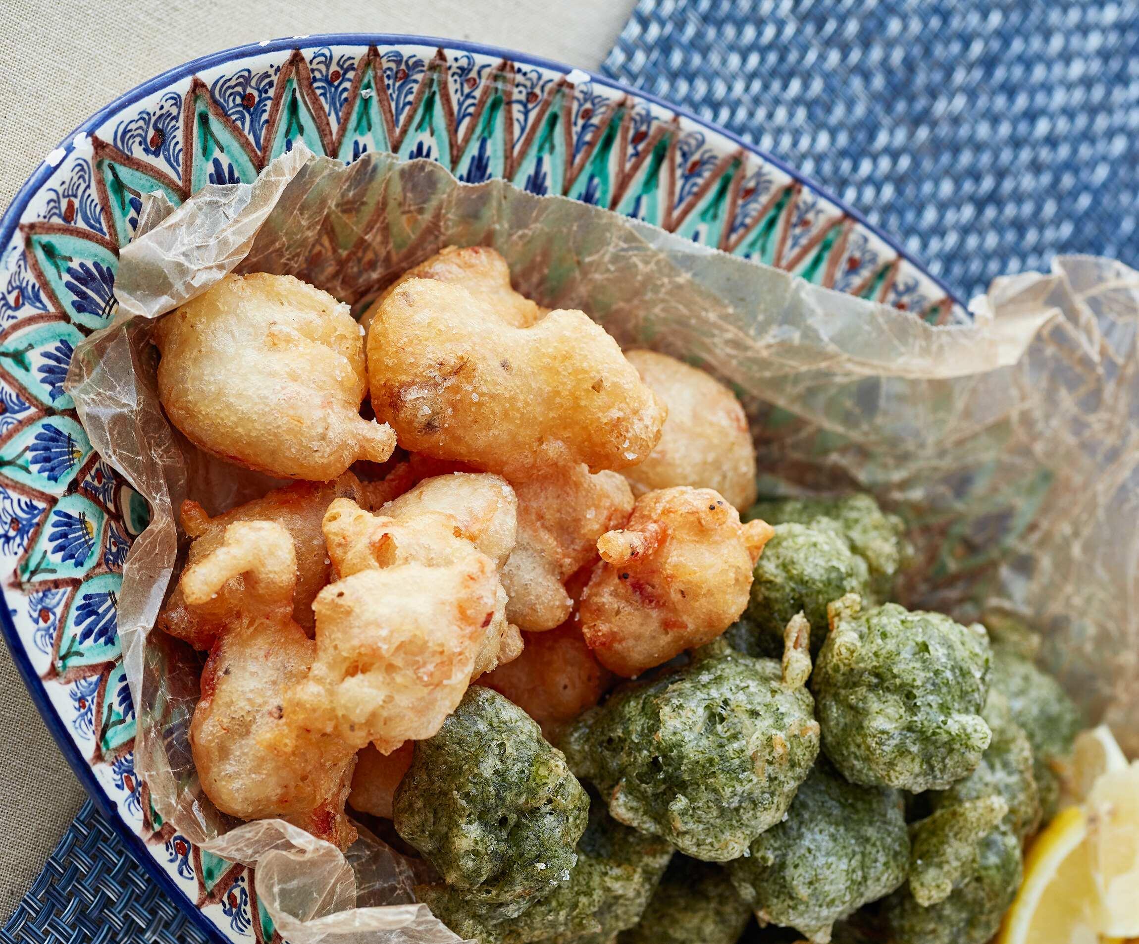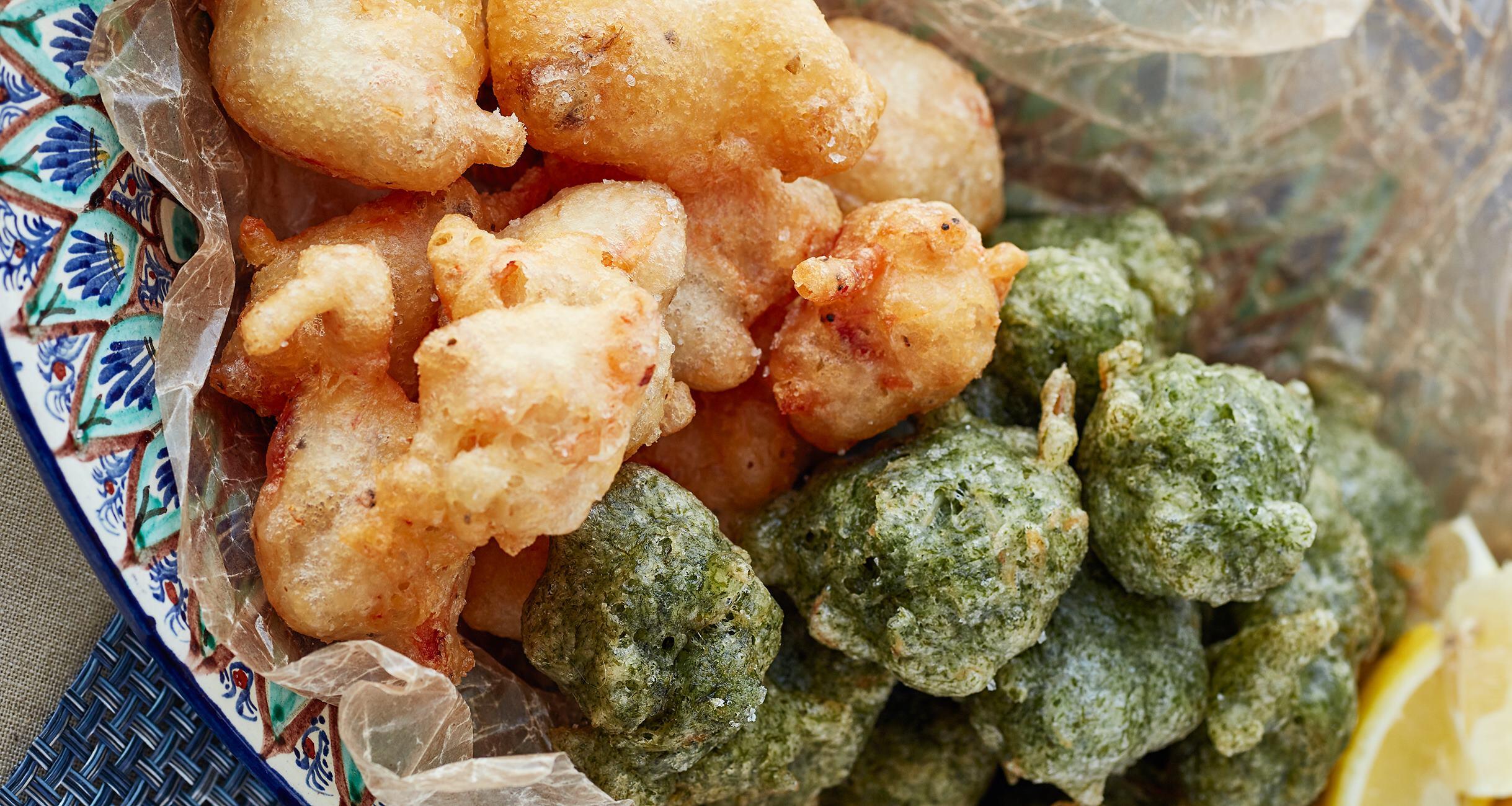 生地に桜海老&桜の塩漬けと、ちりめんじゃこ&青海苔をそれぞれ混ぜて揚げる2色のゼッポリーネ。外はカリッと中はふわっ。揚げたての香りが食欲をそそる。生地だけ仕込んでおいて、食べる直前に揚げるのが最高!ドライイーストは、生地に混ぜるだけなので超簡単です。