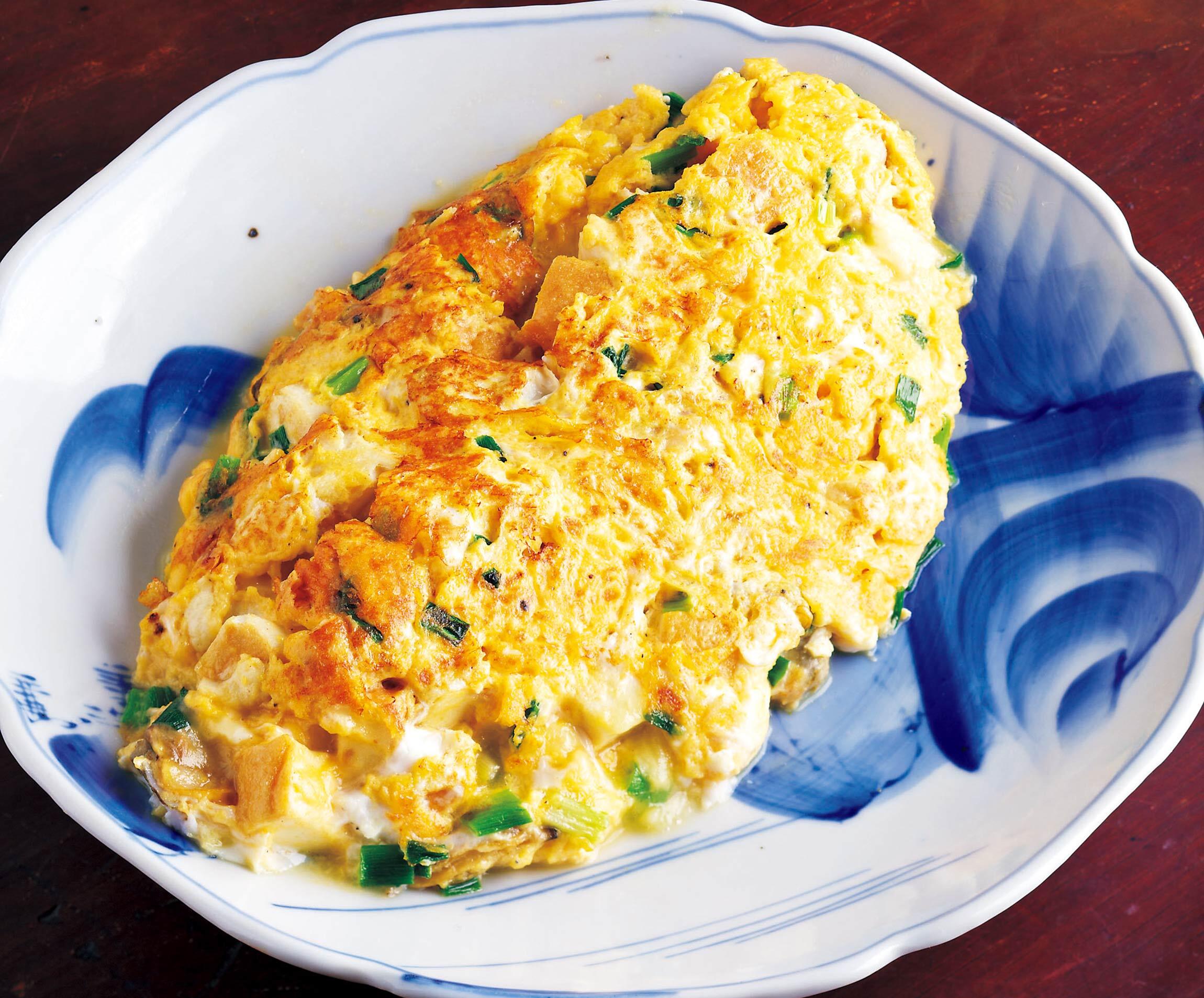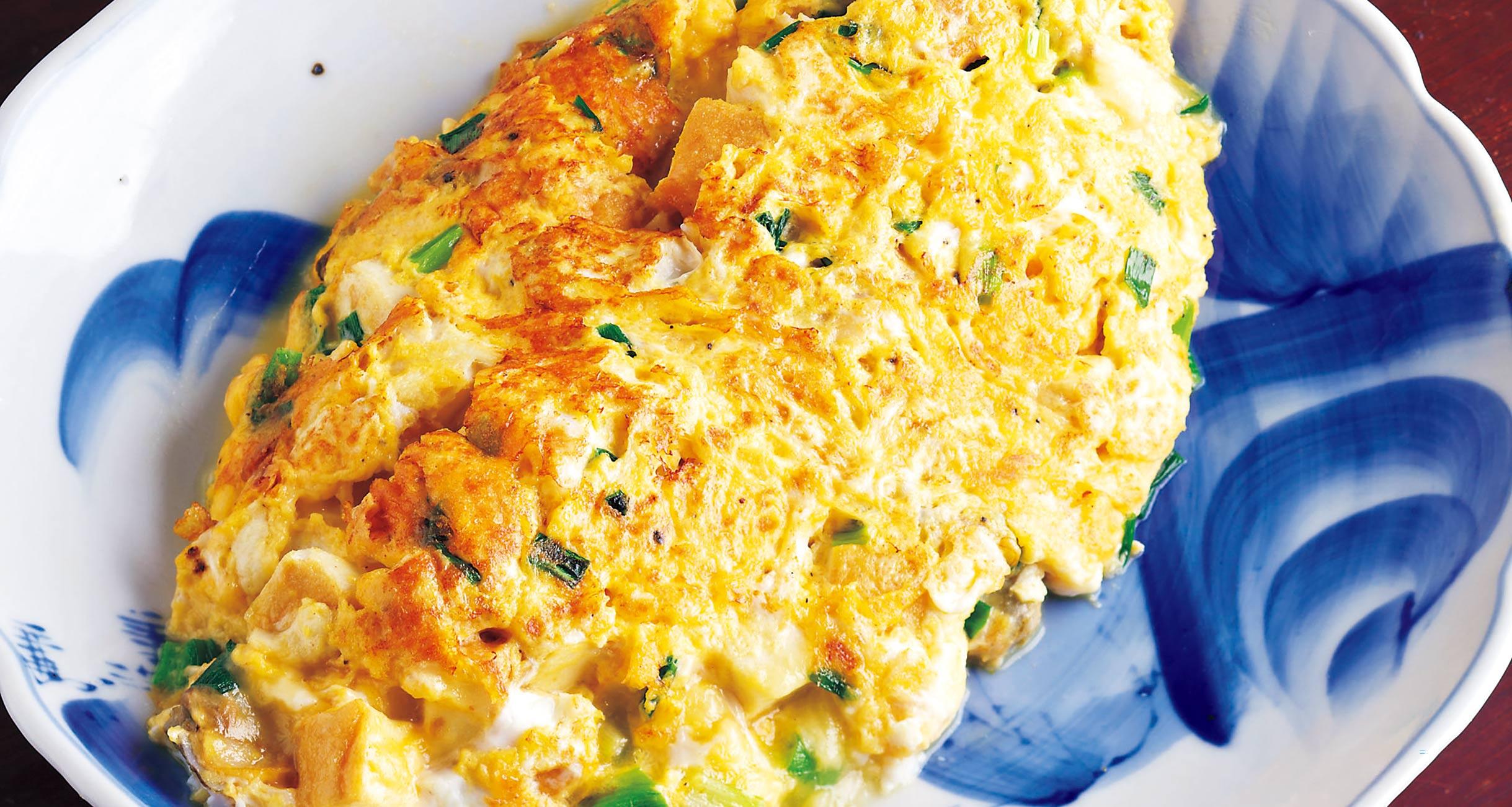 通常より牛乳を減らし、あさりの汁で旨味をプラス。絹厚揚げと卵のゆるふわな食感を生かすには、焼き色がついたらすぐに火を止めること。